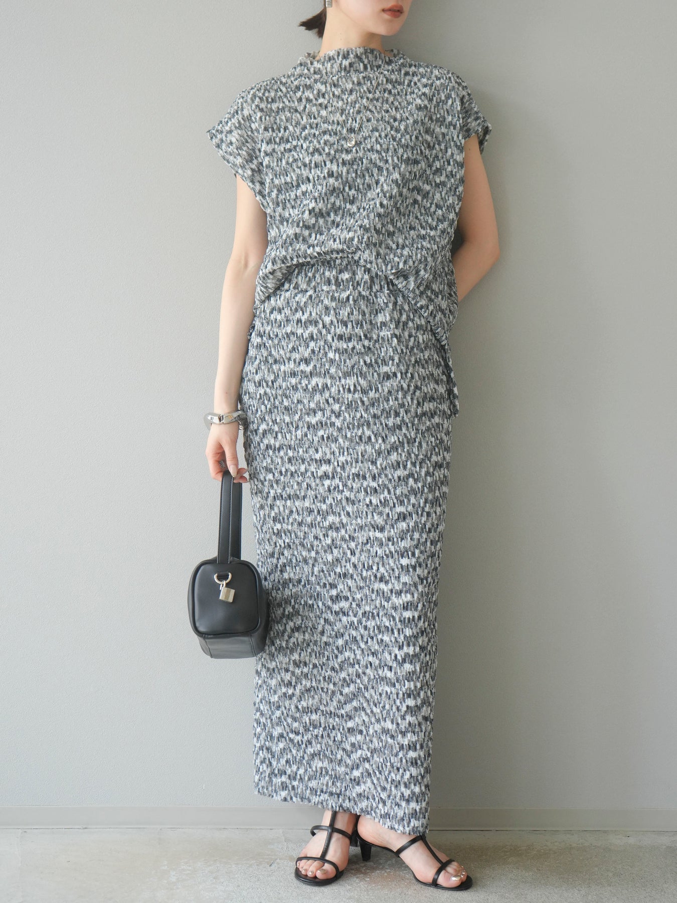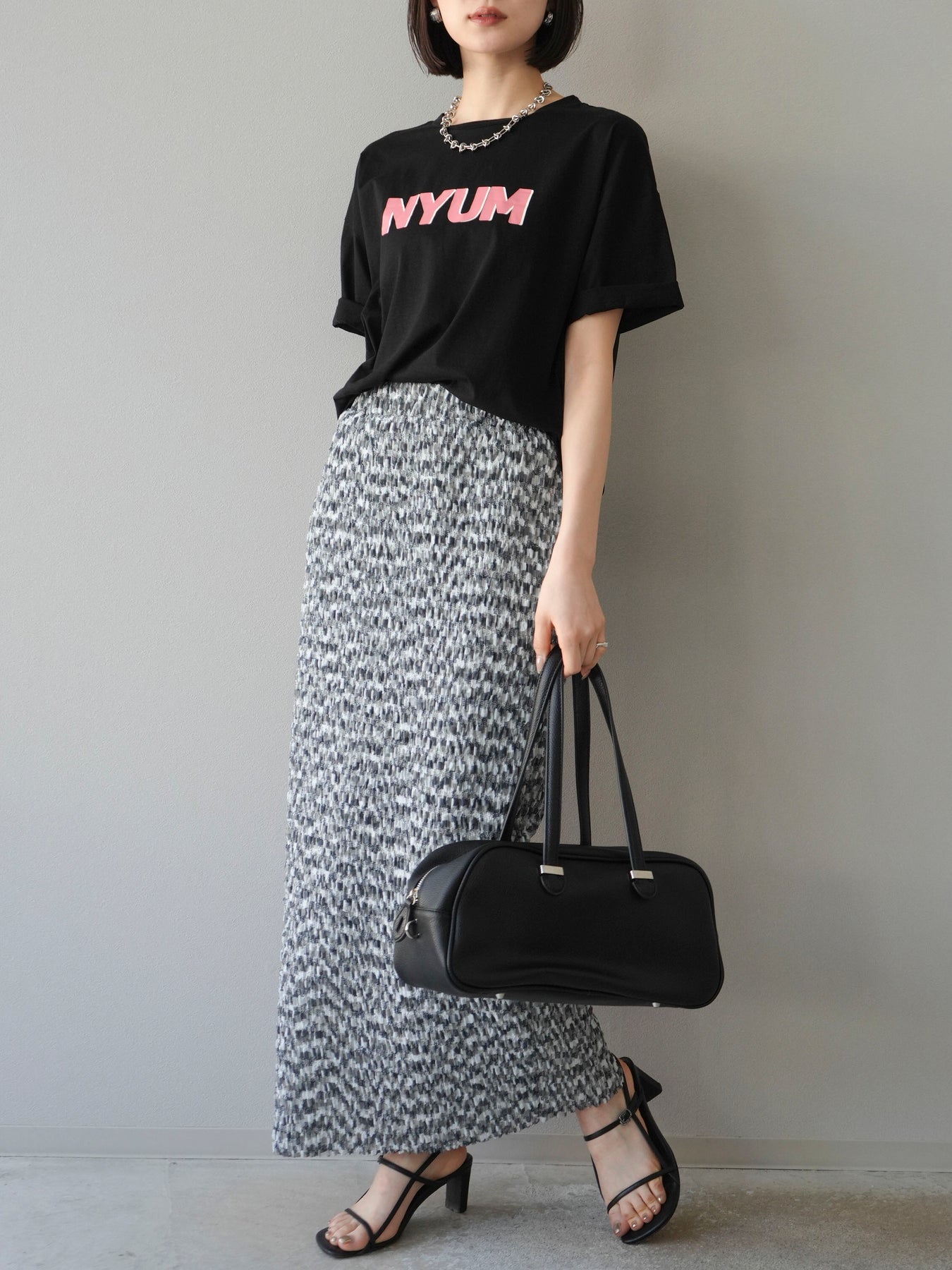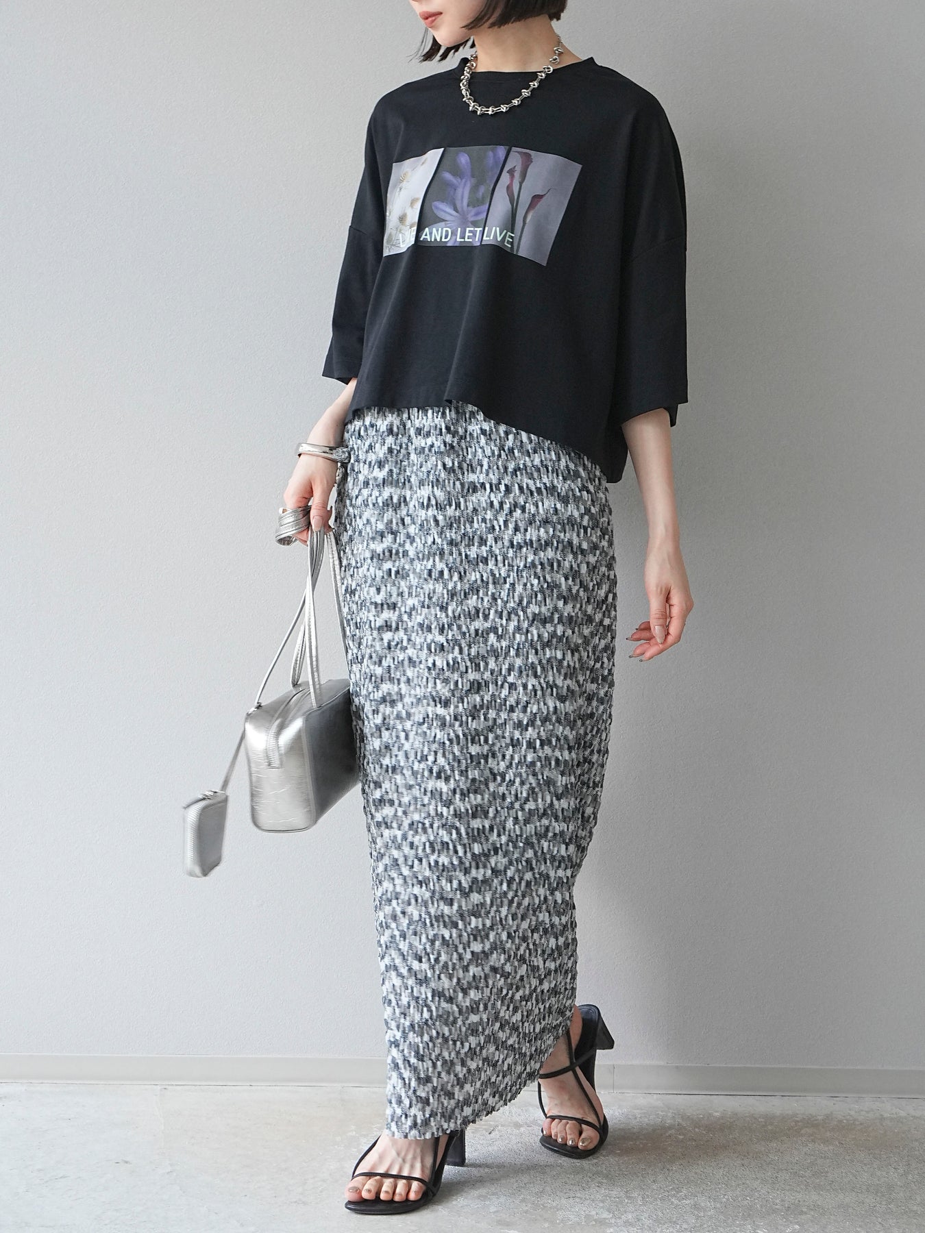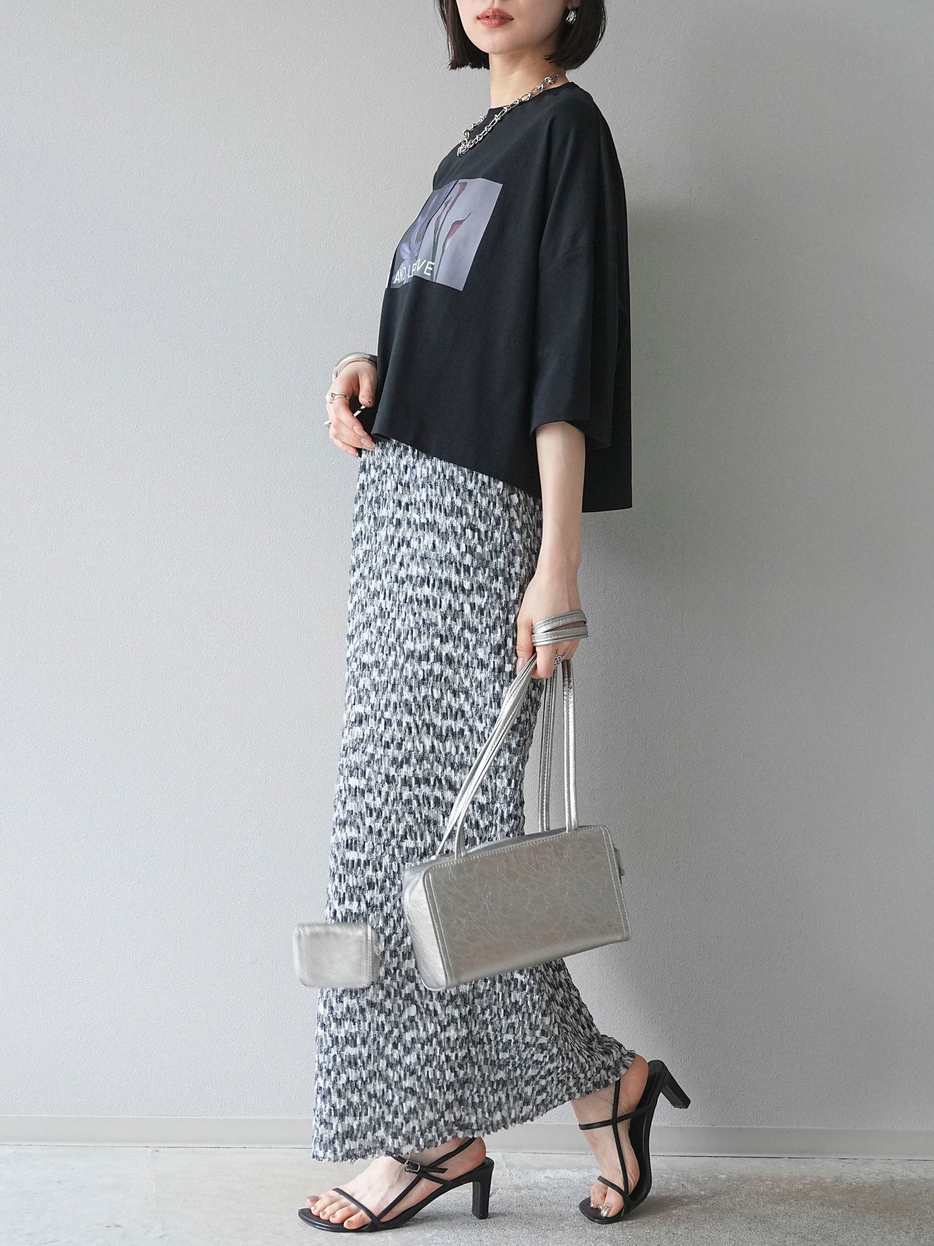 [予約]マルチカラーランダムプリーツタイトスカート/ブラック