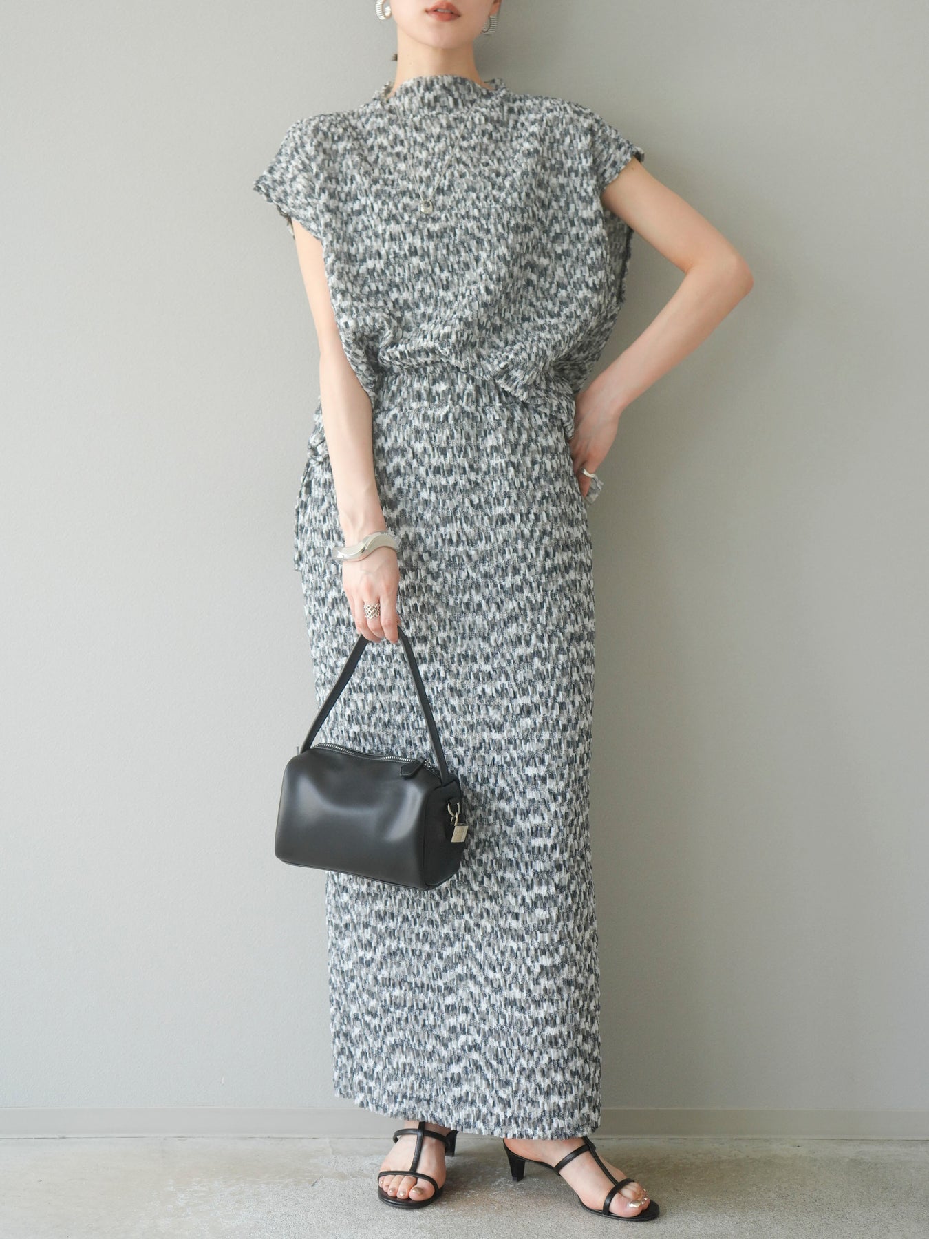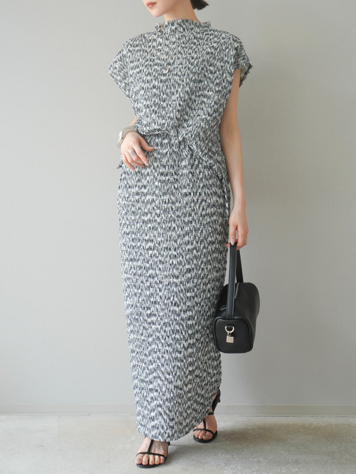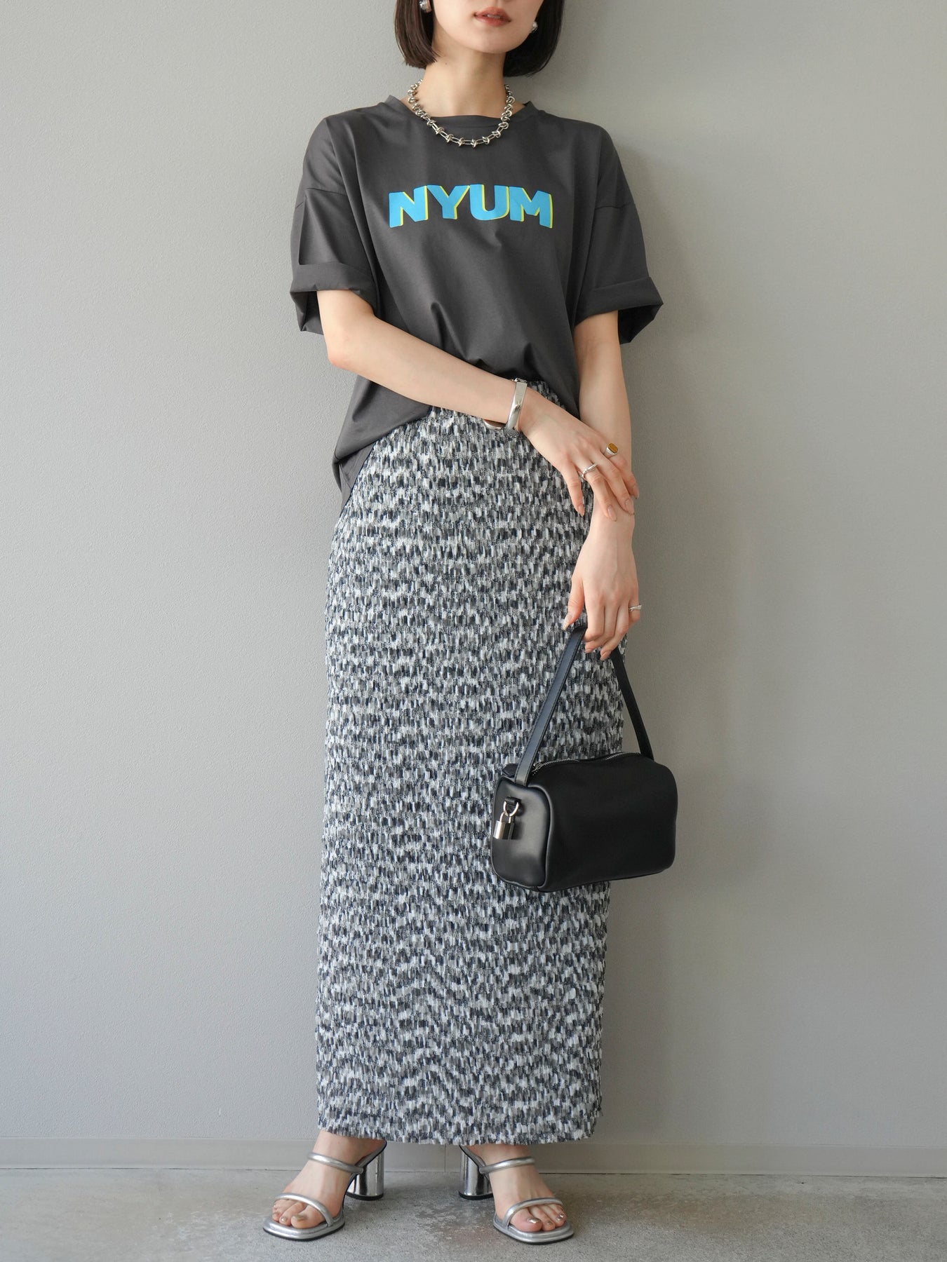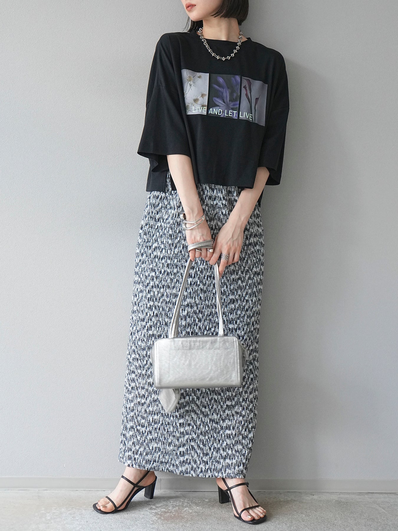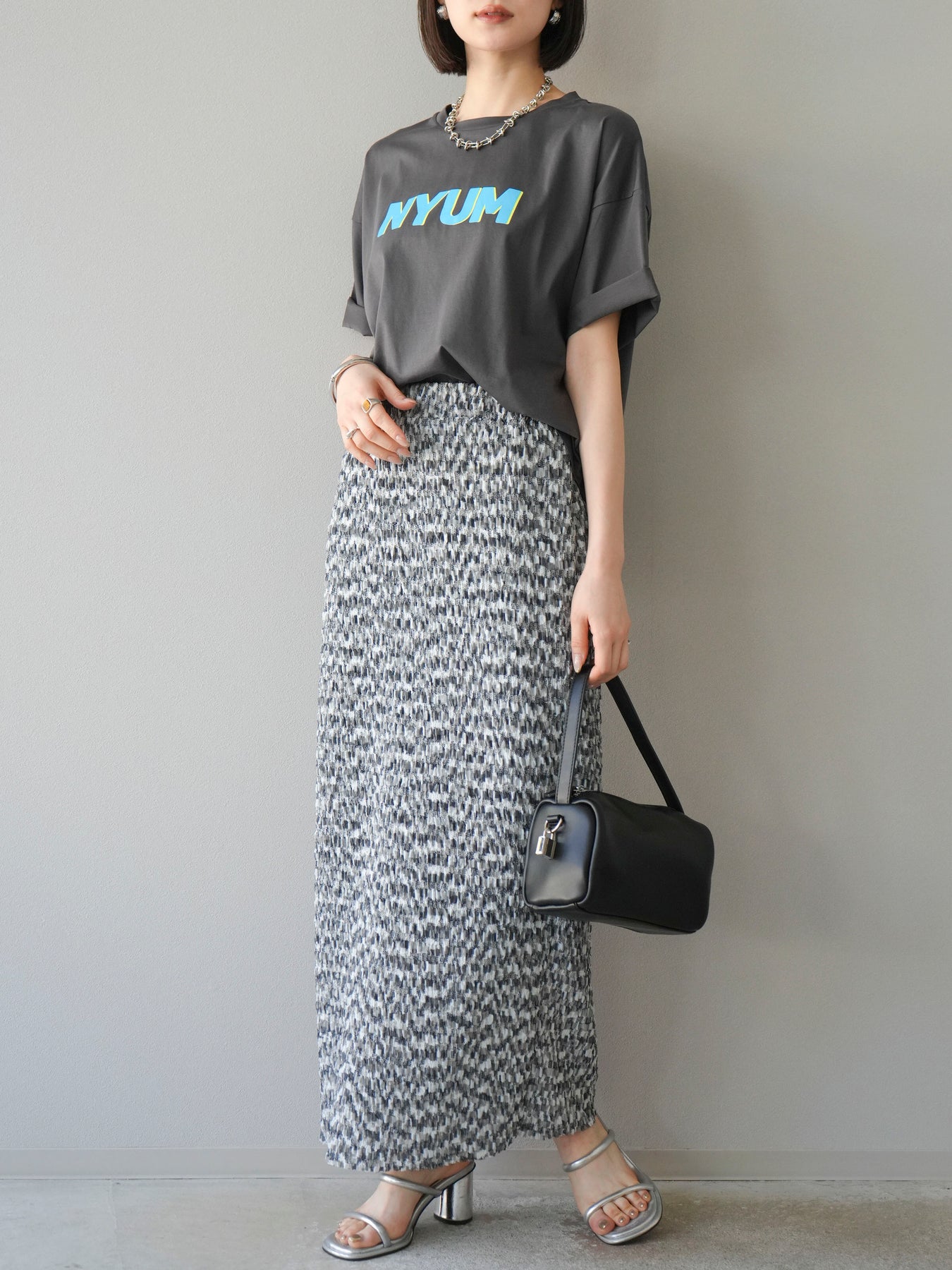 [予約]マルチカラーランダムプリーツタイトスカート/ブラック