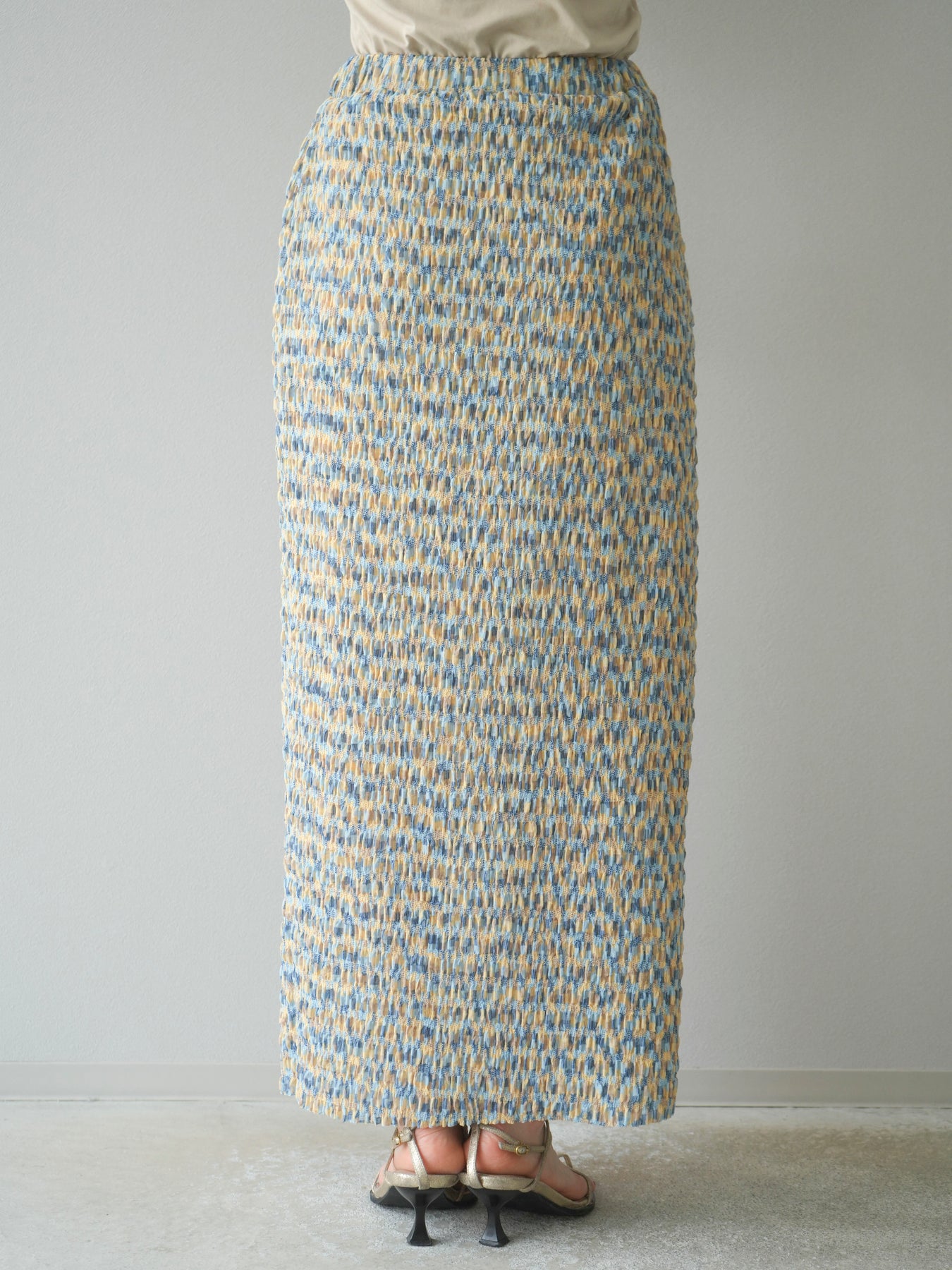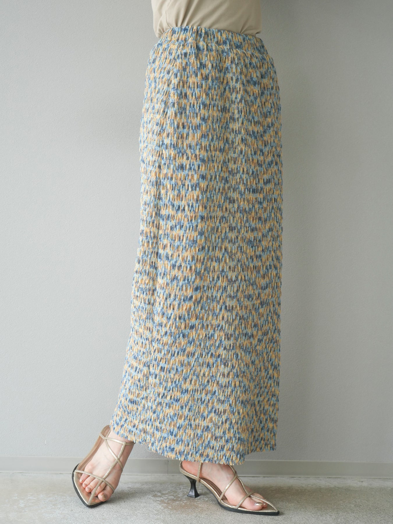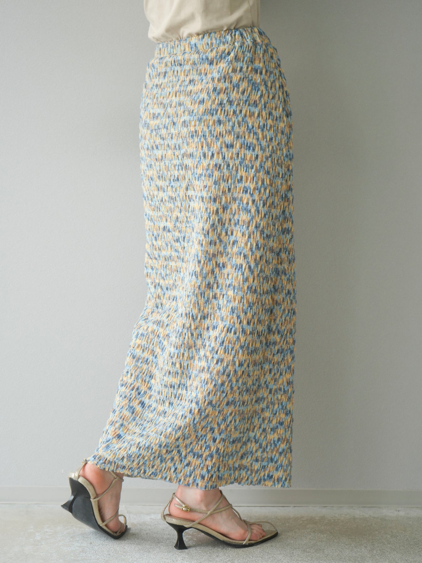 [予約]マルチカラーランダムプリーツタイトスカート/イエロー