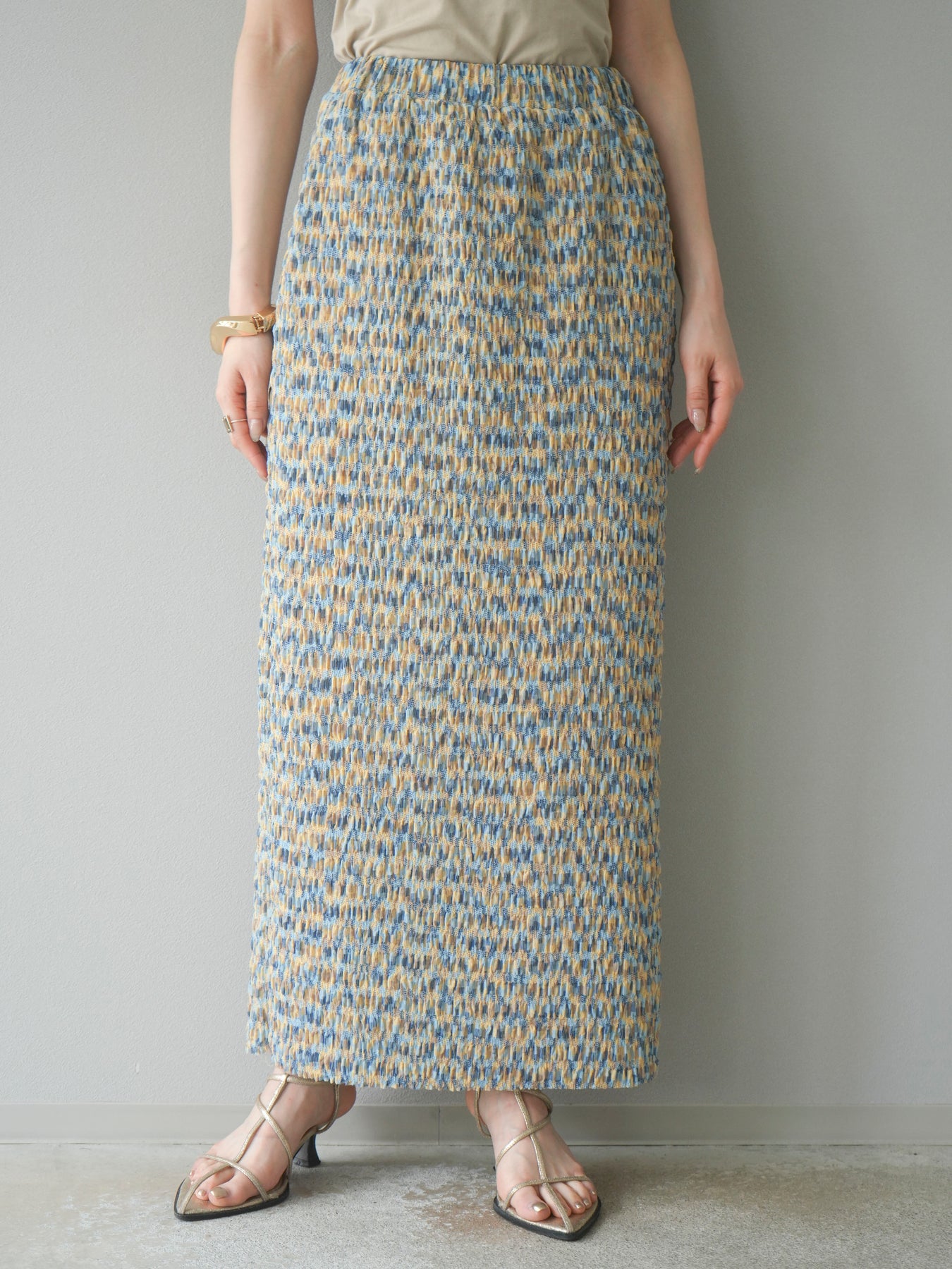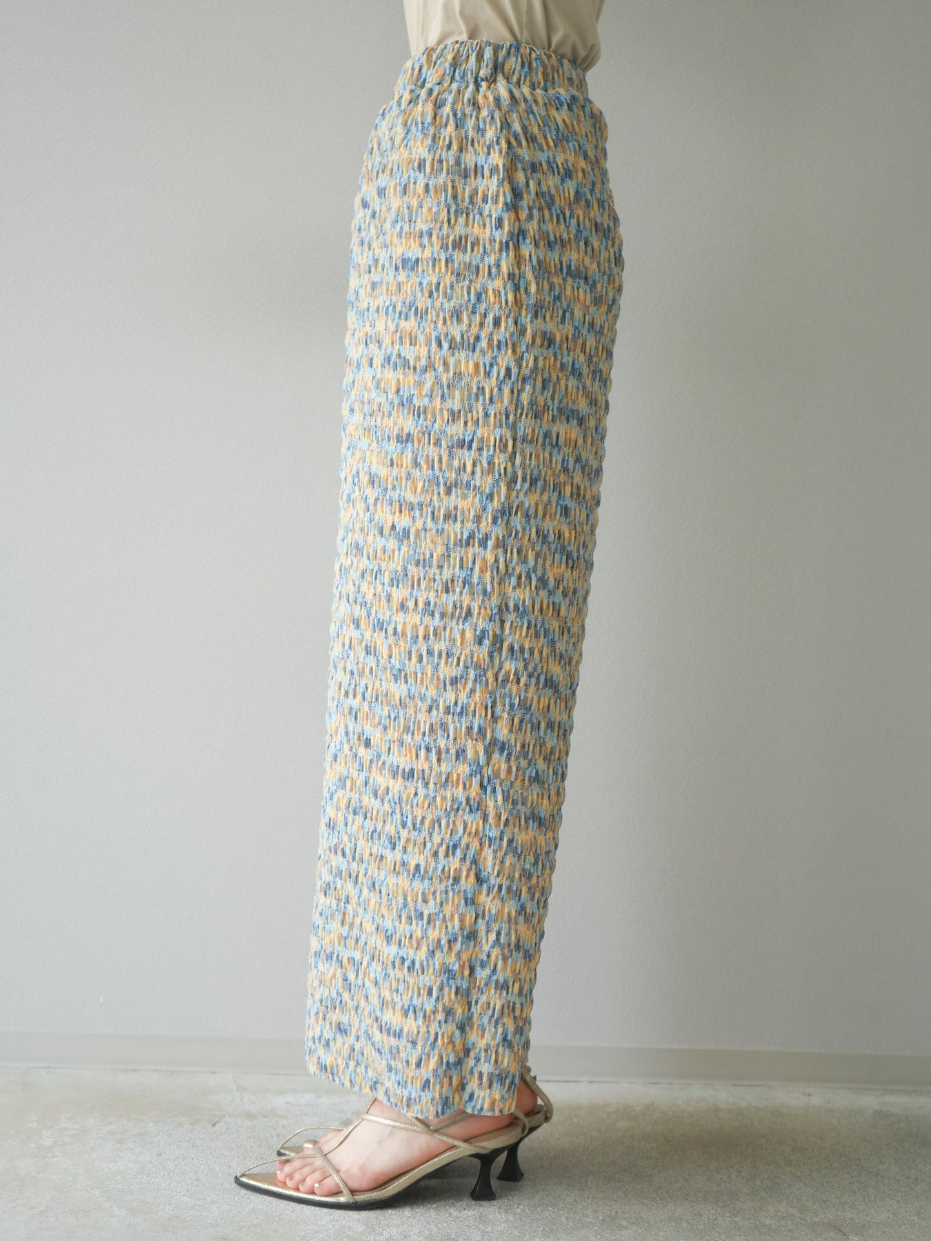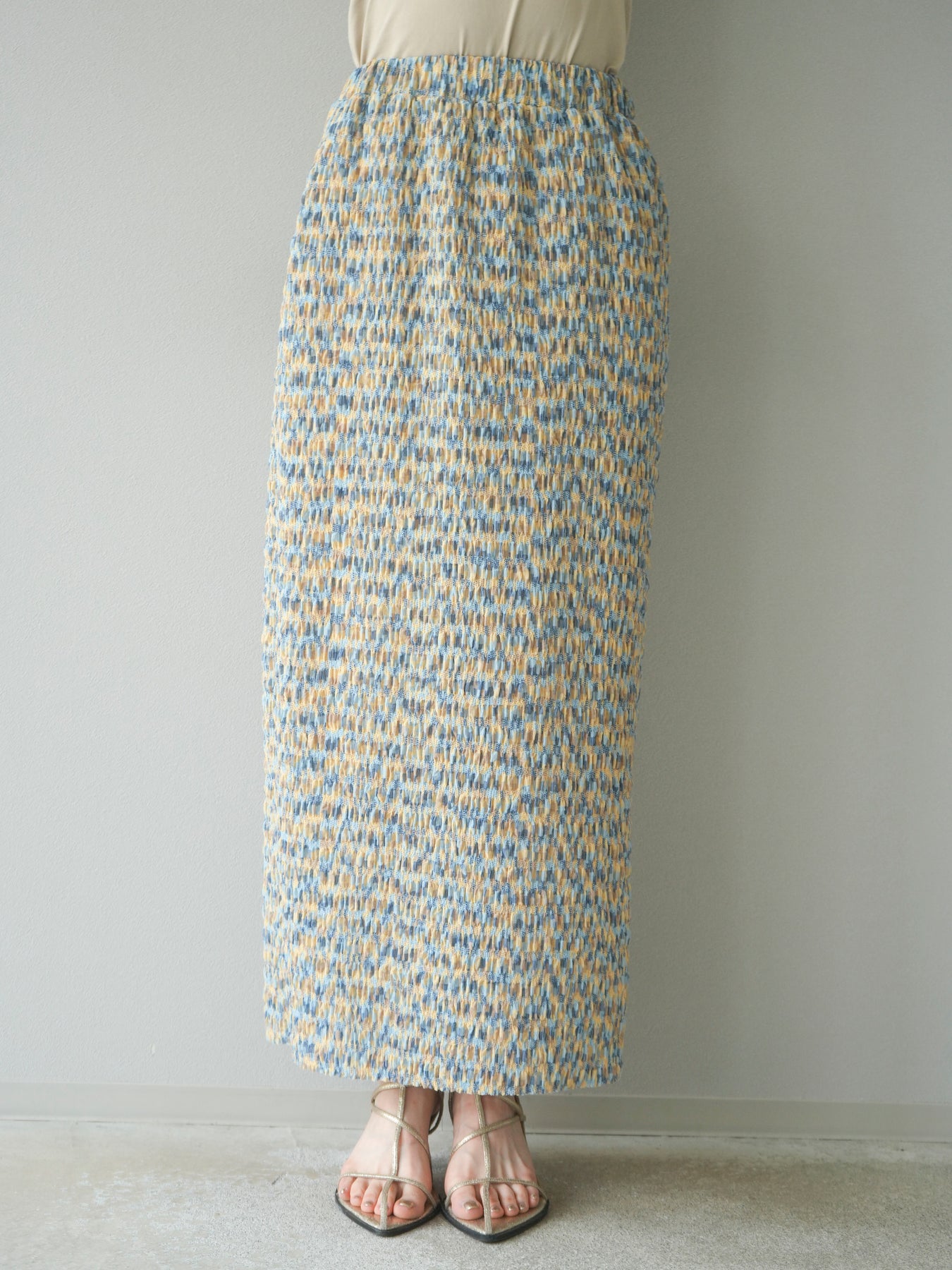 [予約]マルチカラーランダムプリーツタイトスカート/イエロー