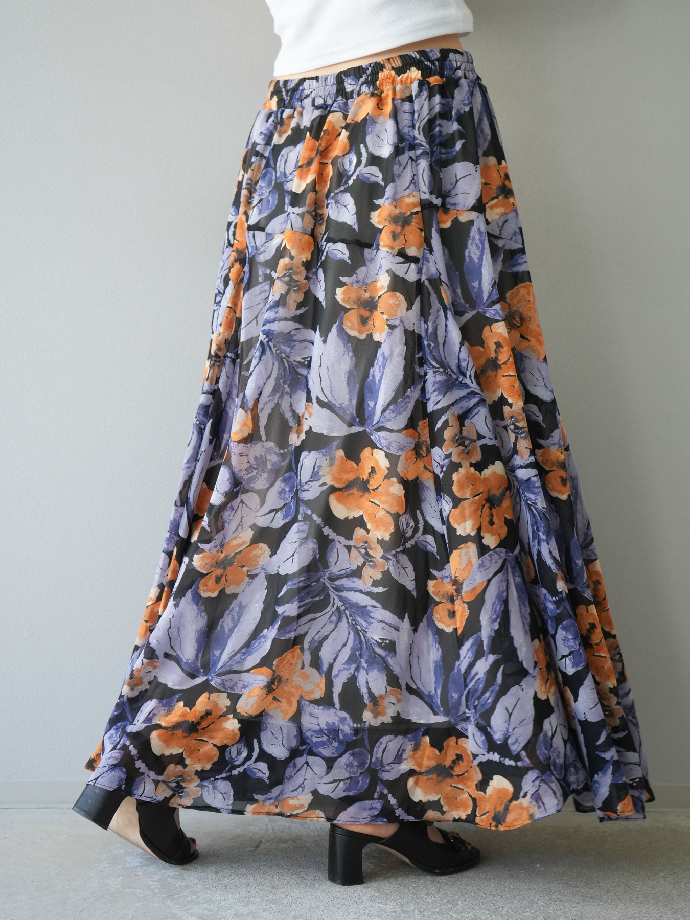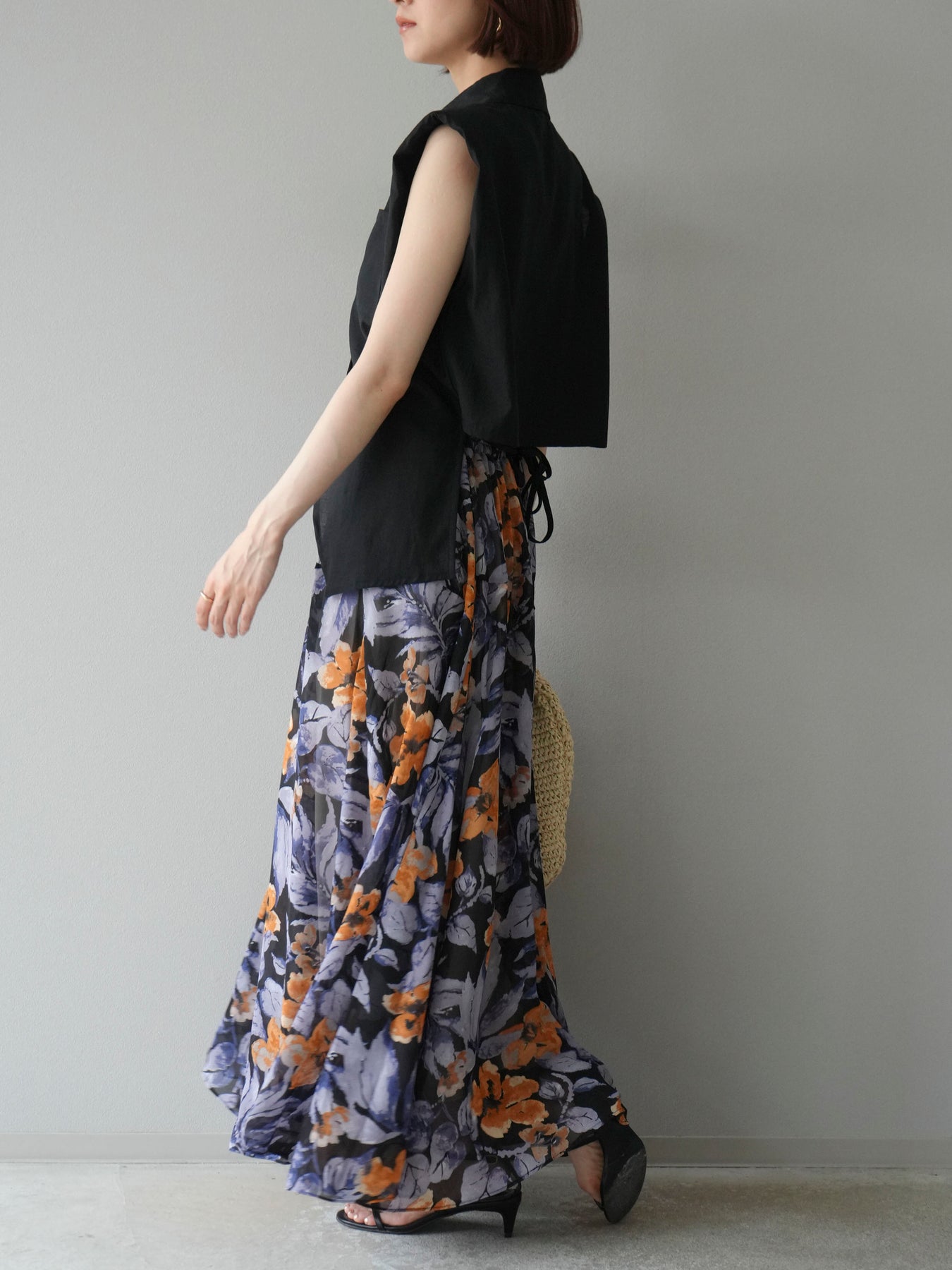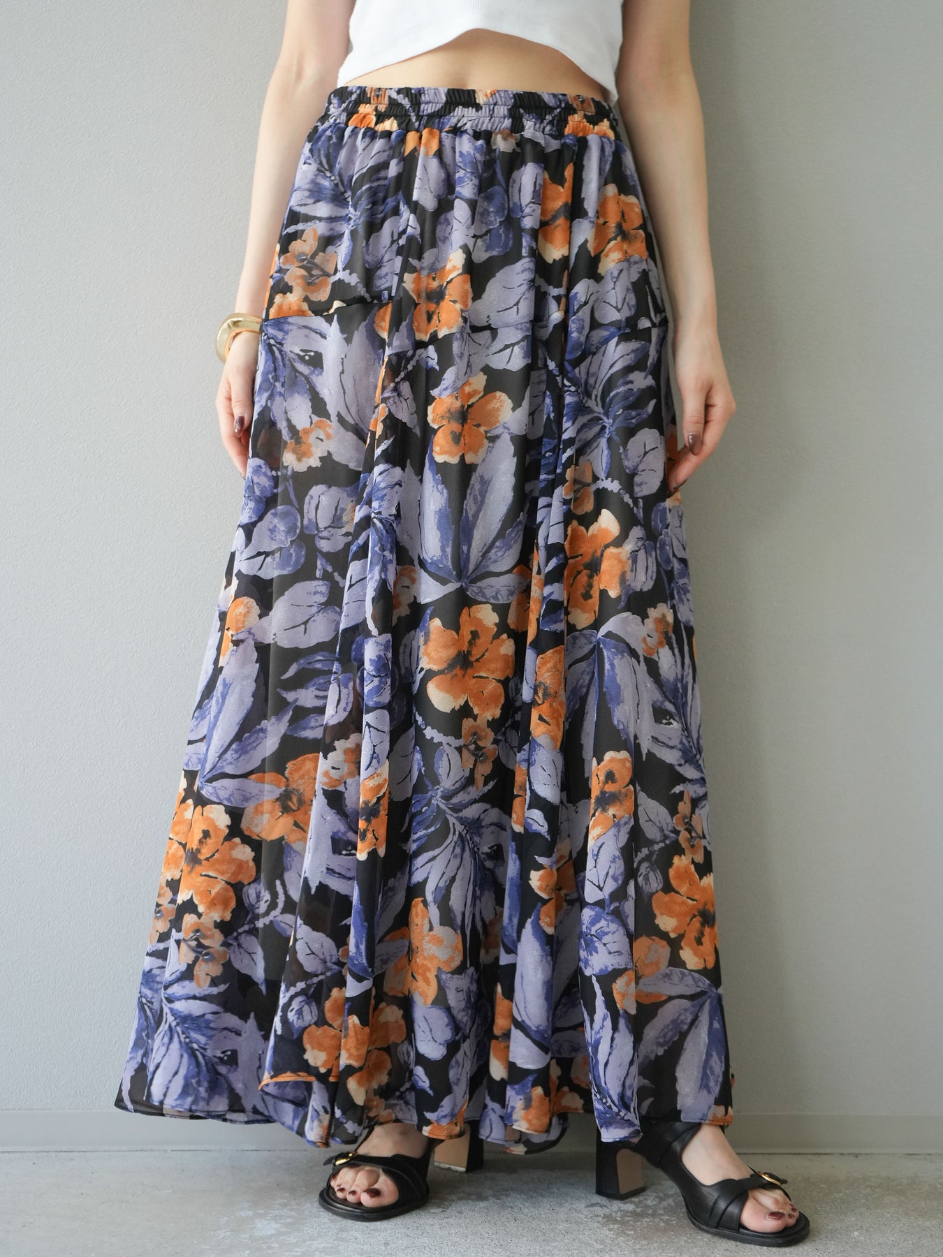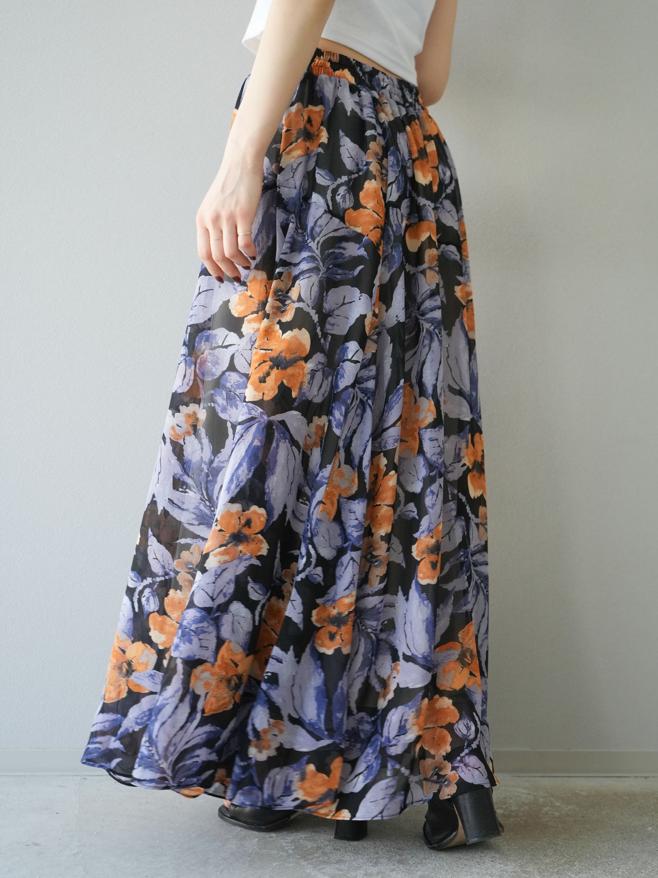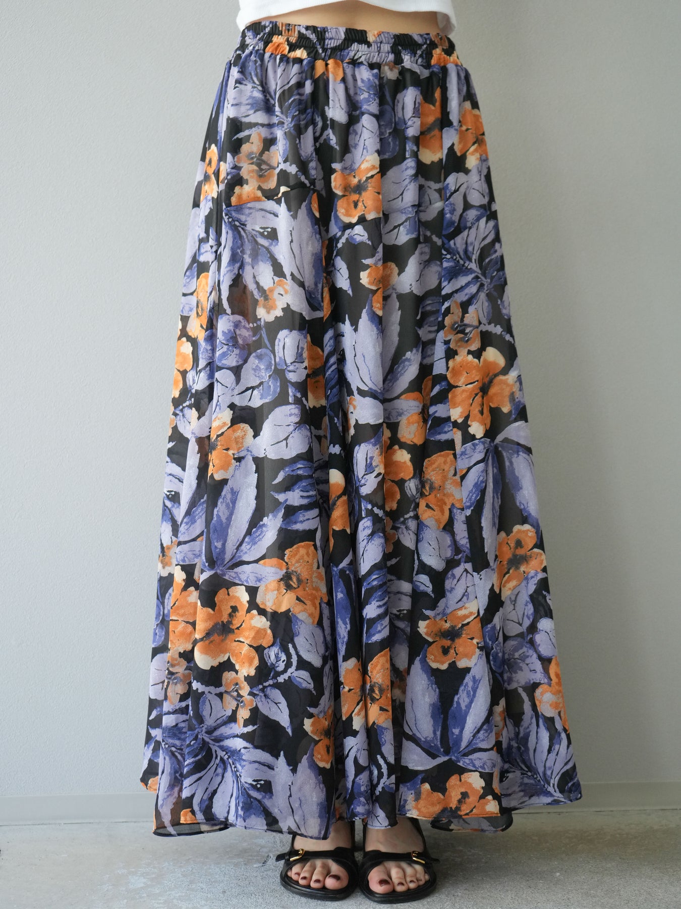 [予約]フラワープリントボリュームフレアスカート/ブラック