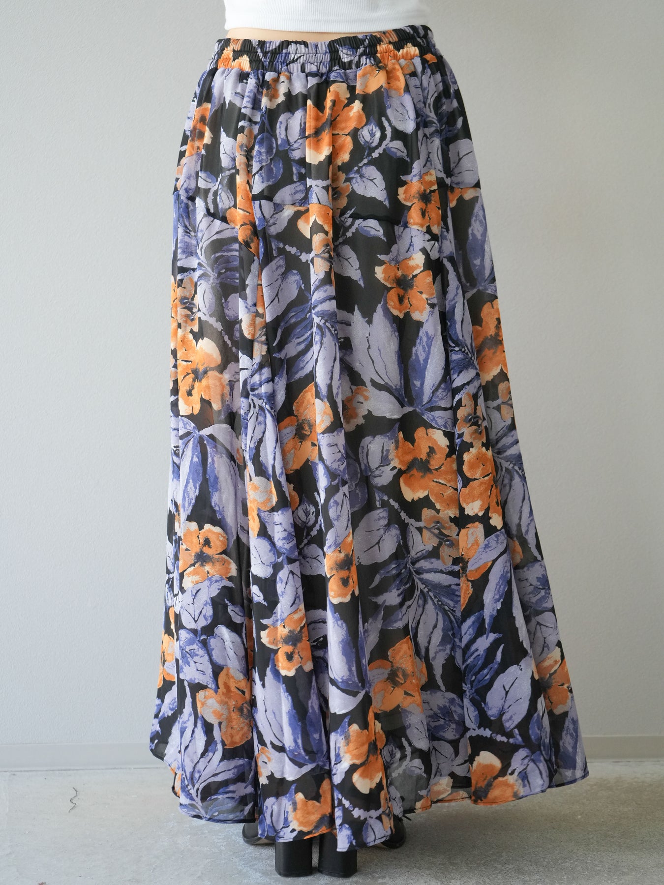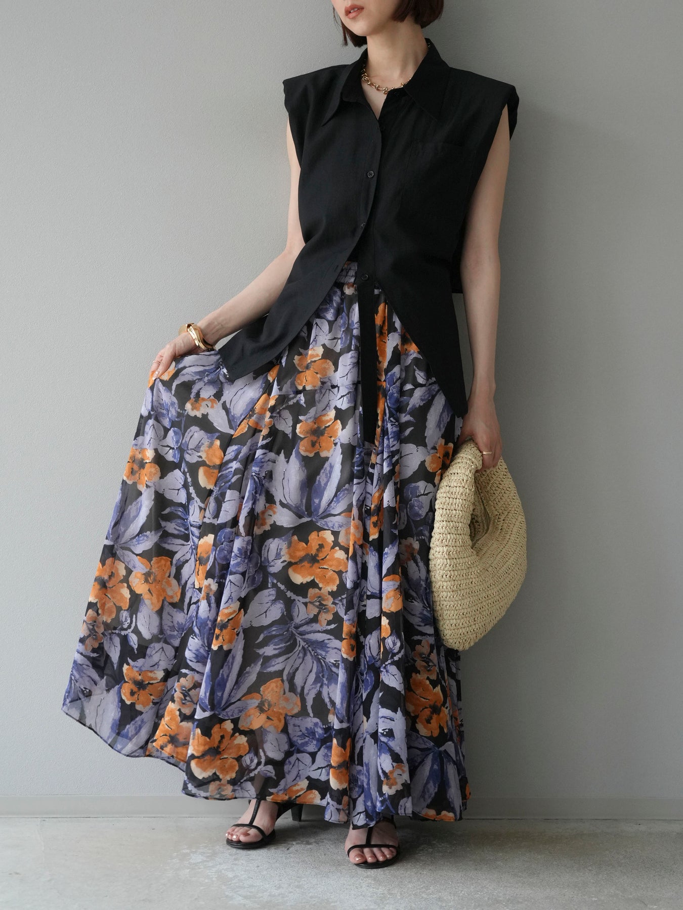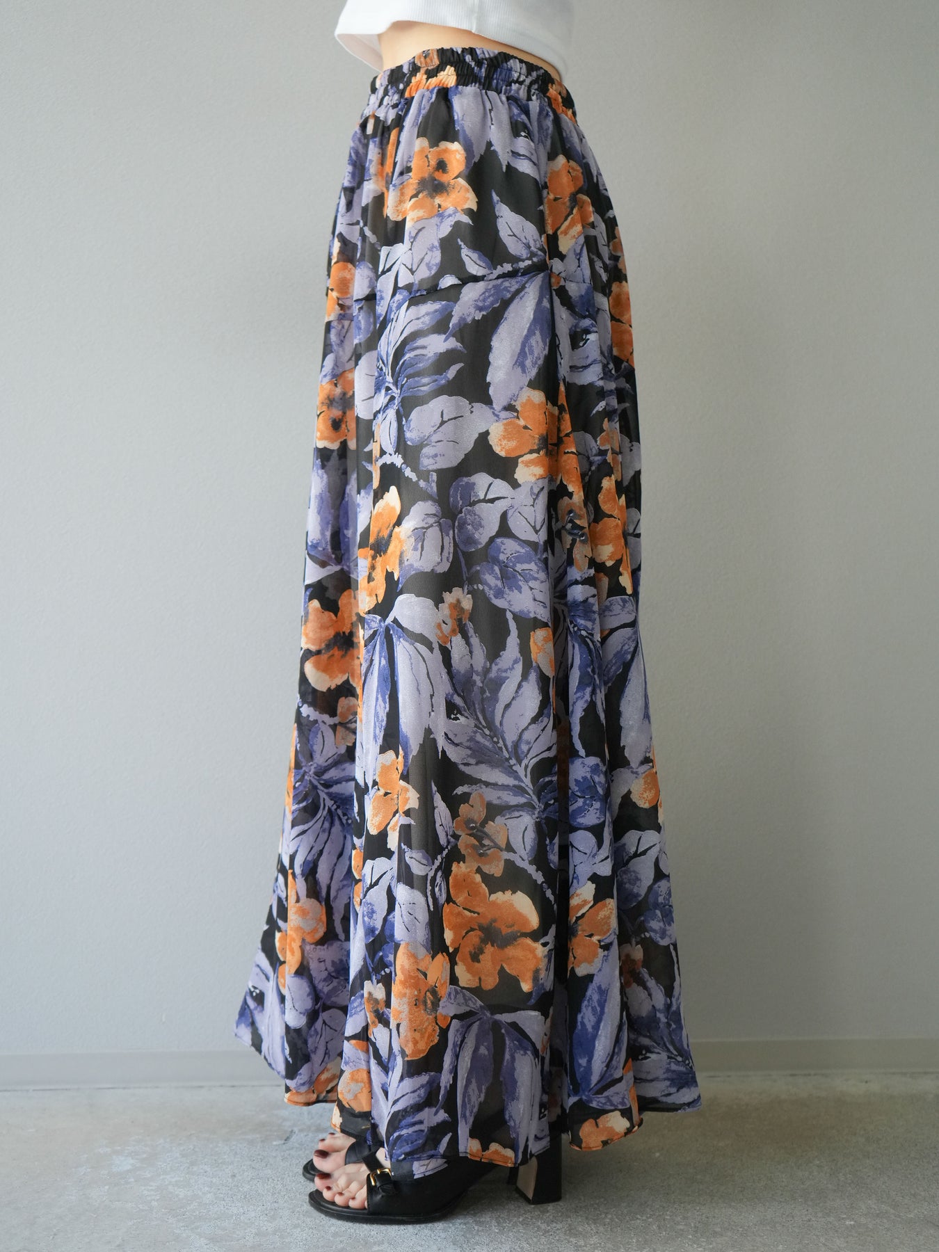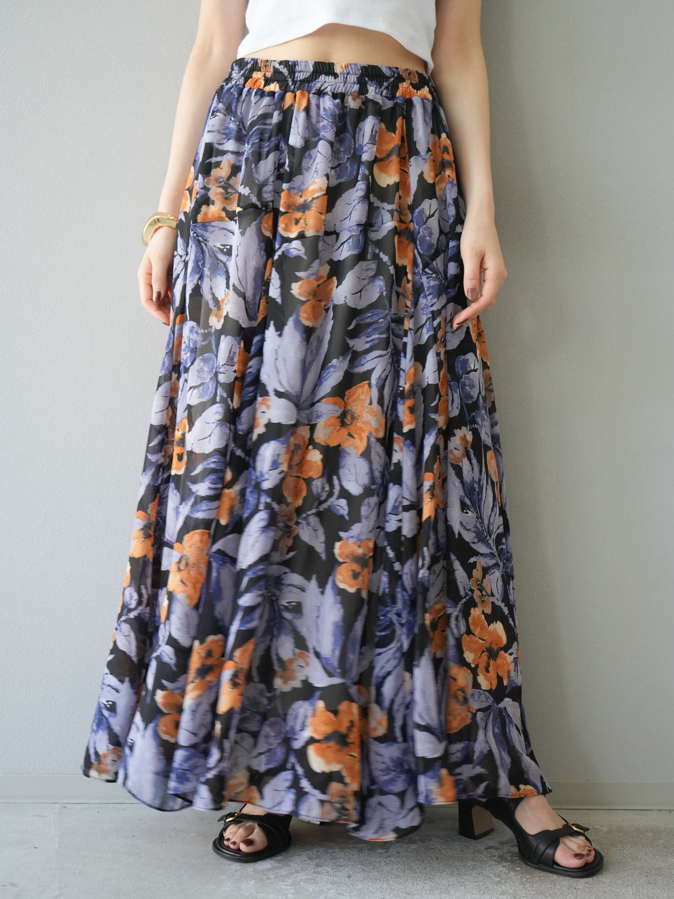 [予約]フラワープリントボリュームフレアスカート/ブラック