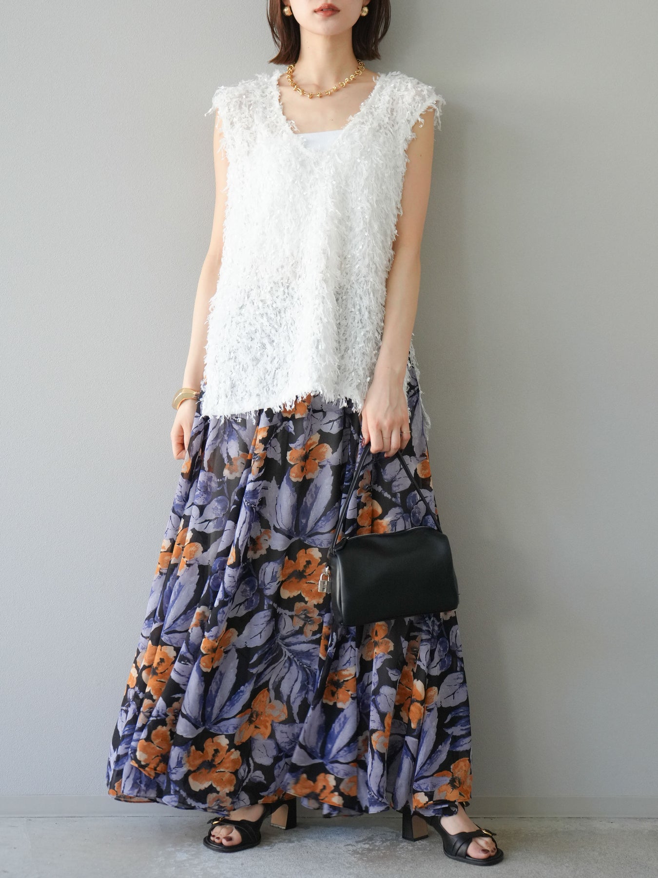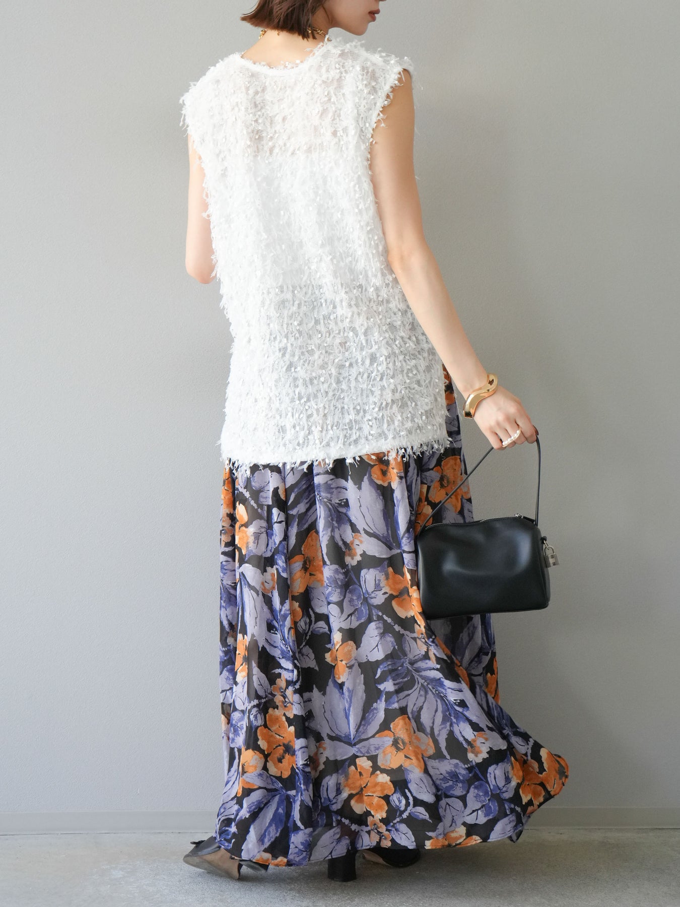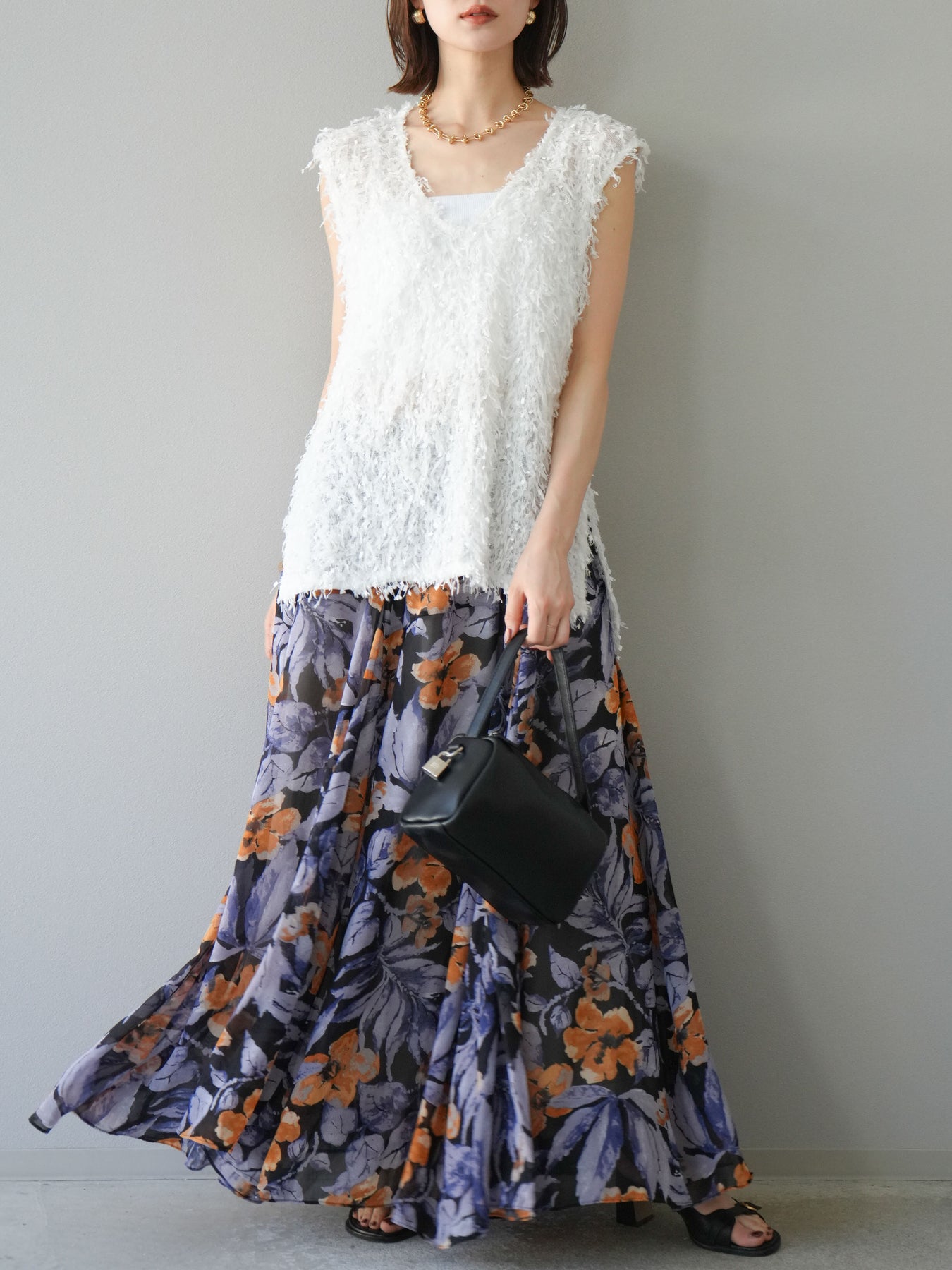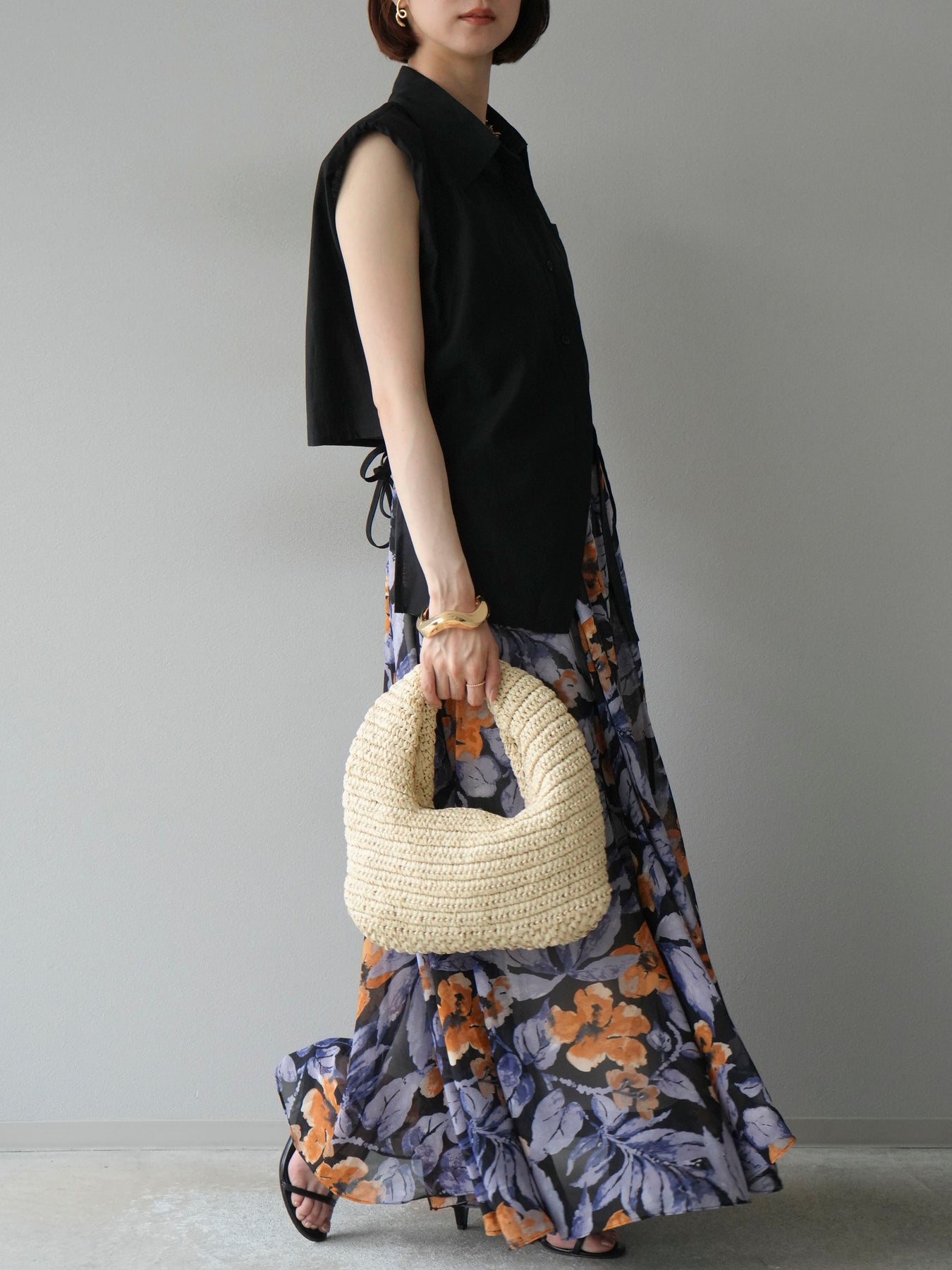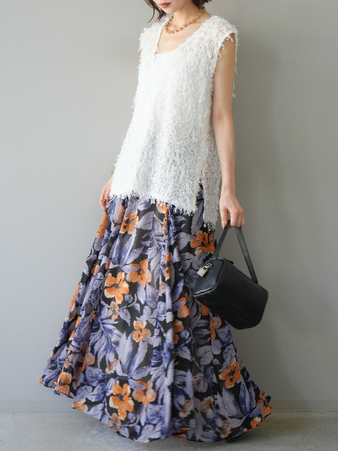 [予約]フラワープリントボリュームフレアスカート/ブラック