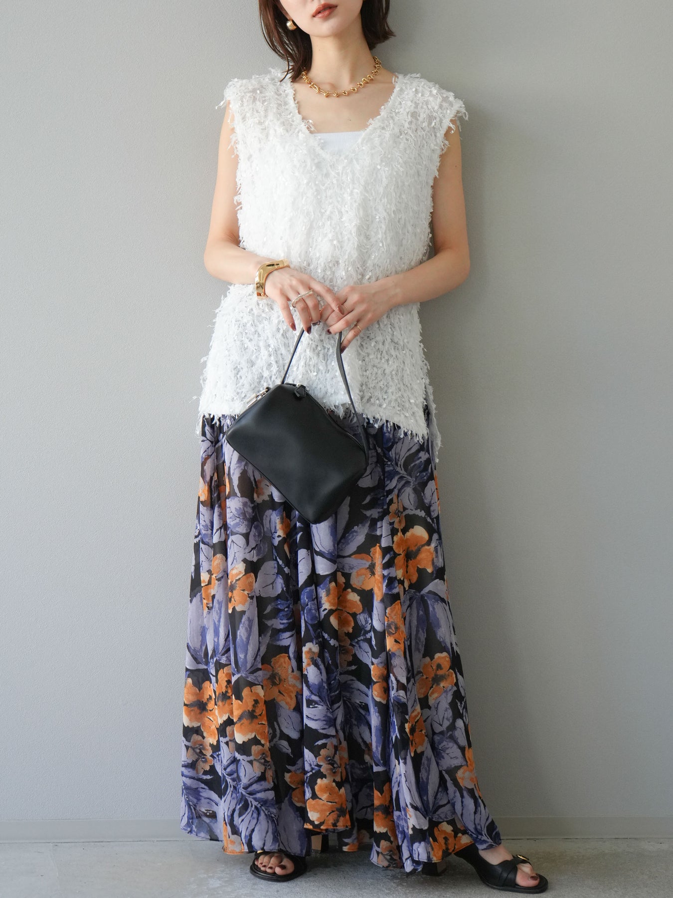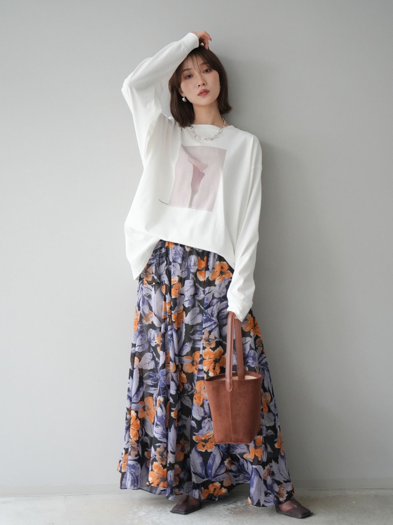 [予約]フラワープリントボリュームフレアスカートに関連する商品を探す↓