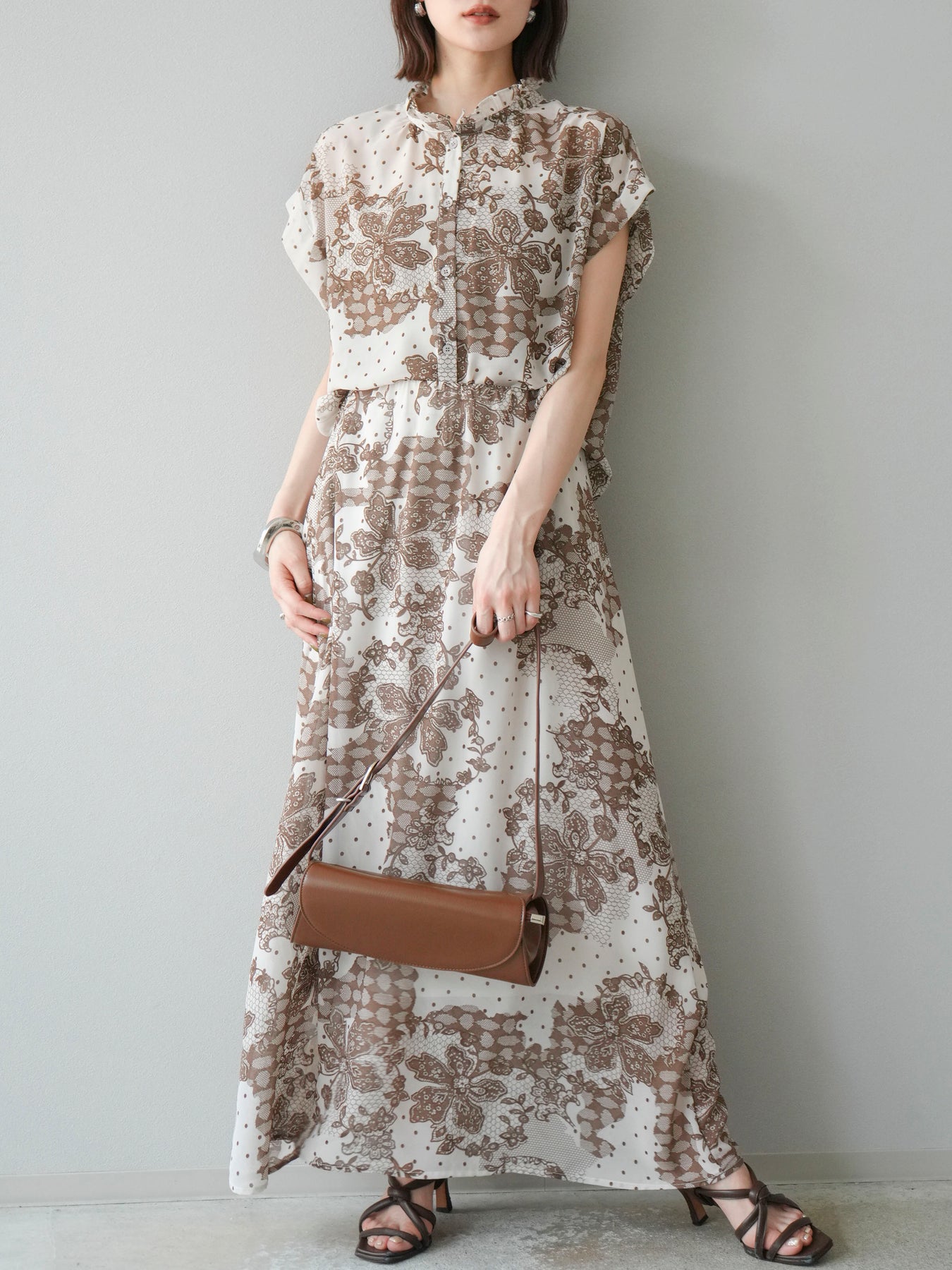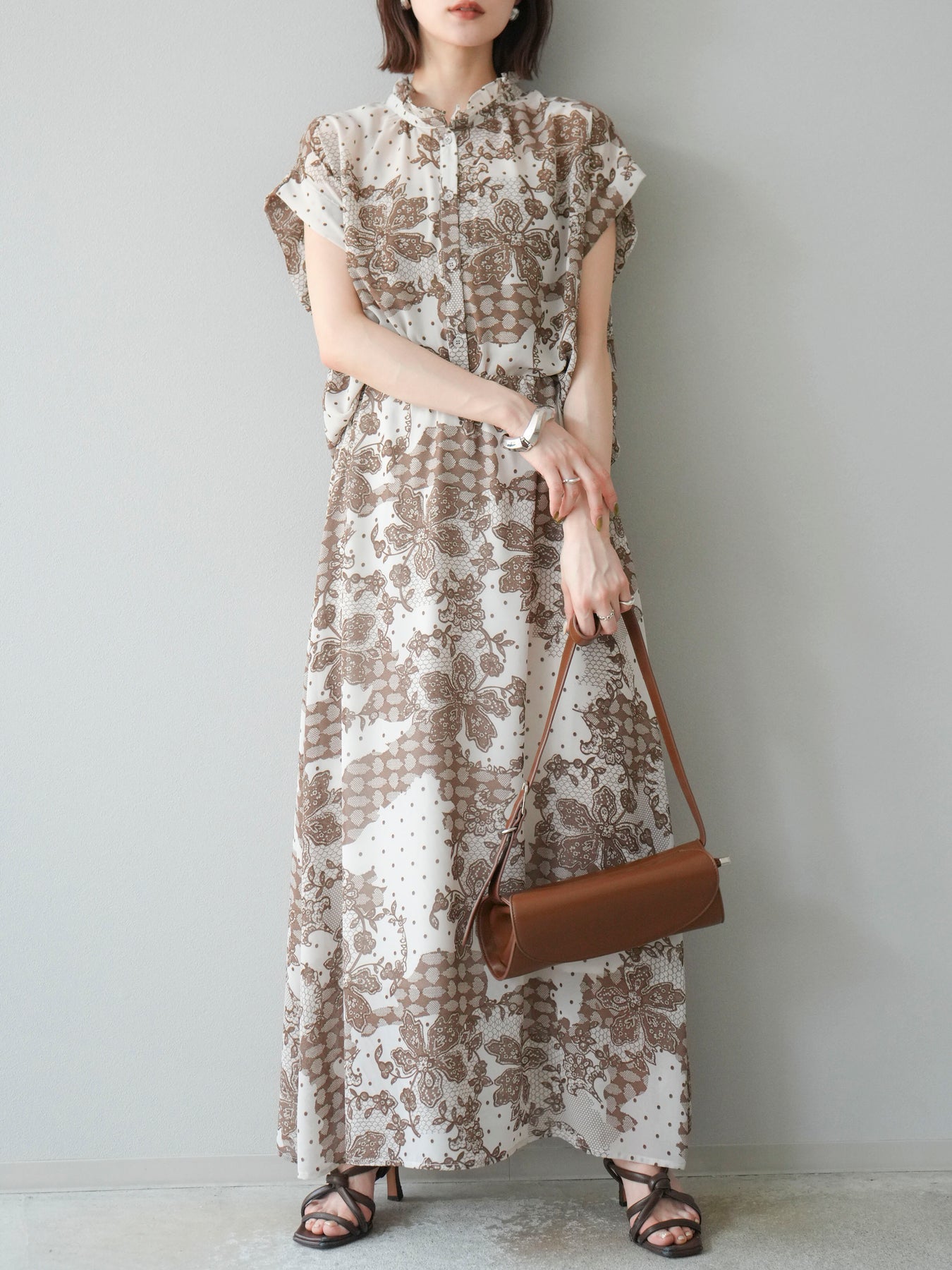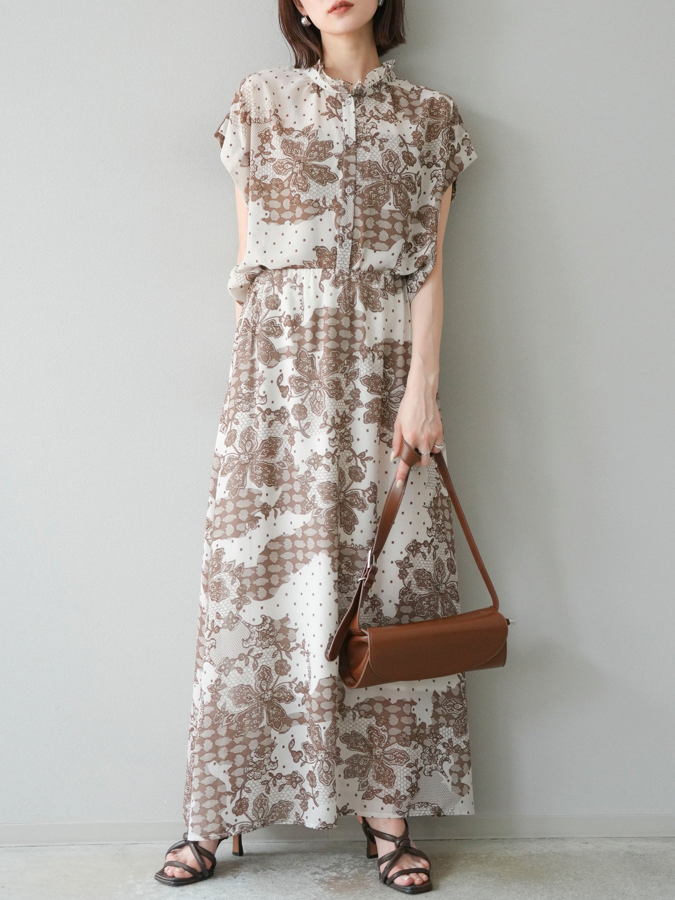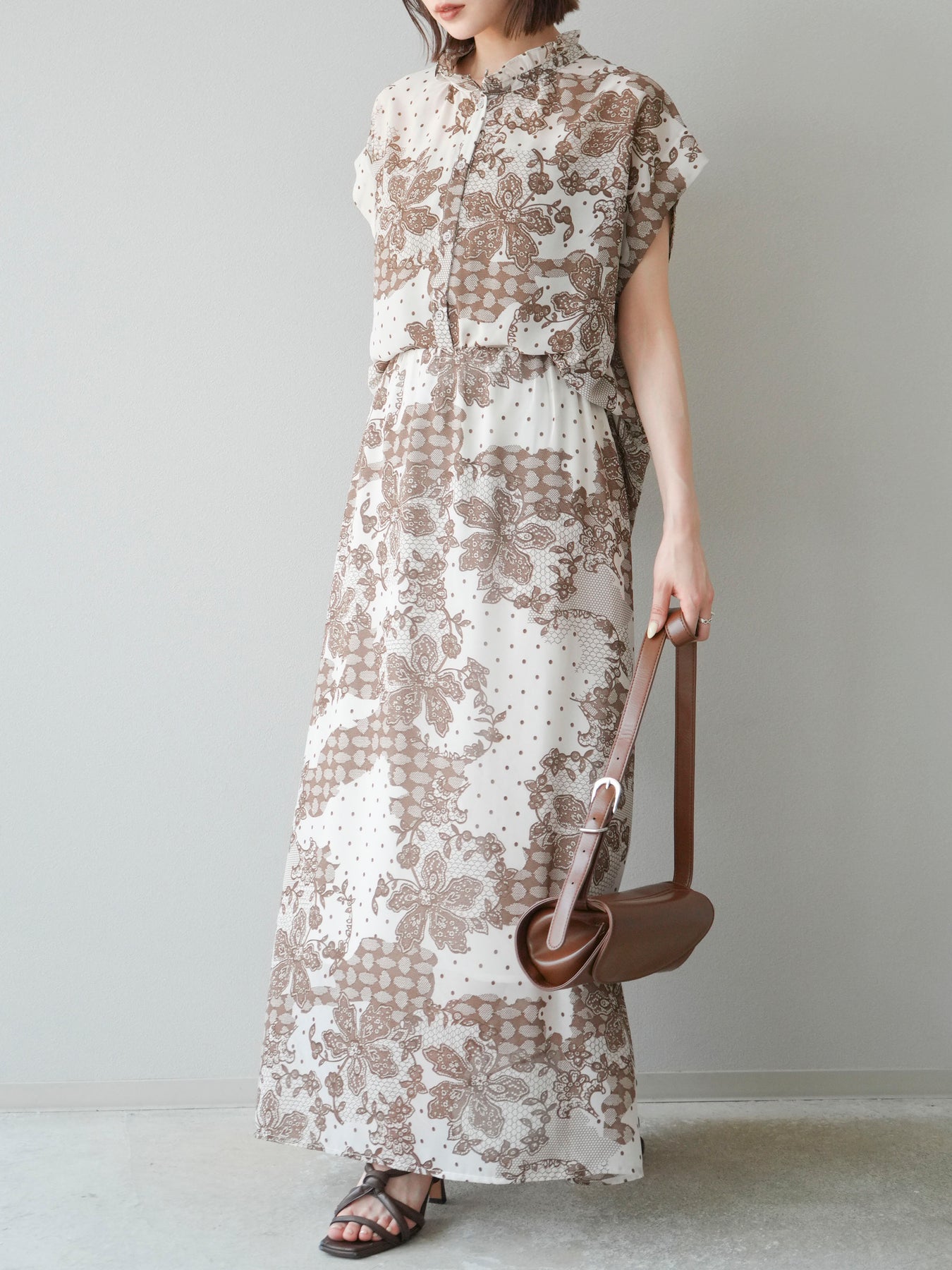 繊細なフラワーレース調プリントが施された、軽やかで華やかなフレアスカート。やわらかな素材感が動くたびにふんわりと揺れ、女性らしさを引き立てます。 ウエストは総ゴム仕様で、リラクシーな穿き心地ながら、すっきりとした腰まわりと程よい広がりのシルエットが上品な印象に。 シンプルなトップスと合わせるだけで、コーディネートの主役になる存在感のある一着です。