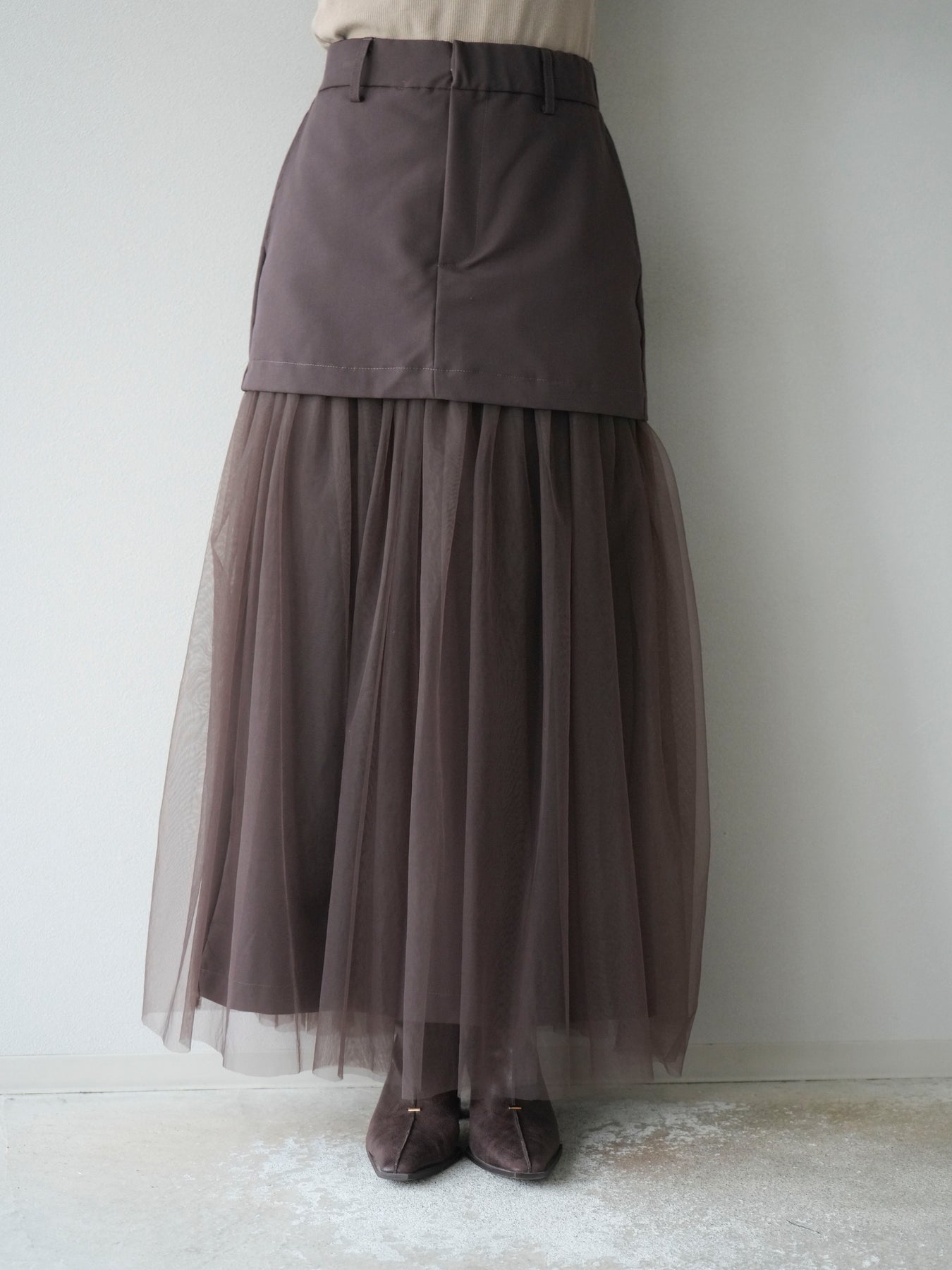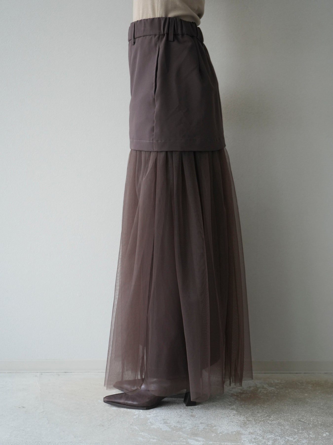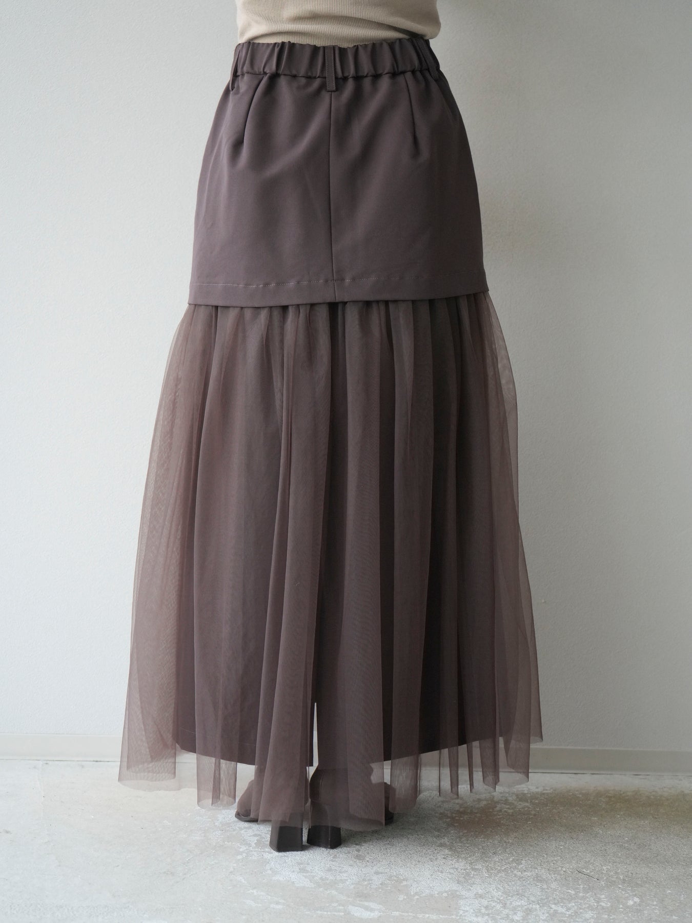 [予約]エステル切替チュールスカート/ブラウン