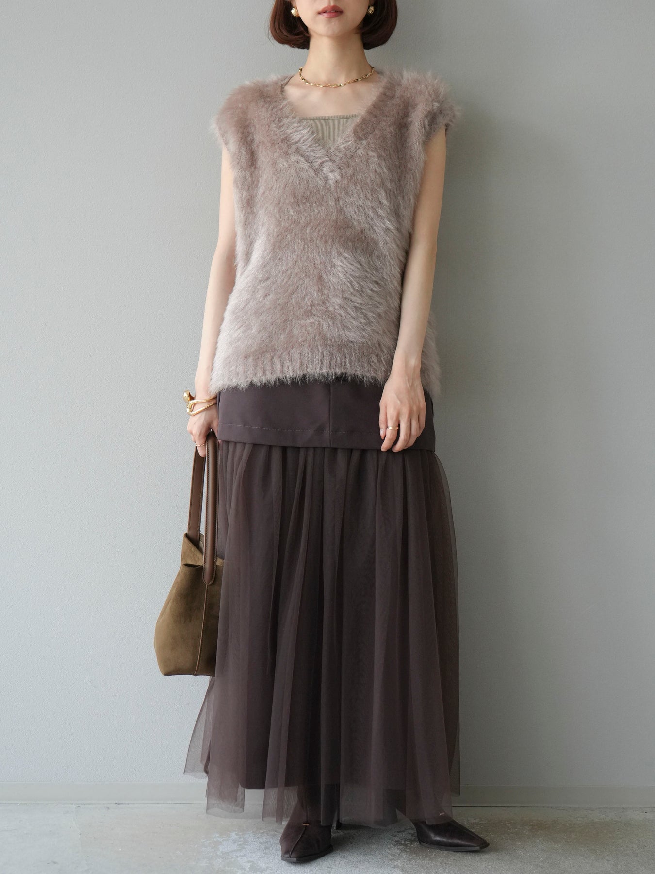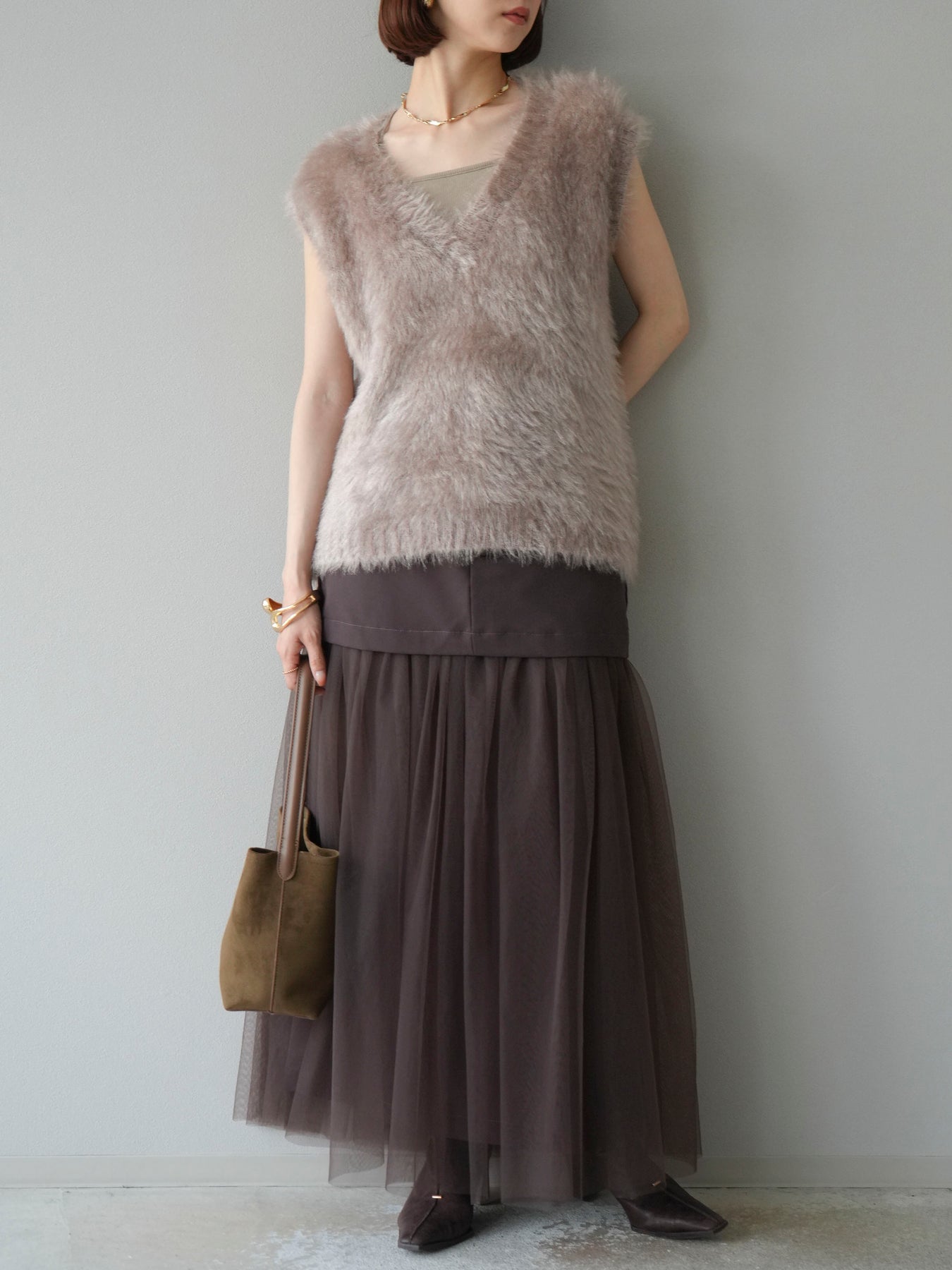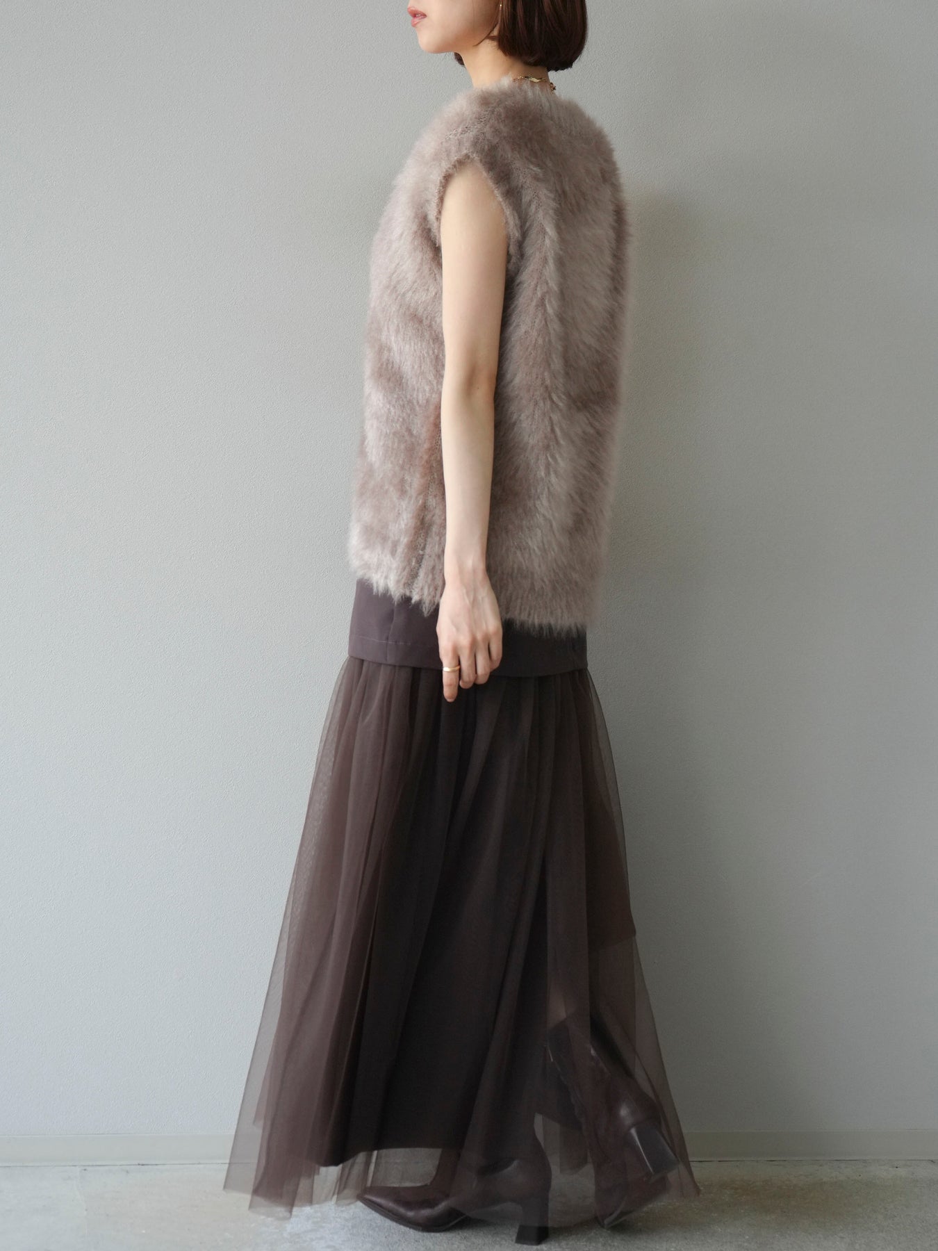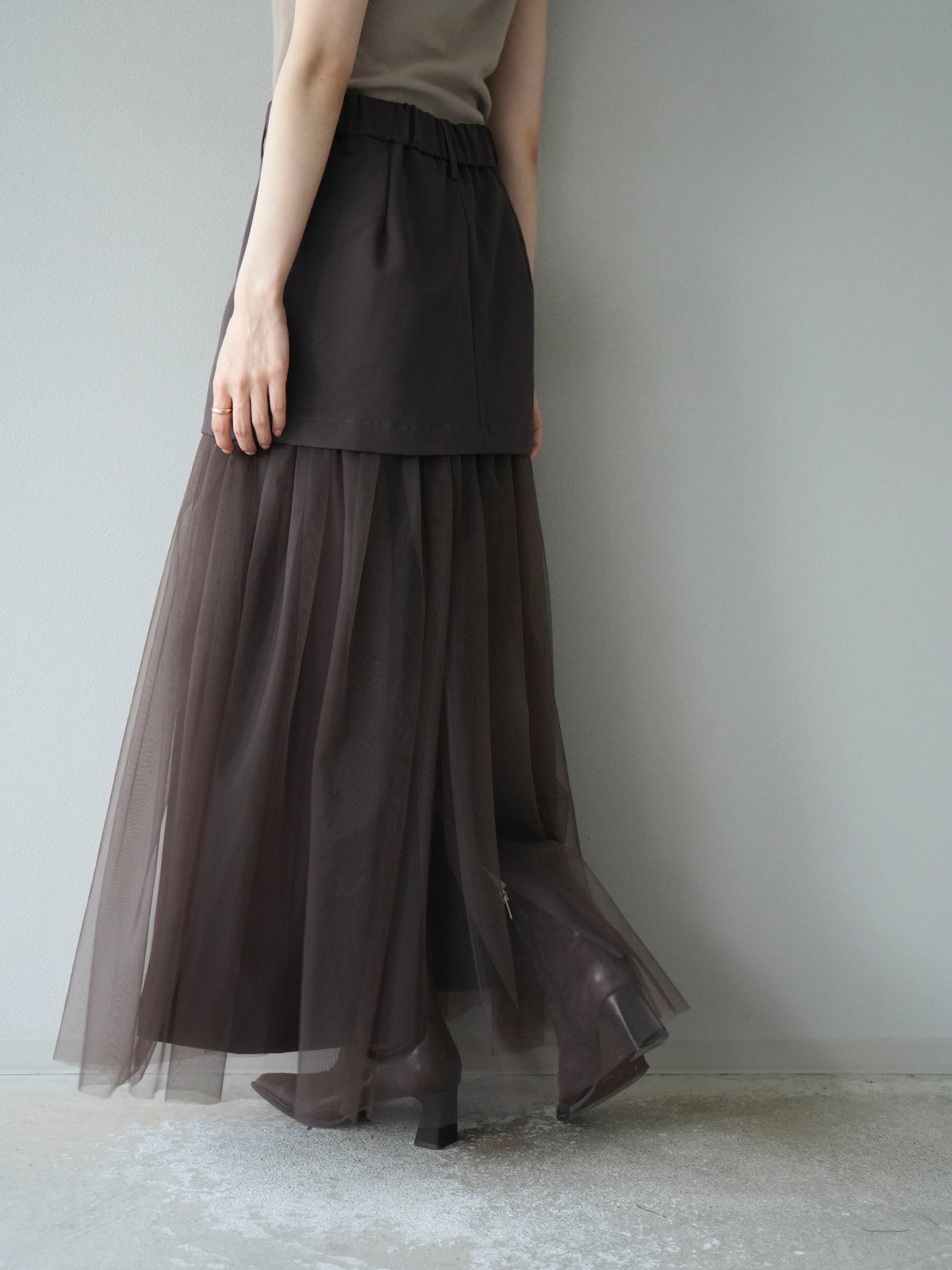 [予約]エステル切替チュールスカート/ブラウン