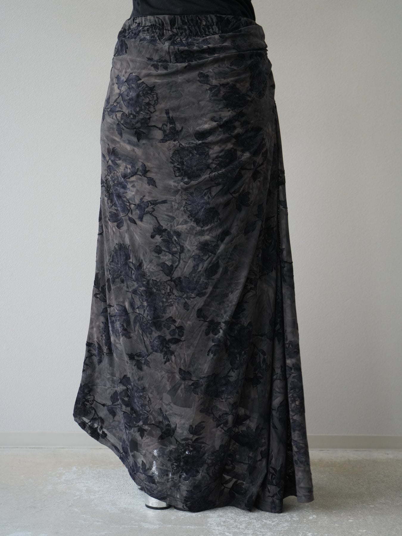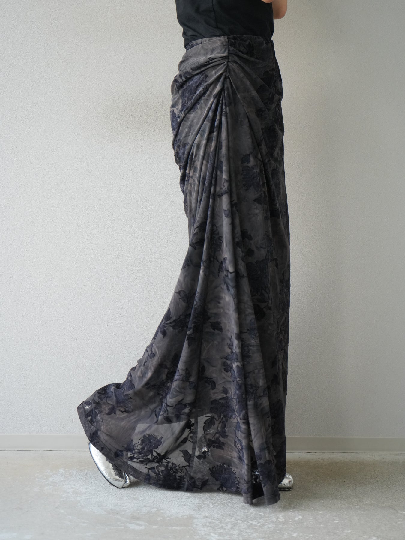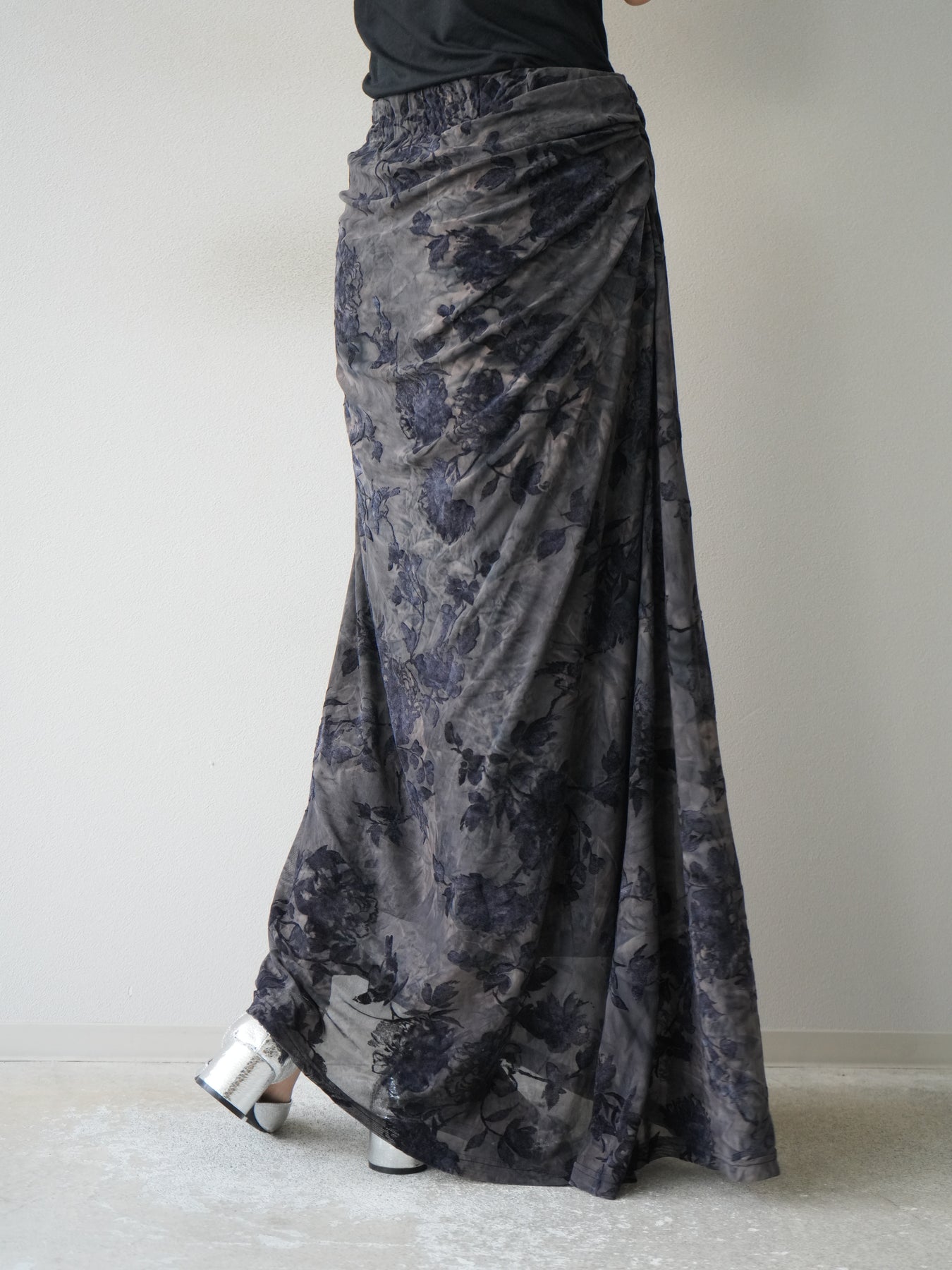[予約]フラワーフロッキーシアードレープスカート/ブルー