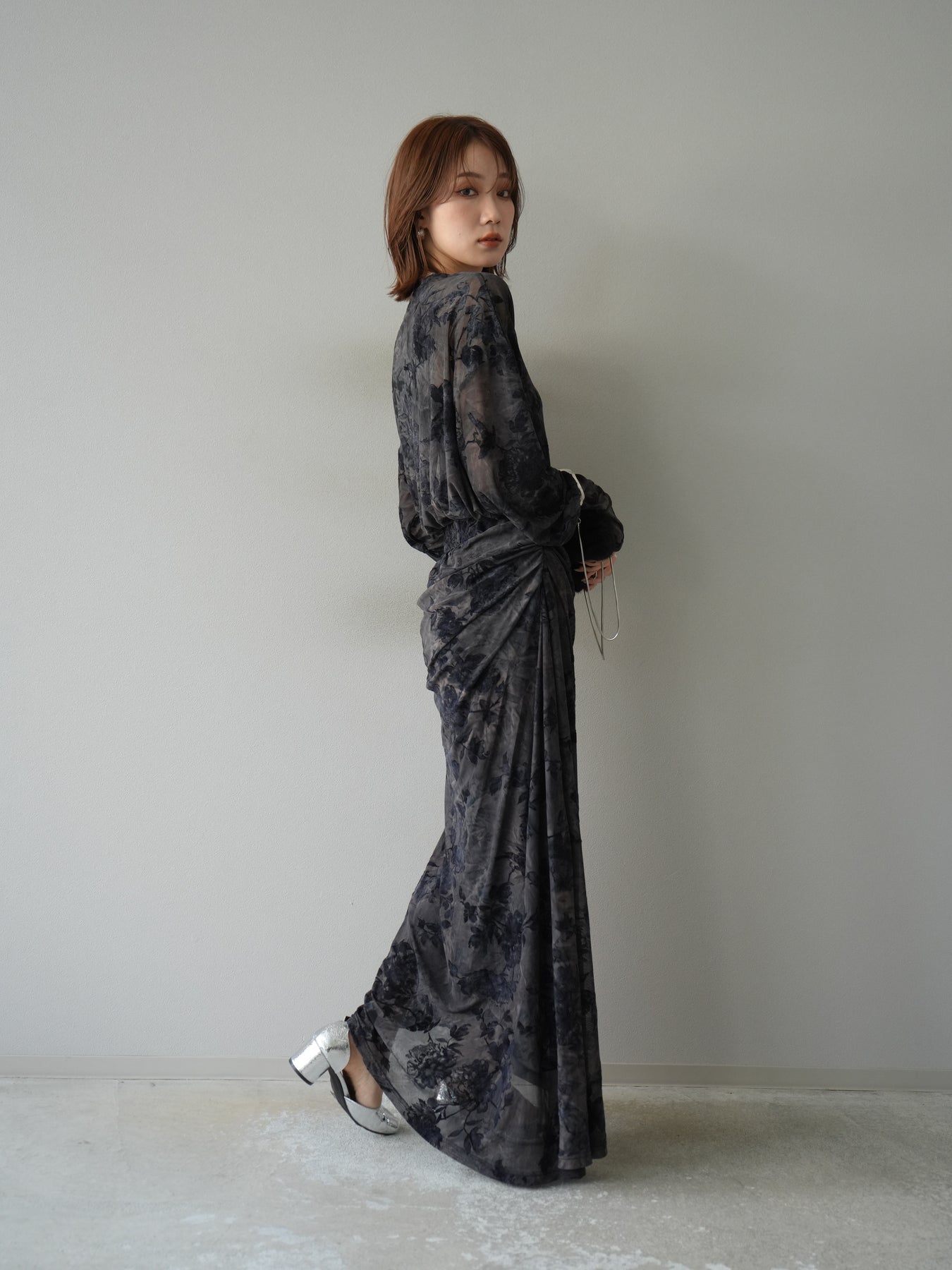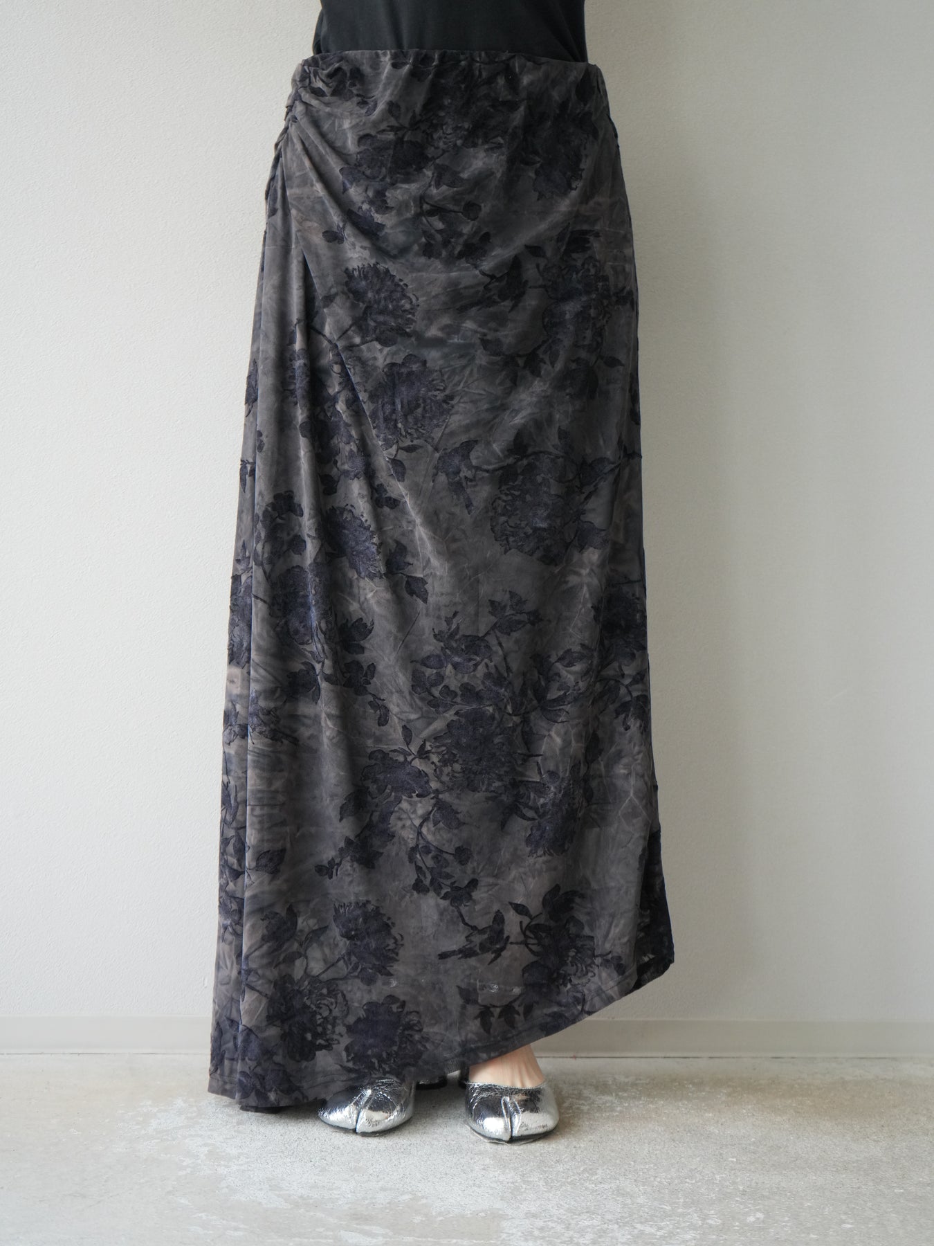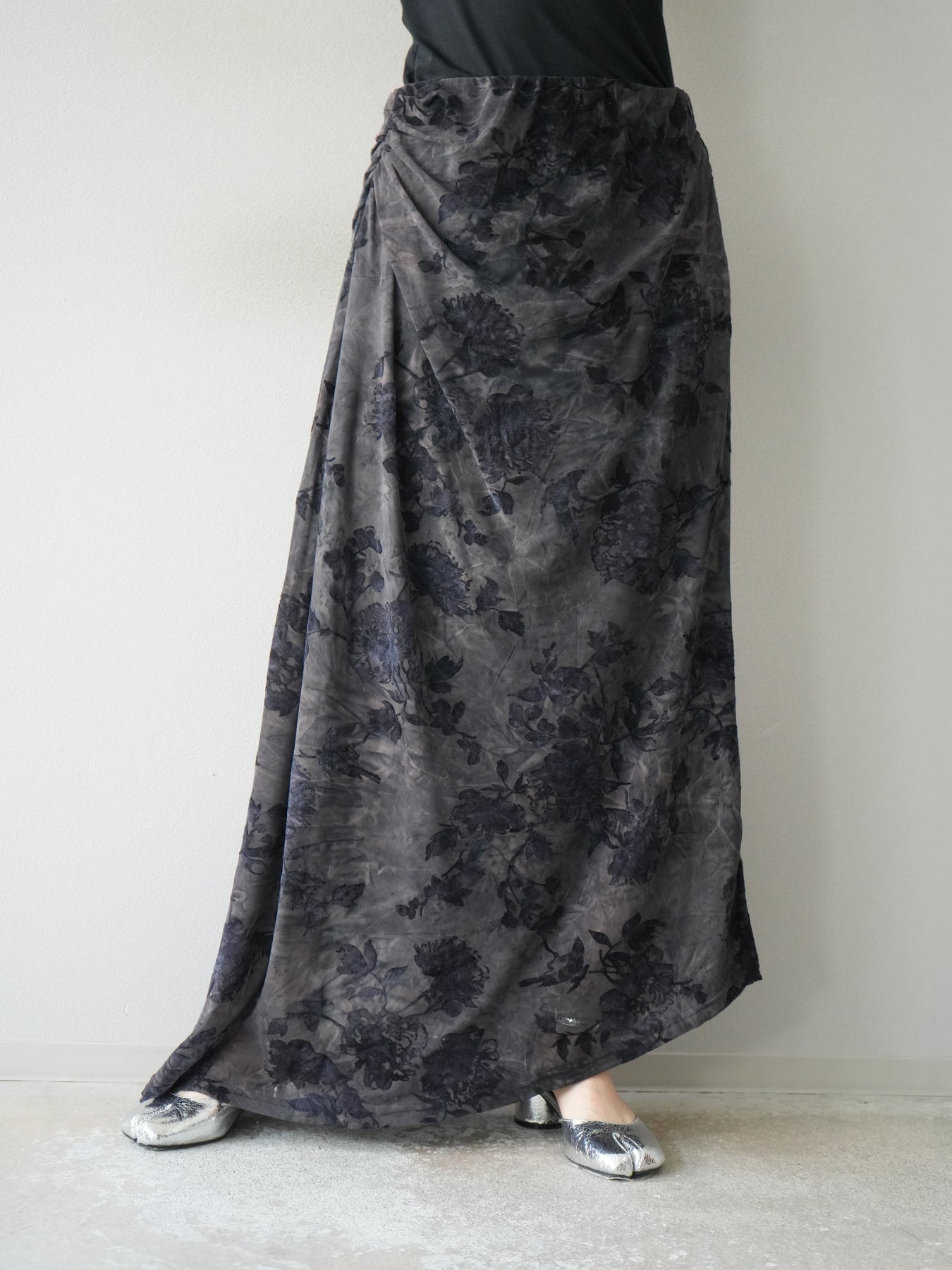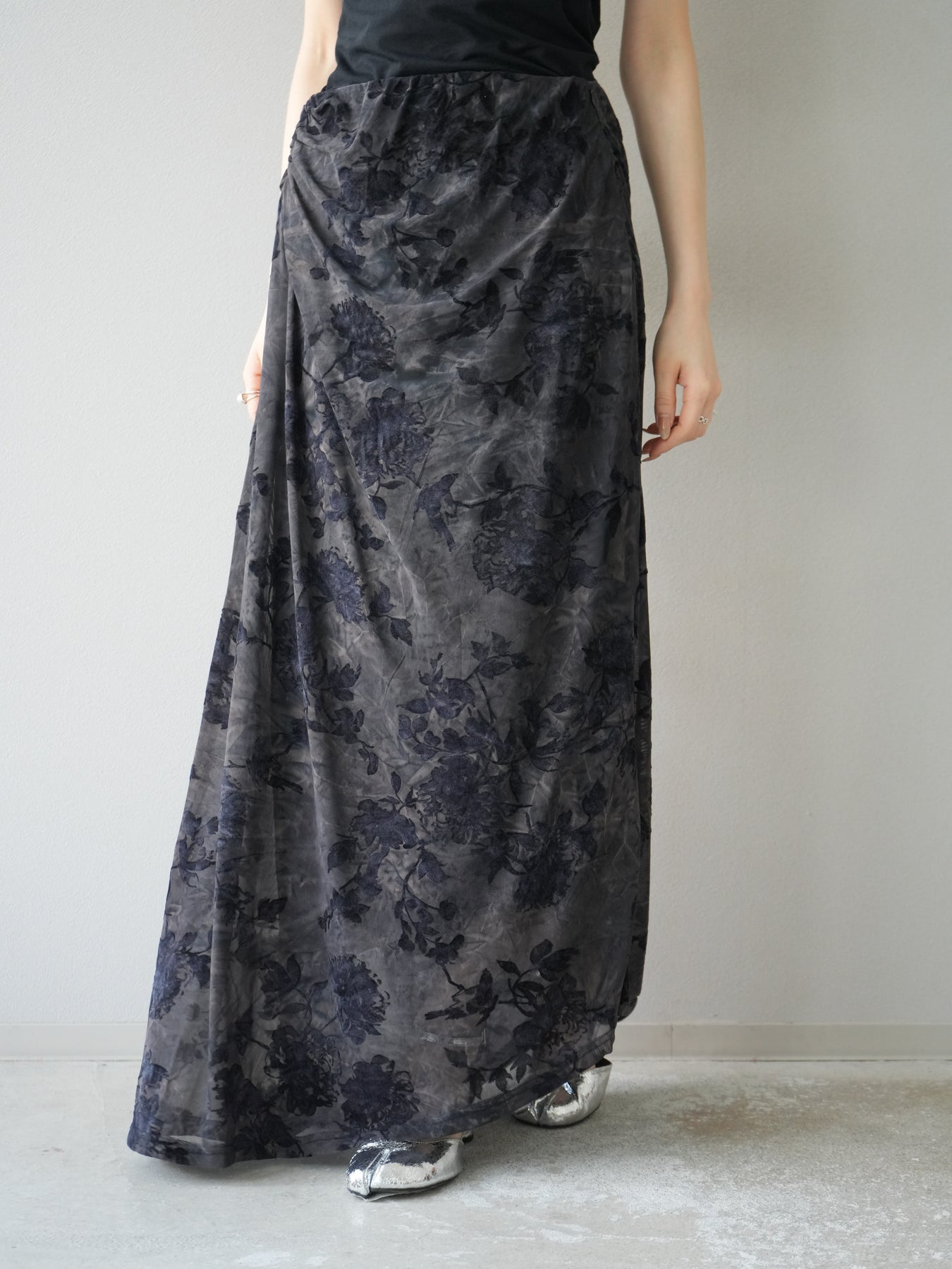[予約]フラワーフロッキーシアードレープスカート/ブルー