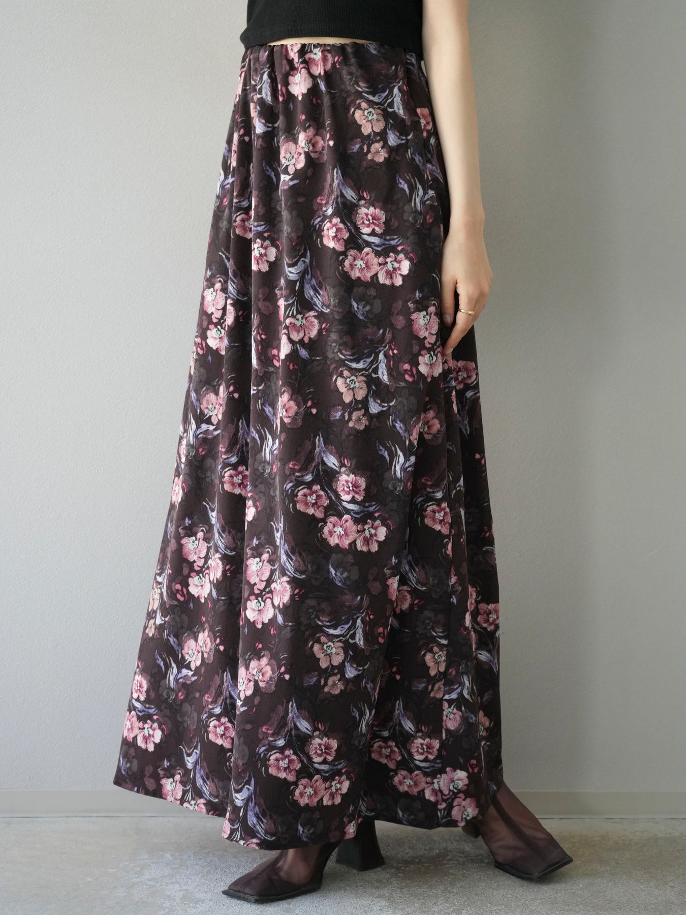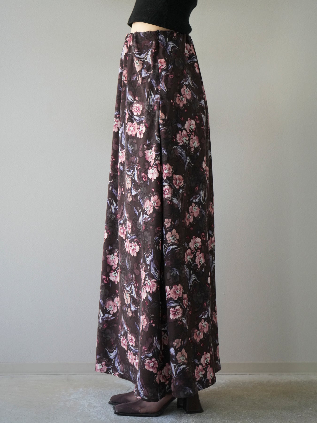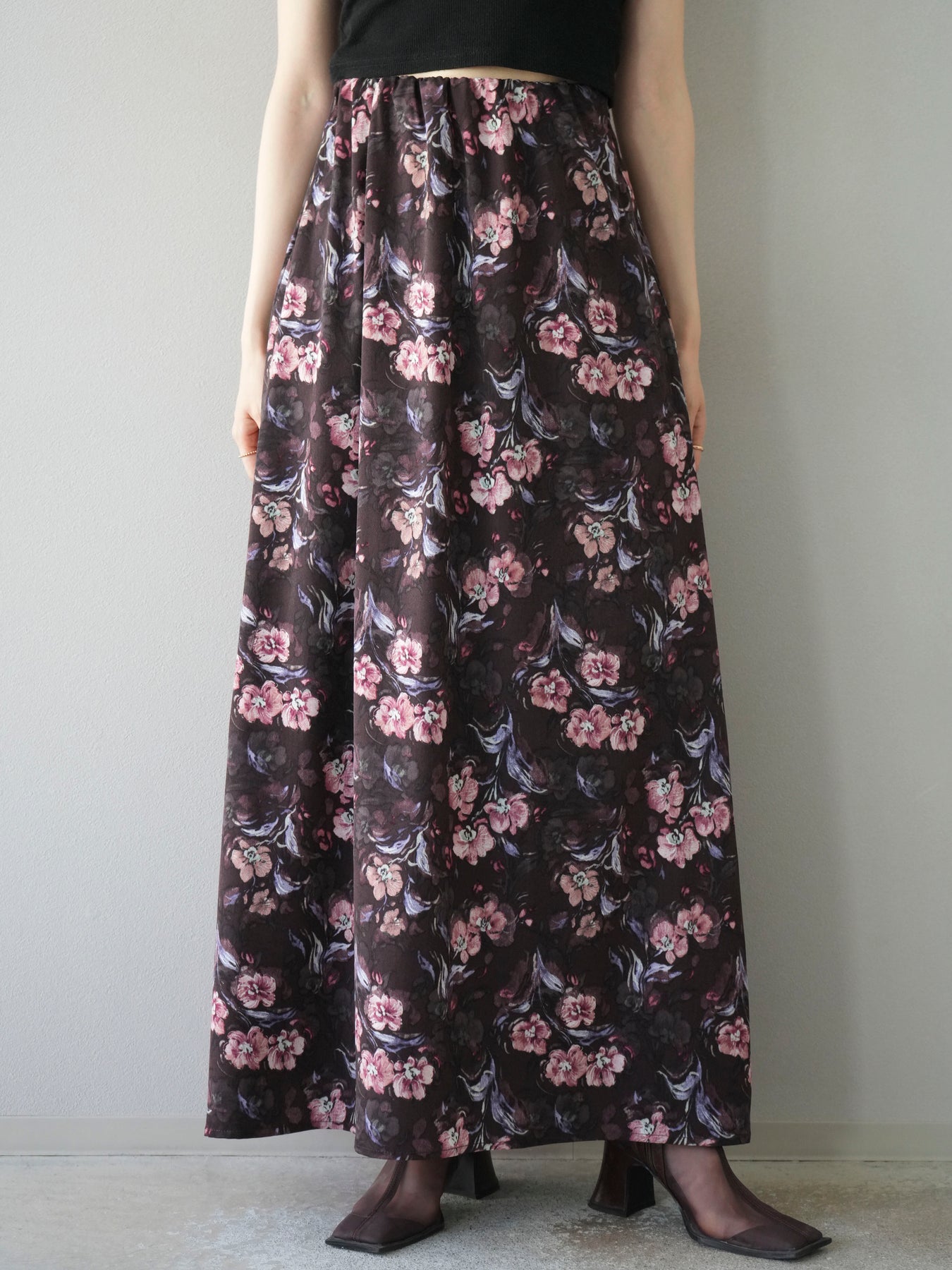 華やかなフラワープリントが目を引くナロースカート。縦に流れるようなシルエットで、すっきりとしたラインを演出しながらも、歩くたびに揺れる柔らかな素材感が女性らしさを引き立てます。ウエストは程よくフィットしつつ快適な穿き心地を叶え、トップスをインしてもアウトしてもバランス良く着こなせるデザイン。ブラウスやニットと合わせるだけで、スタイリング全体が華やかにまとまるアイテムです。