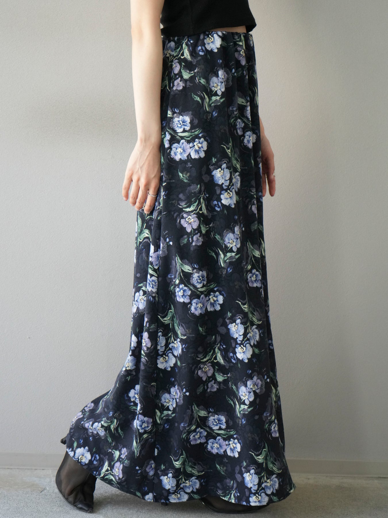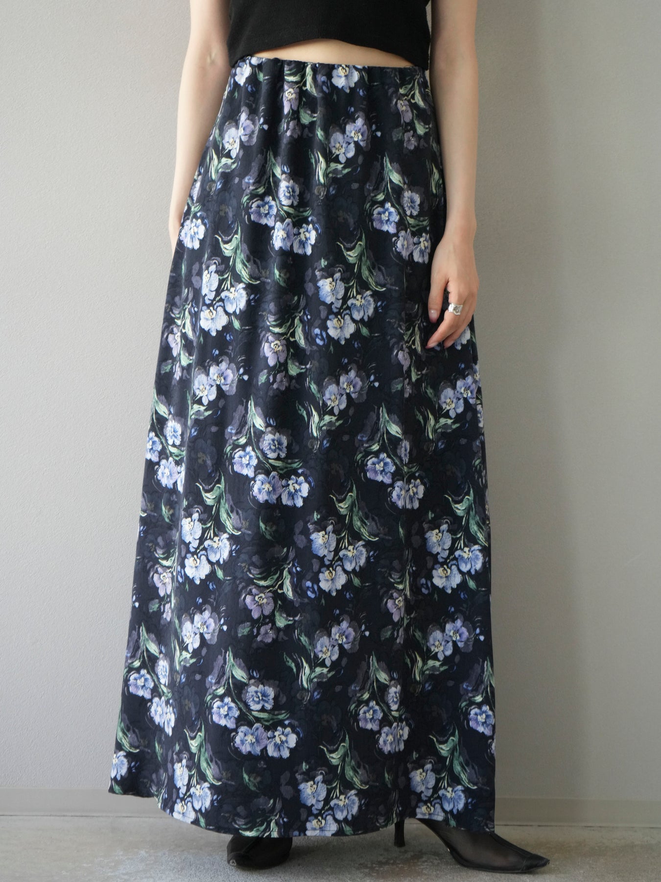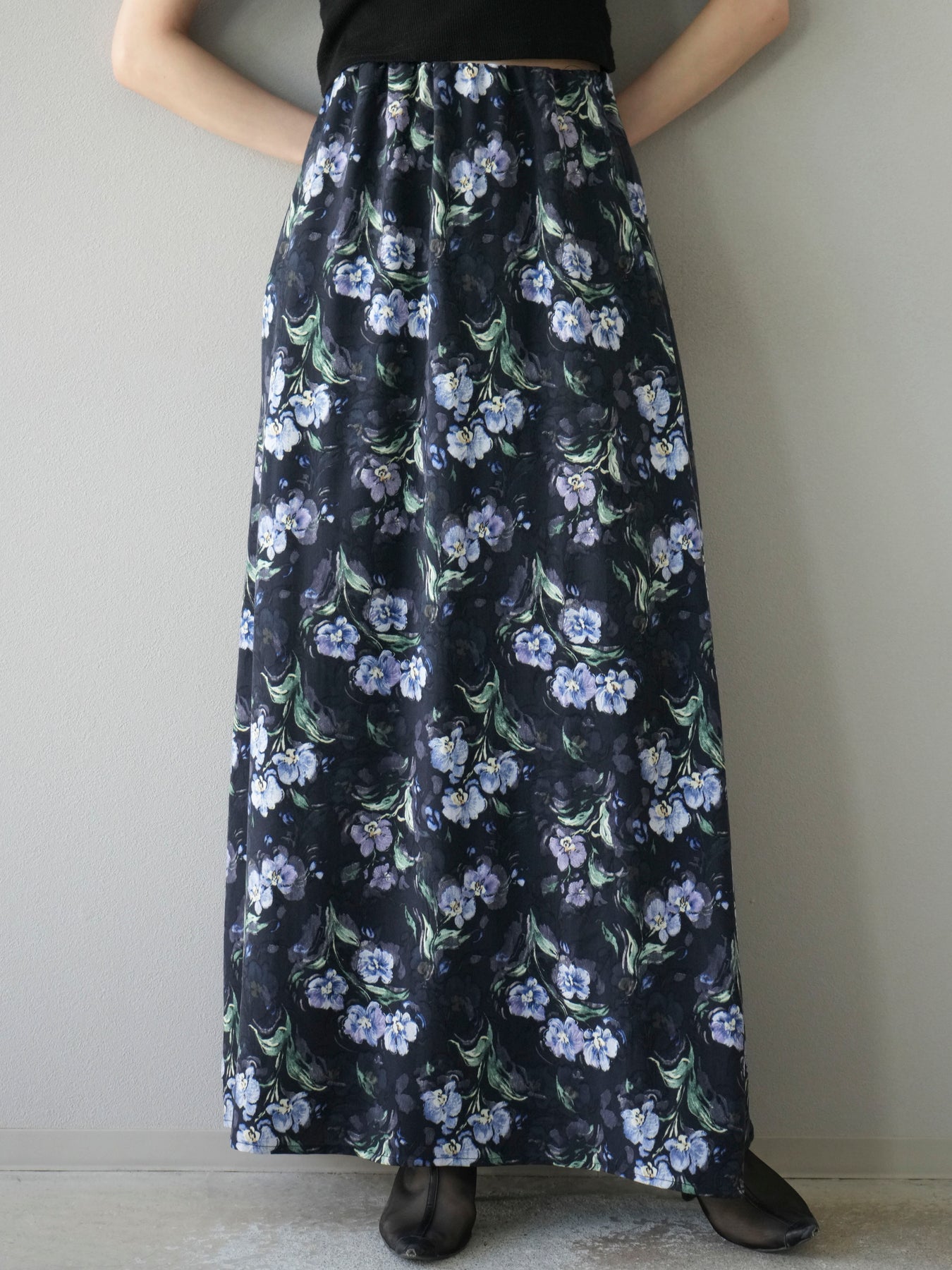 [予約]フラワーナロースカート/ネイビー