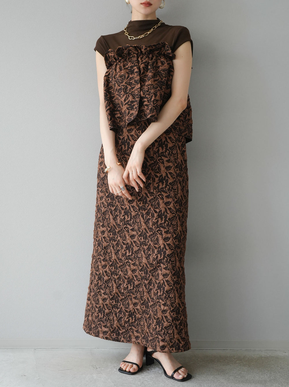 [予約]膨れジャガードマルチWAYスカート/ブラウン