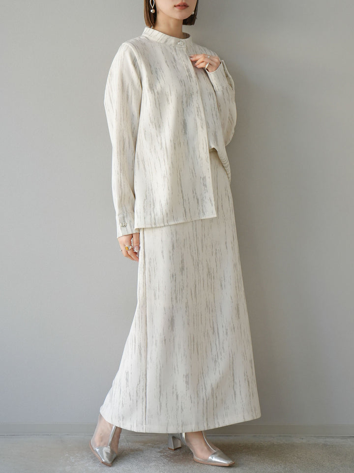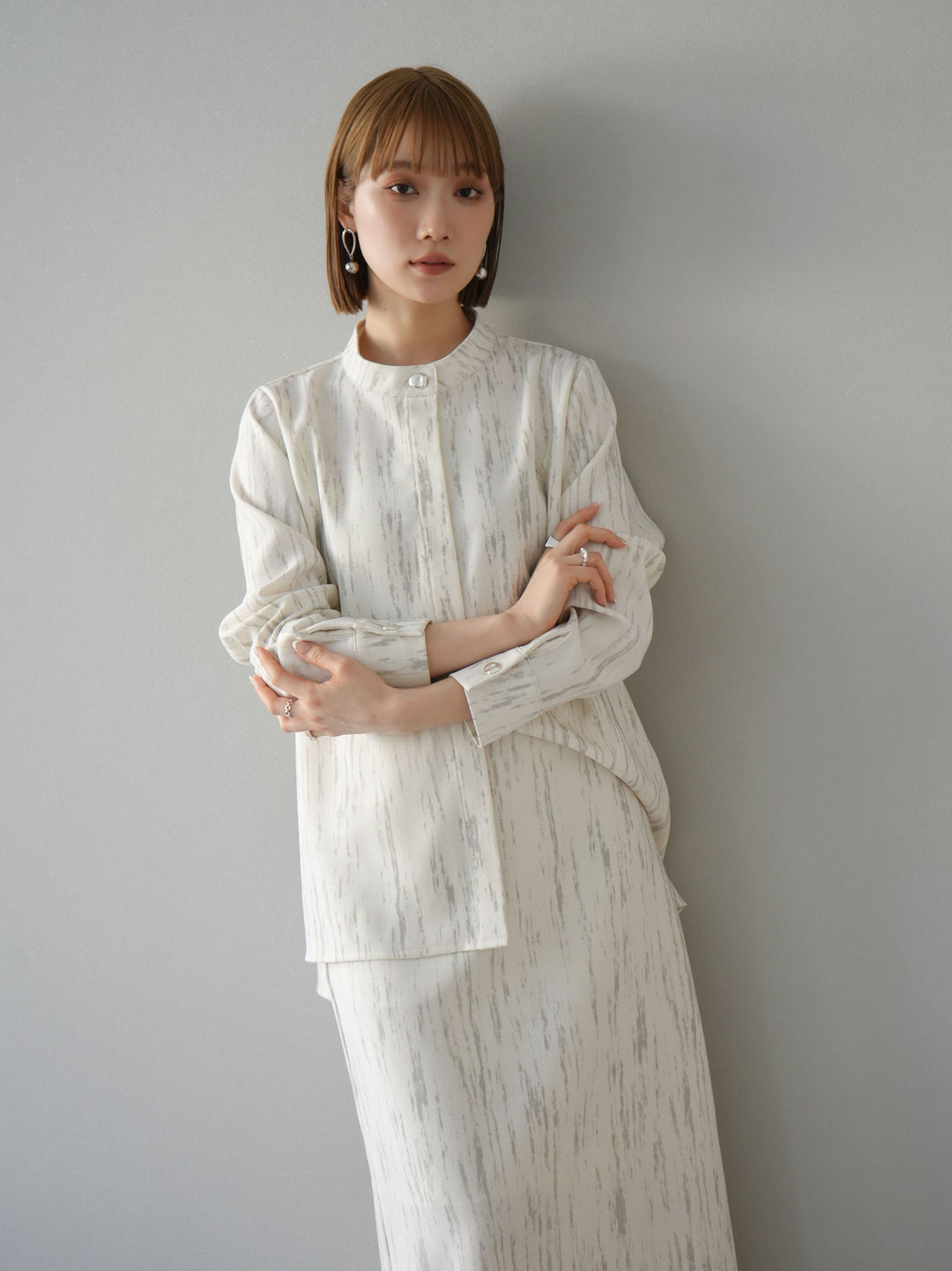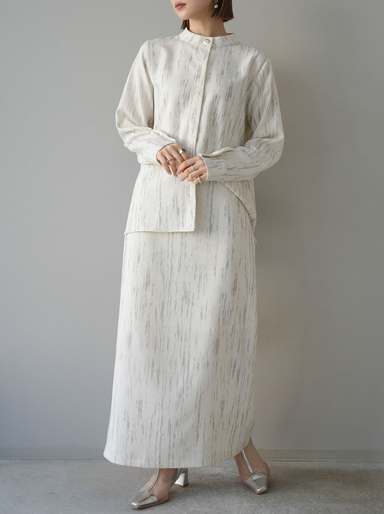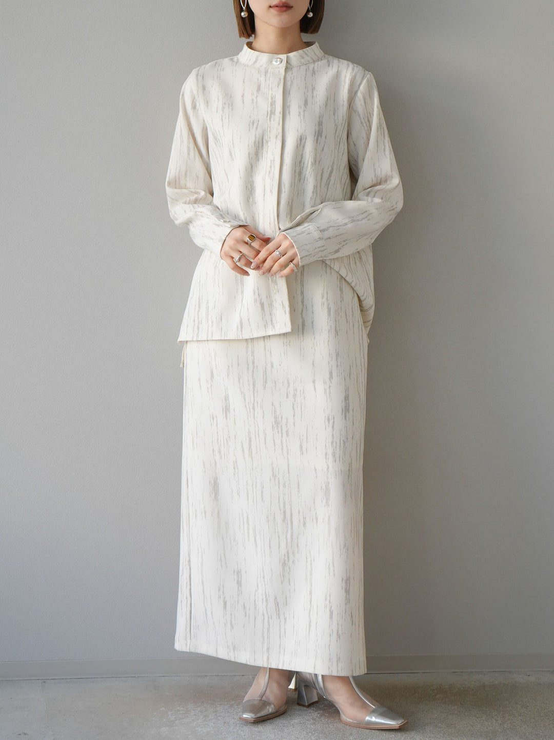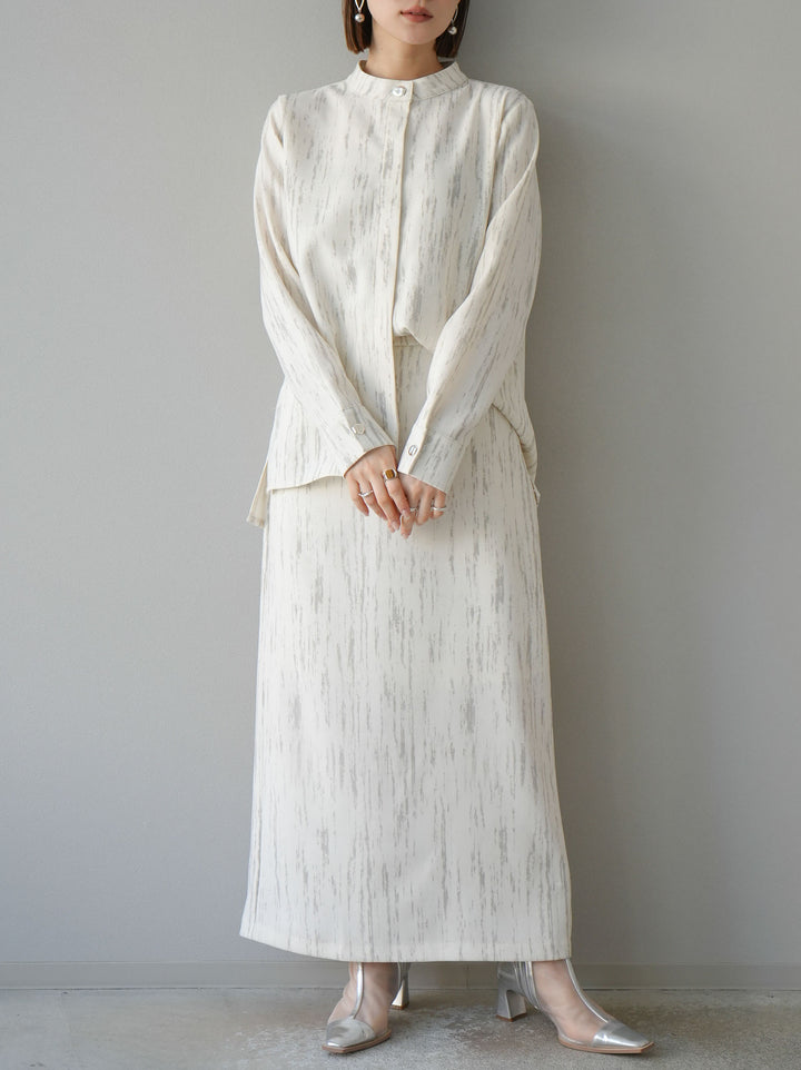 [SET]水彩柄バンドカラーシャツ+水彩柄タイトスカート(2set)