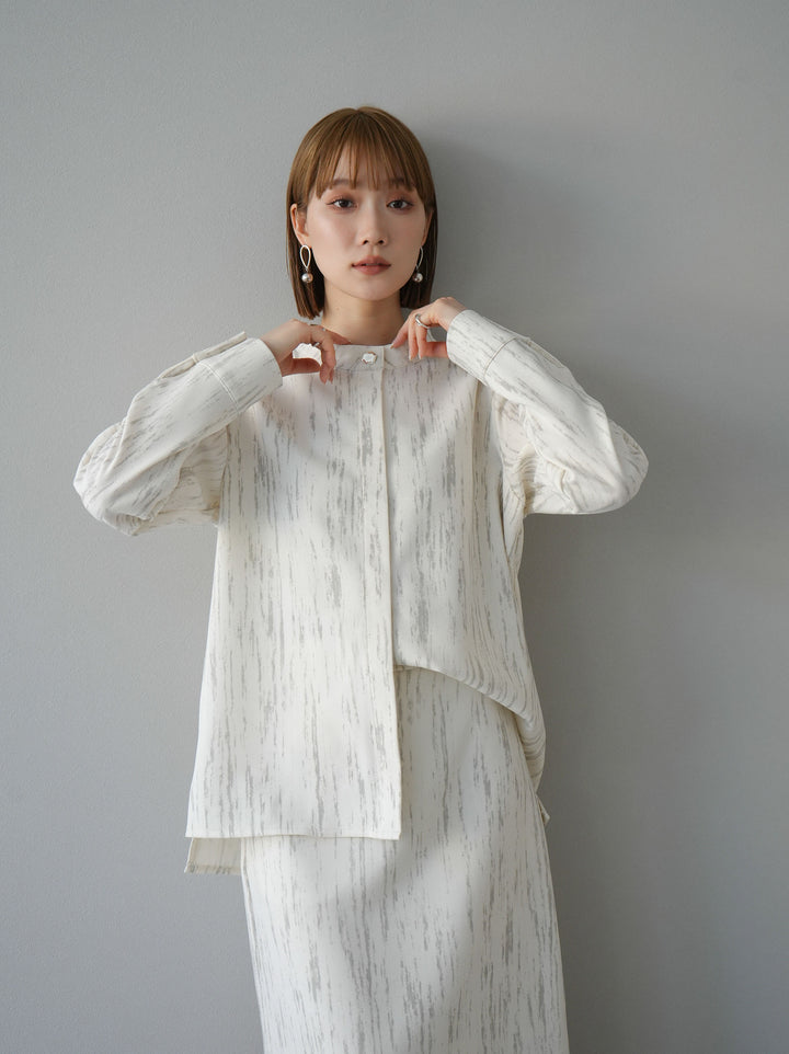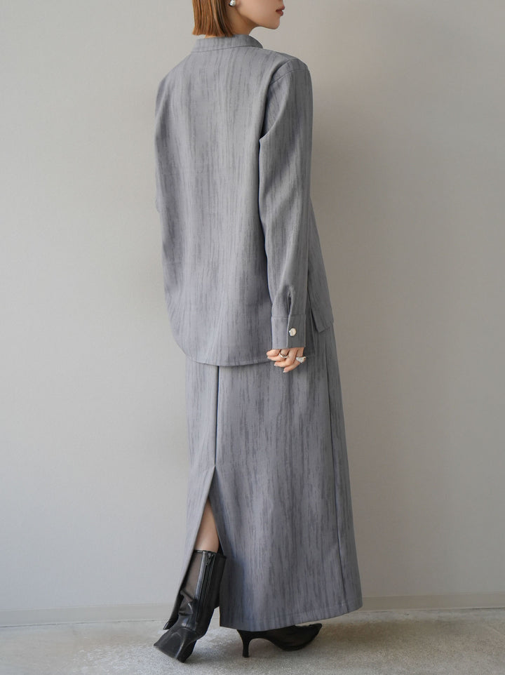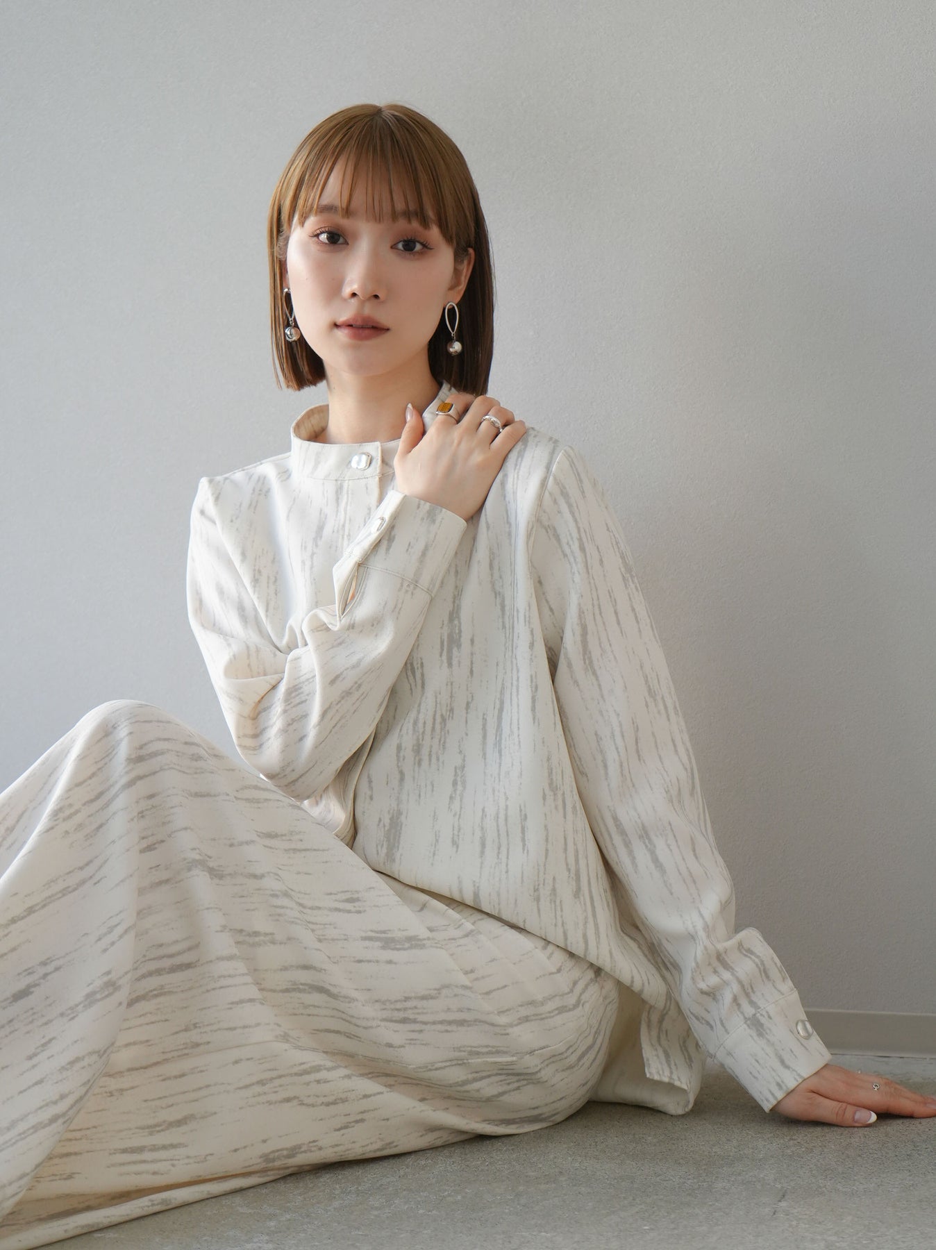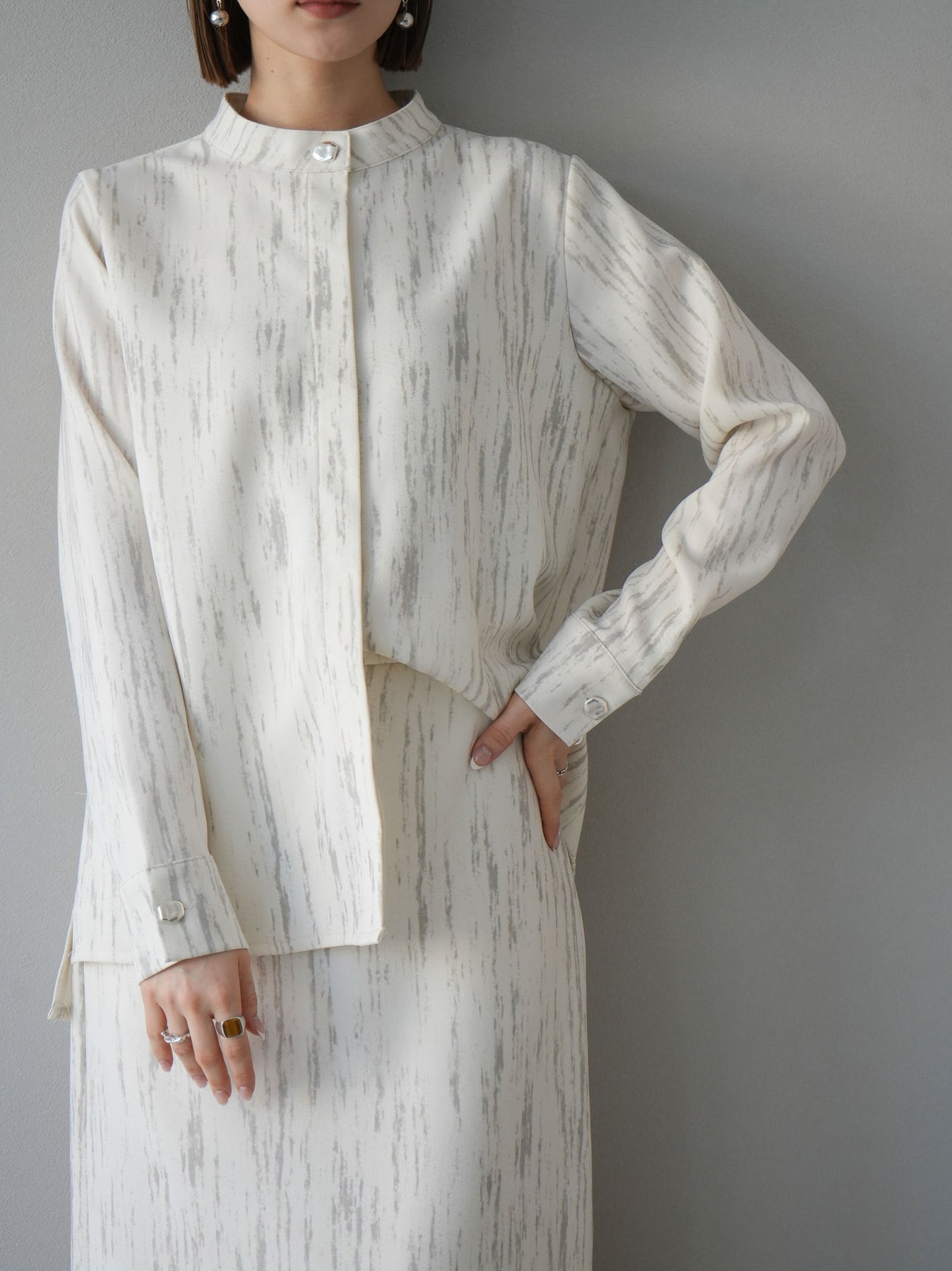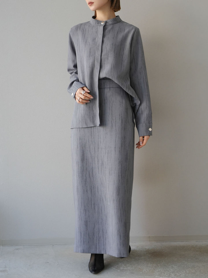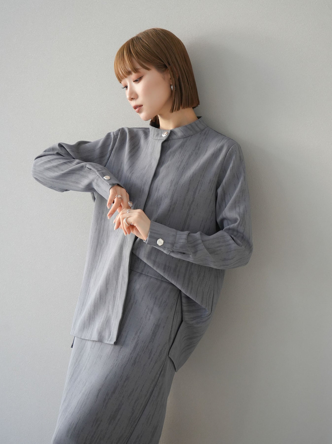 [SET]水彩柄バンドカラーシャツ+水彩柄タイトスカート(2set)