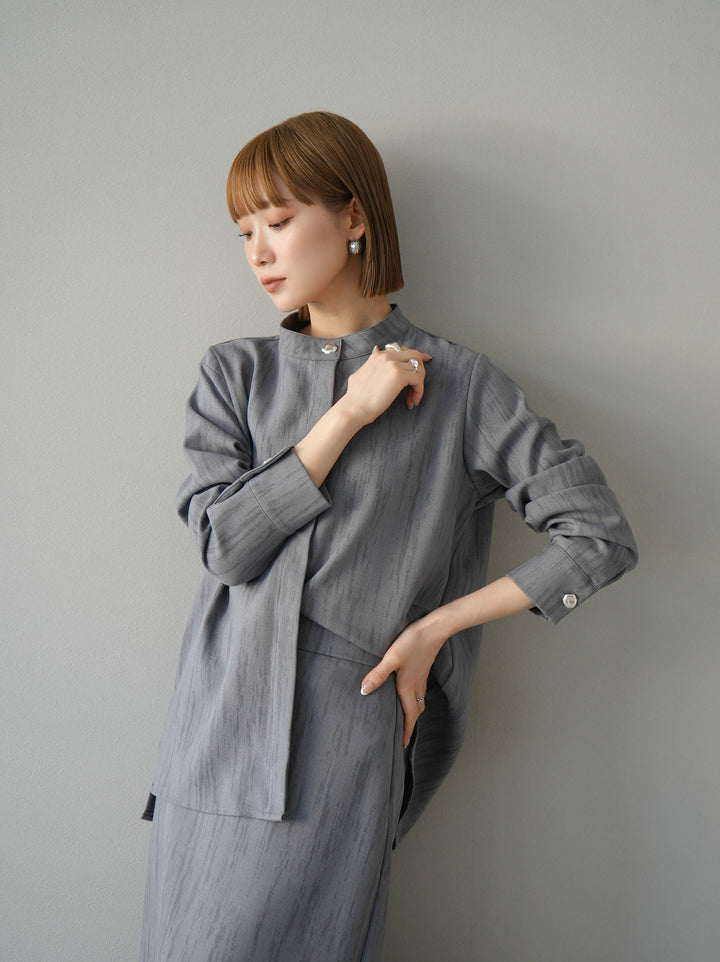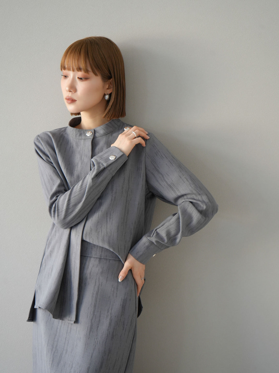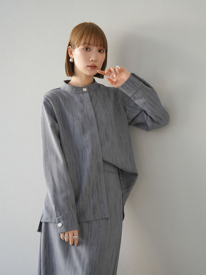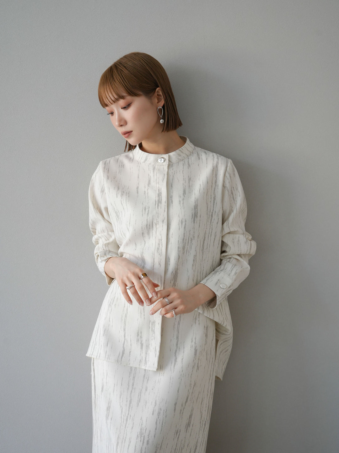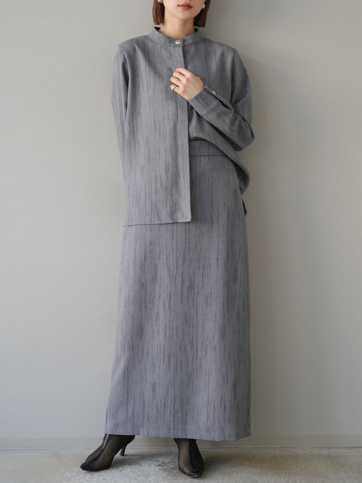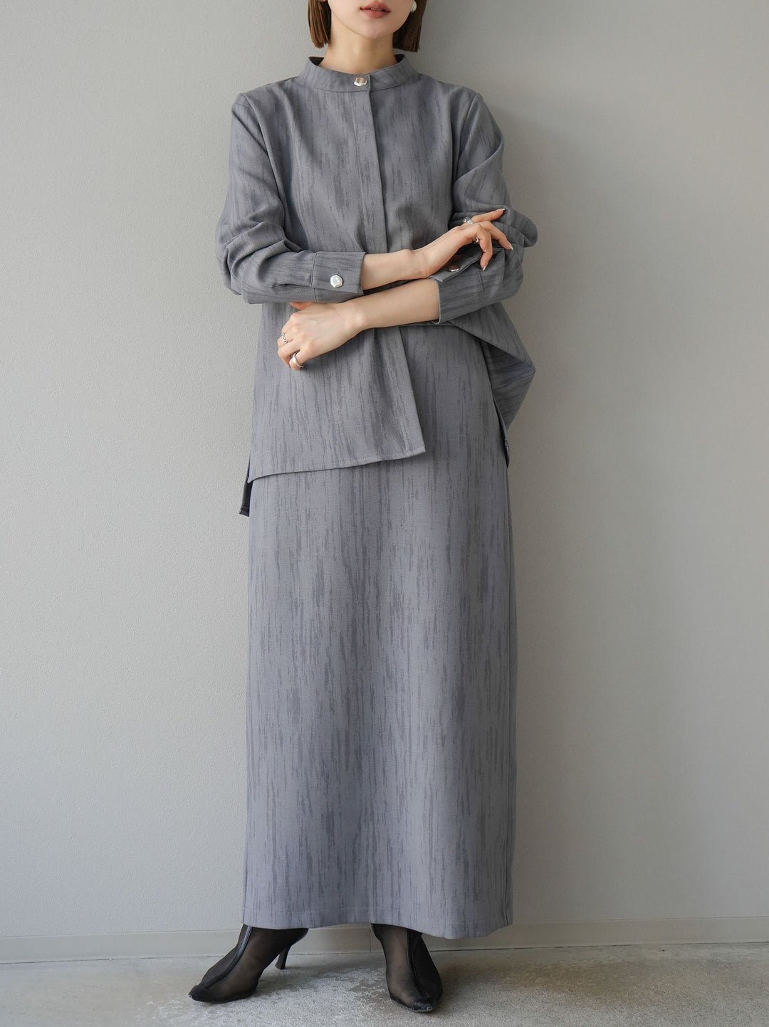 [SET]水彩柄バンドカラーシャツ+水彩柄タイトスカート(2set)