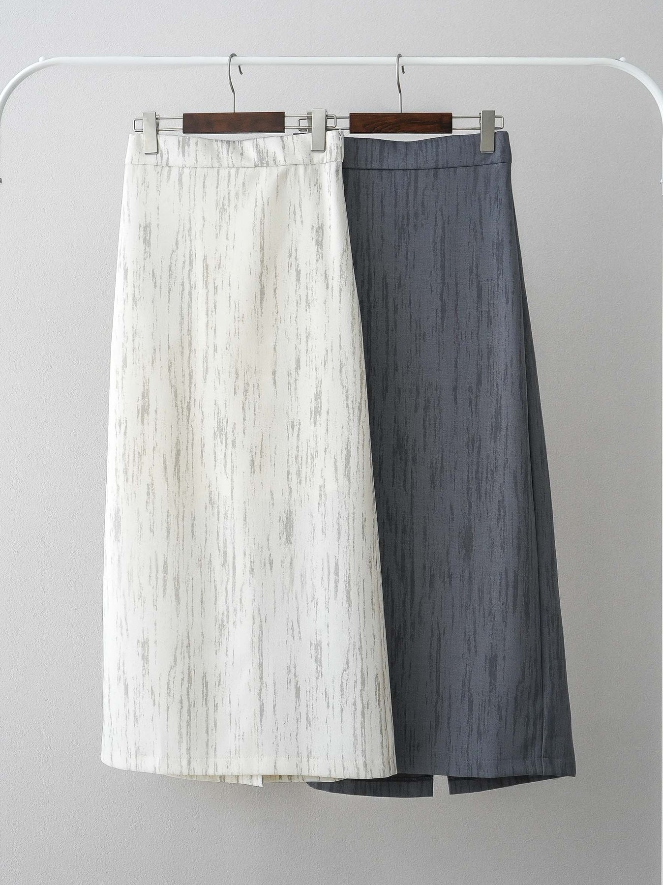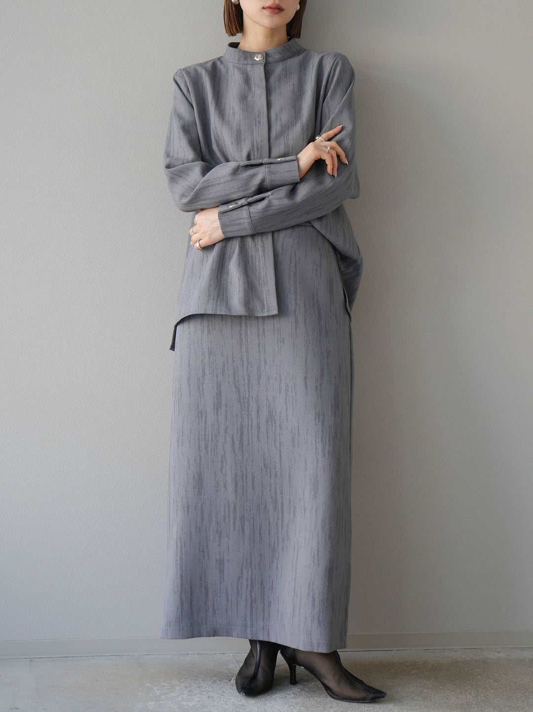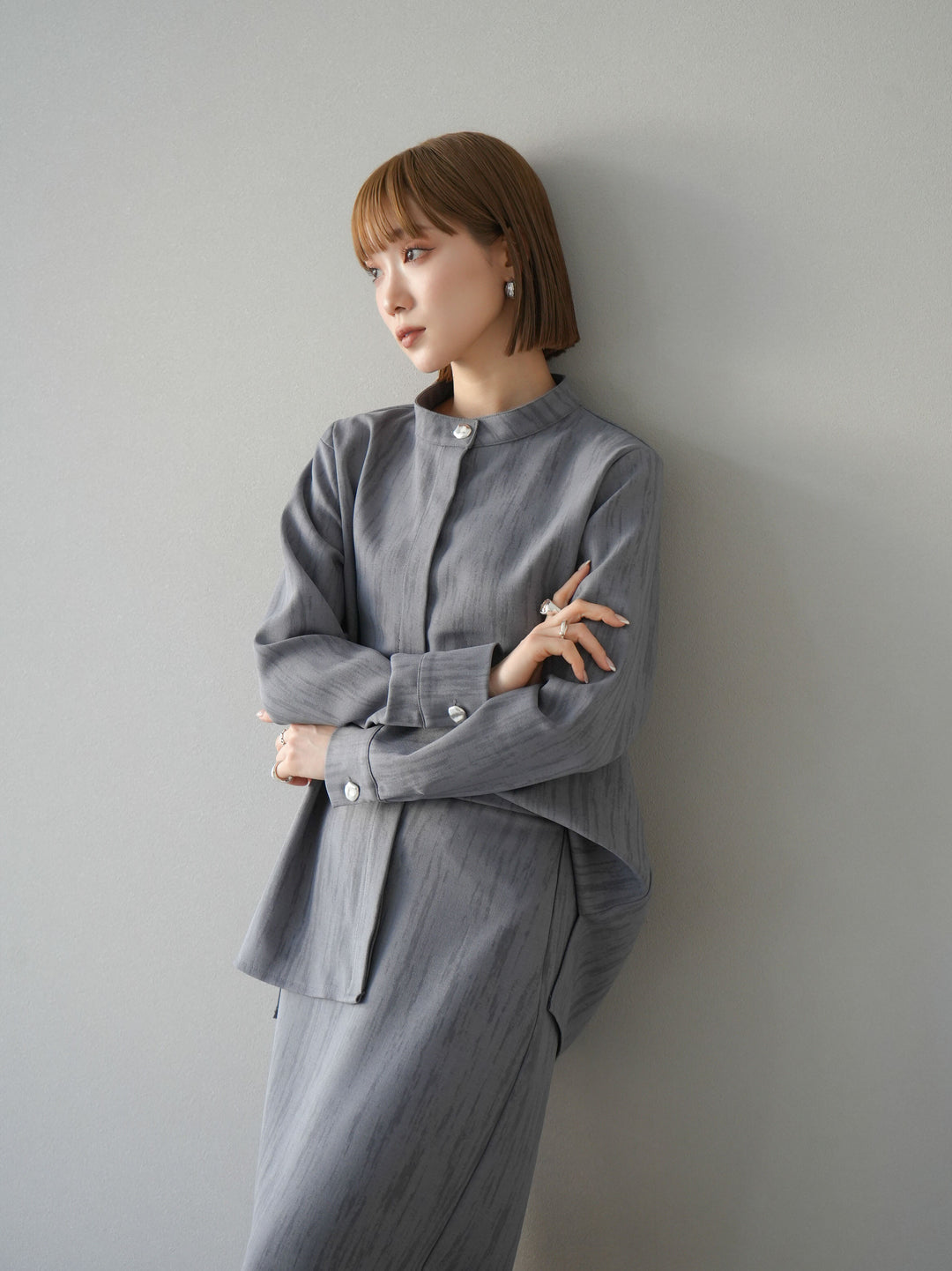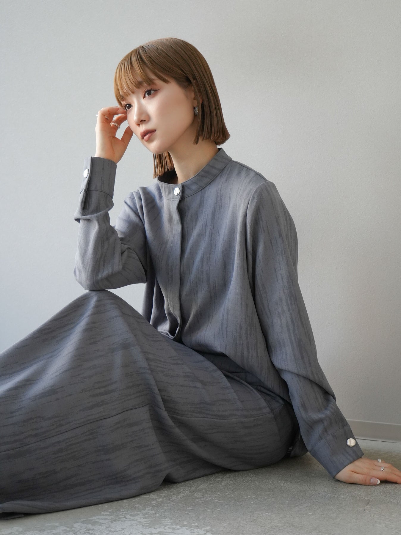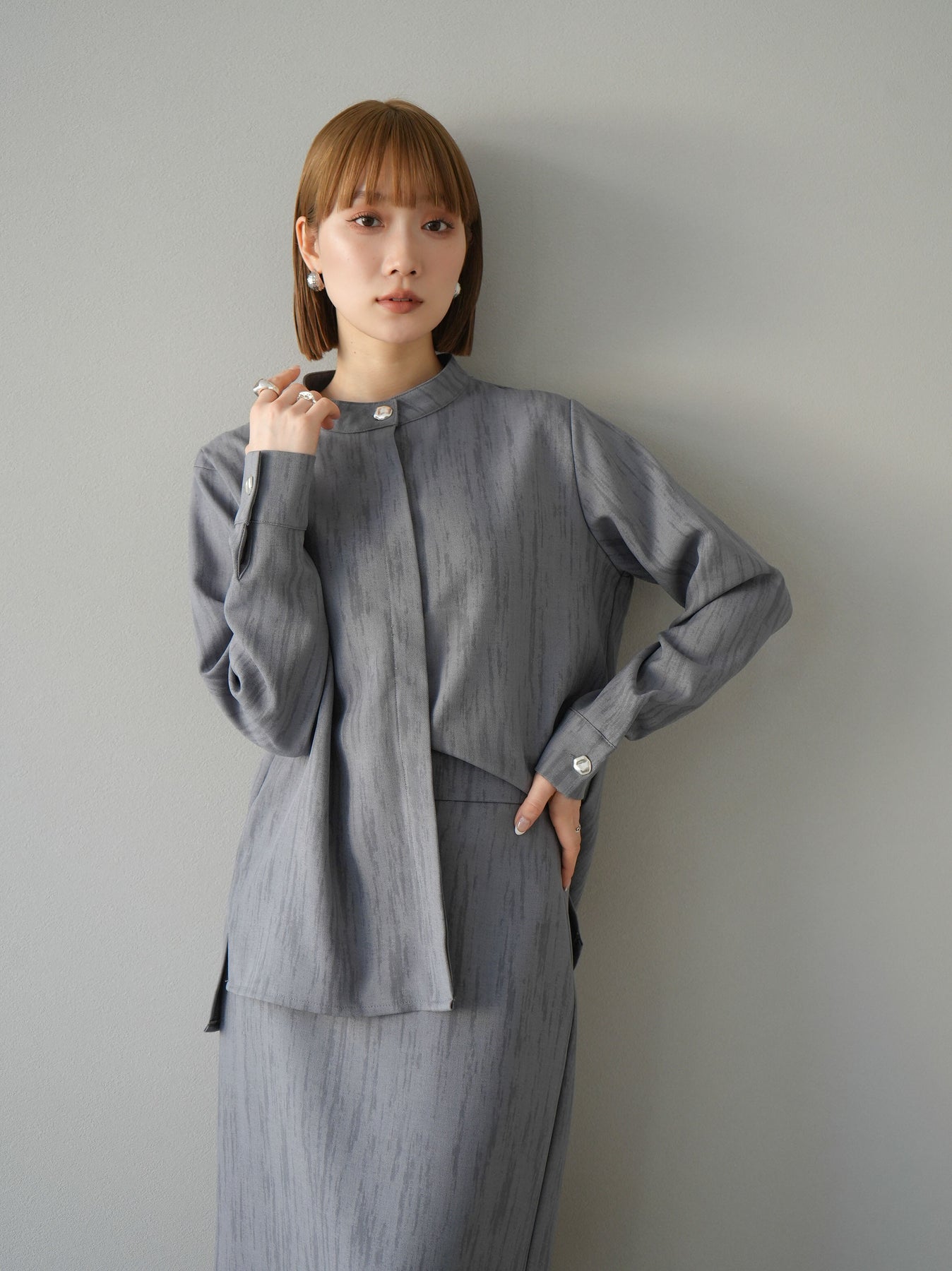 [SET]水彩柄バンドカラーシャツ+水彩柄タイトスカート(2set)