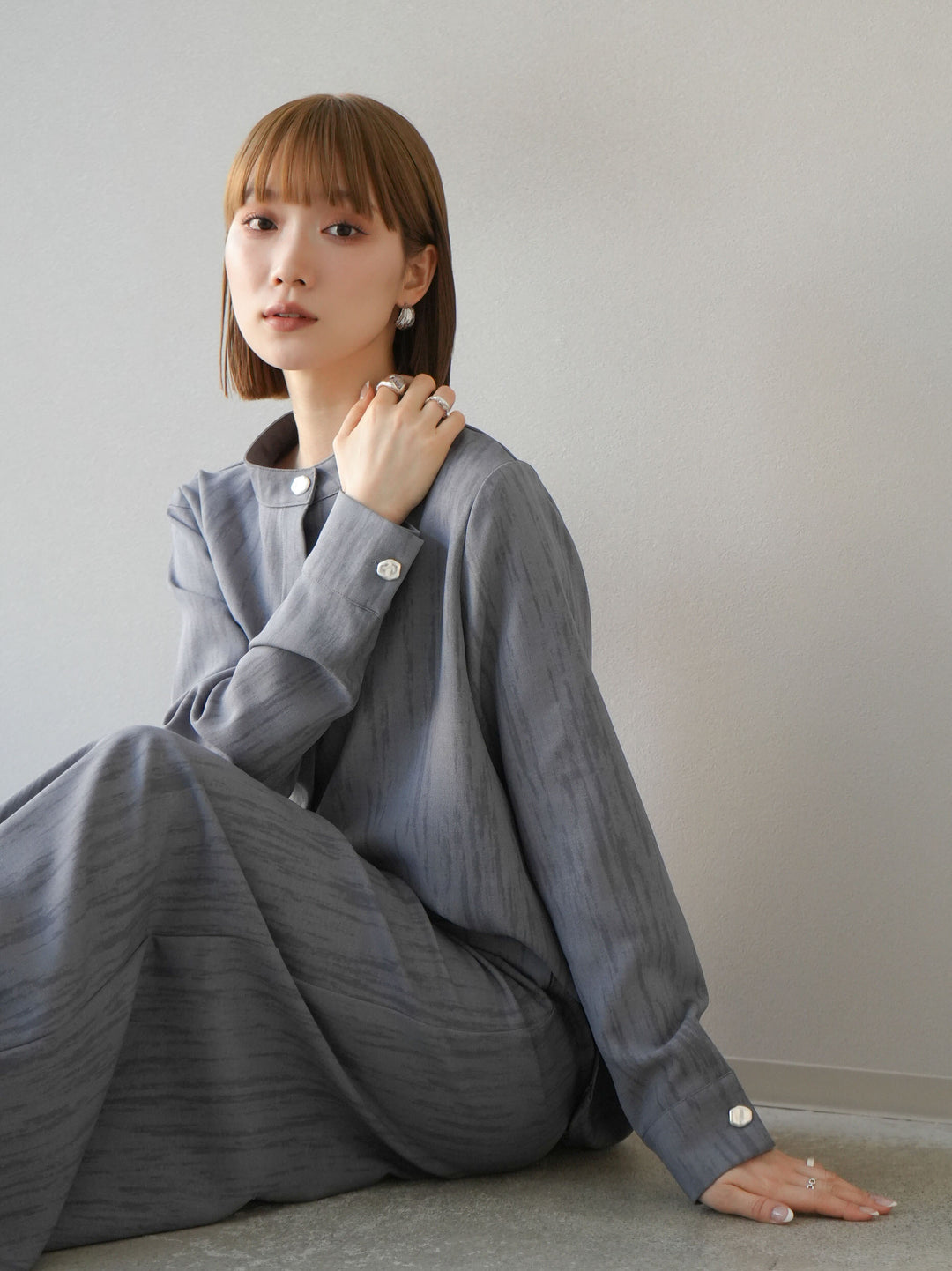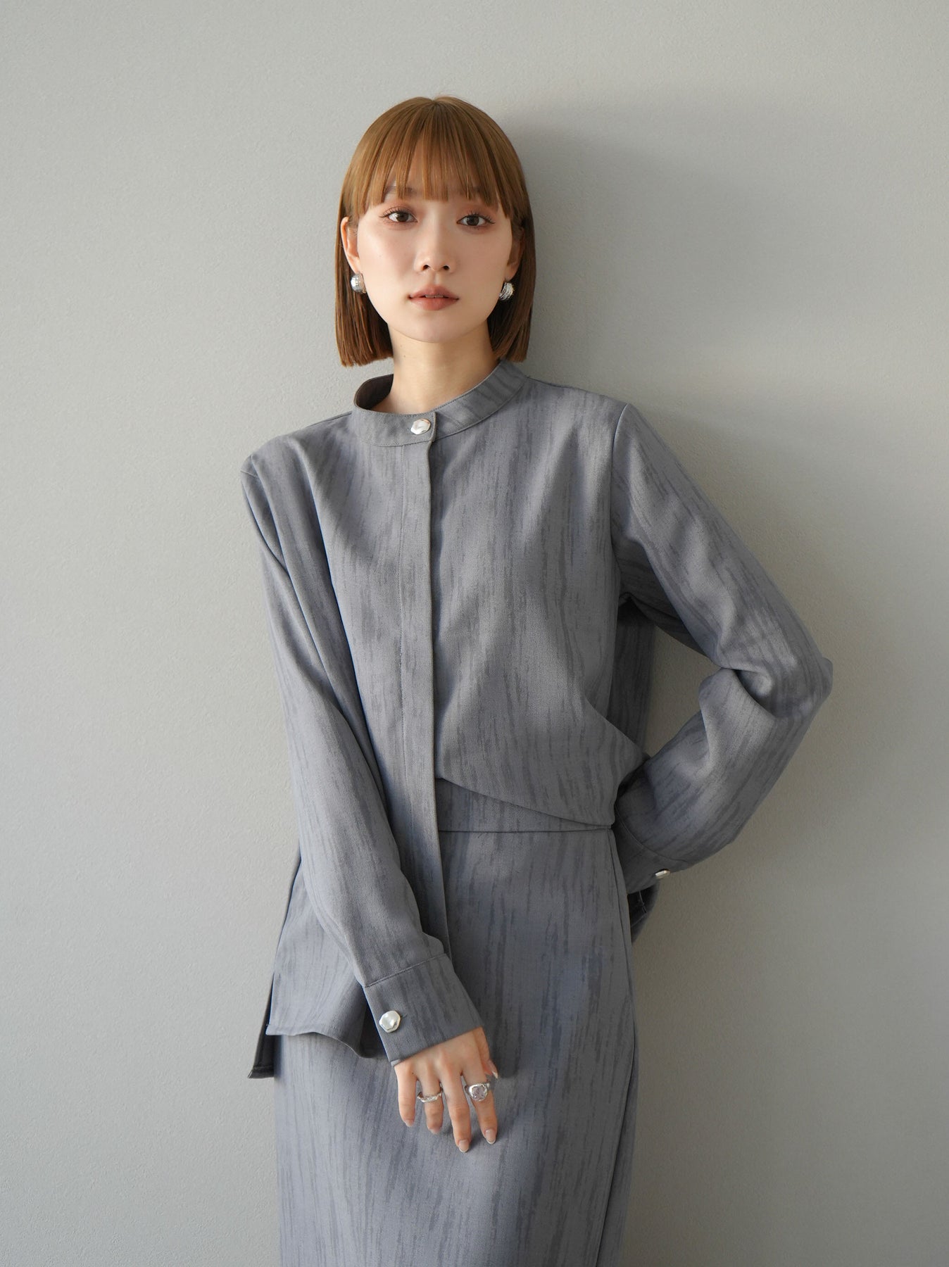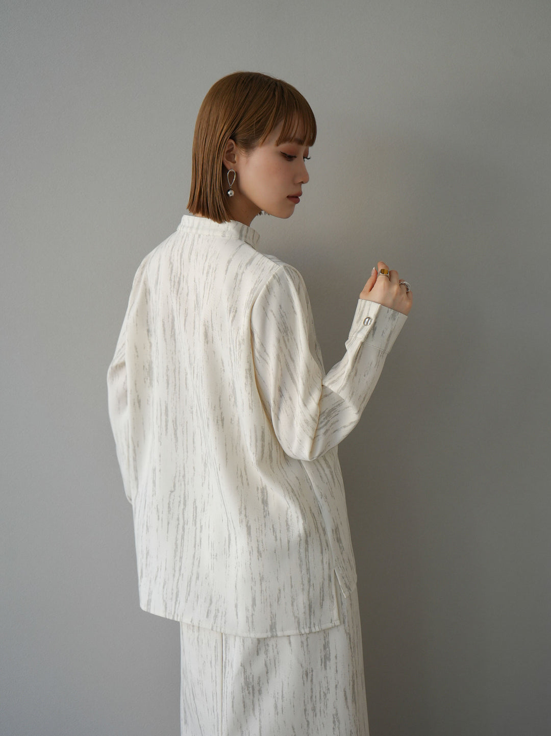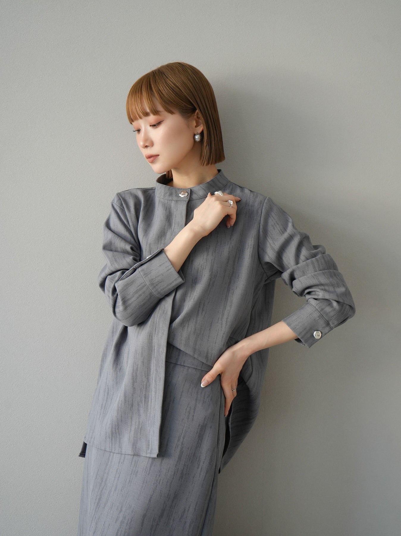 トレンド感漂う水彩柄が魅力のバンドカラーシャツ。柔らかな風合いと落ち感のある素材が、品のあるスタイルを演出。比翼仕立てのフロントデザインでミニマルな印象を与えつつ、パール調のボタンがアクセントに。シンプルながらも存在感のある一枚は、デイリーからオフィススタイルまで幅広く活躍。単品使いはもちろん、セットアップでの着こなしもおすすめ。 ※ボトムス、キャミソール(インナー)以外の商品は一律でインナーは付属していません