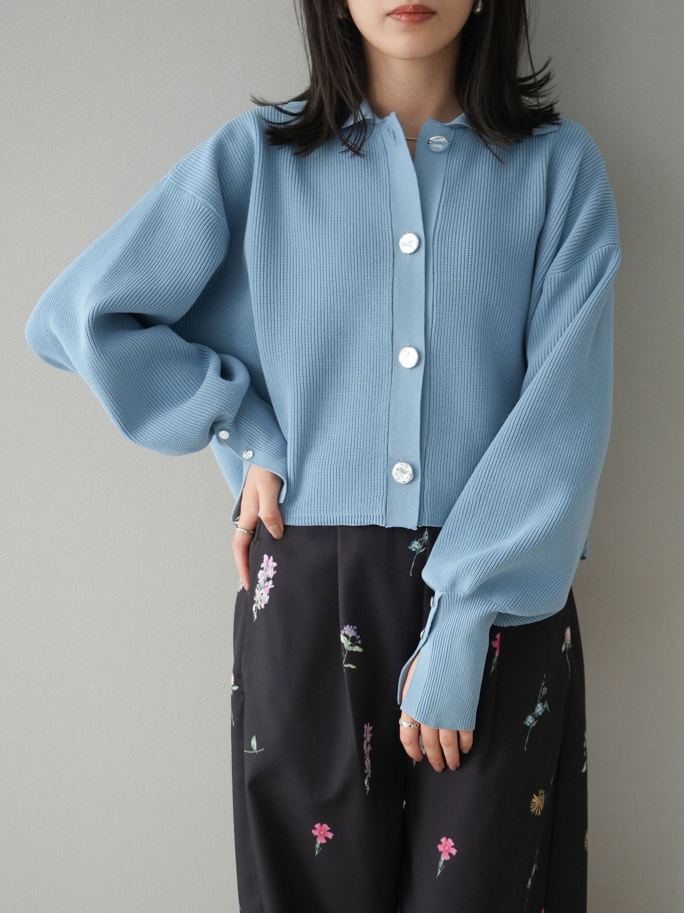[予約]ボリュームスリーブポロニットカーディガン