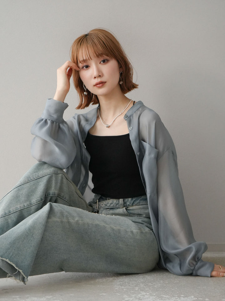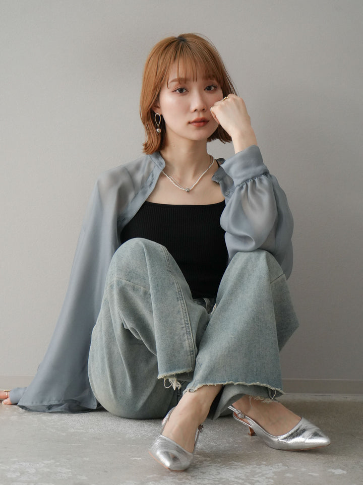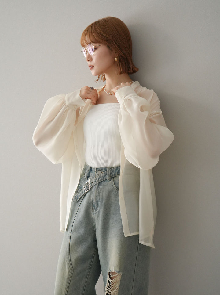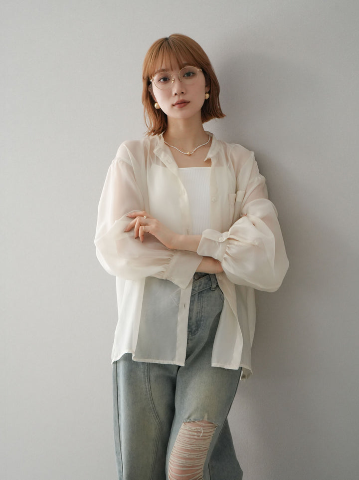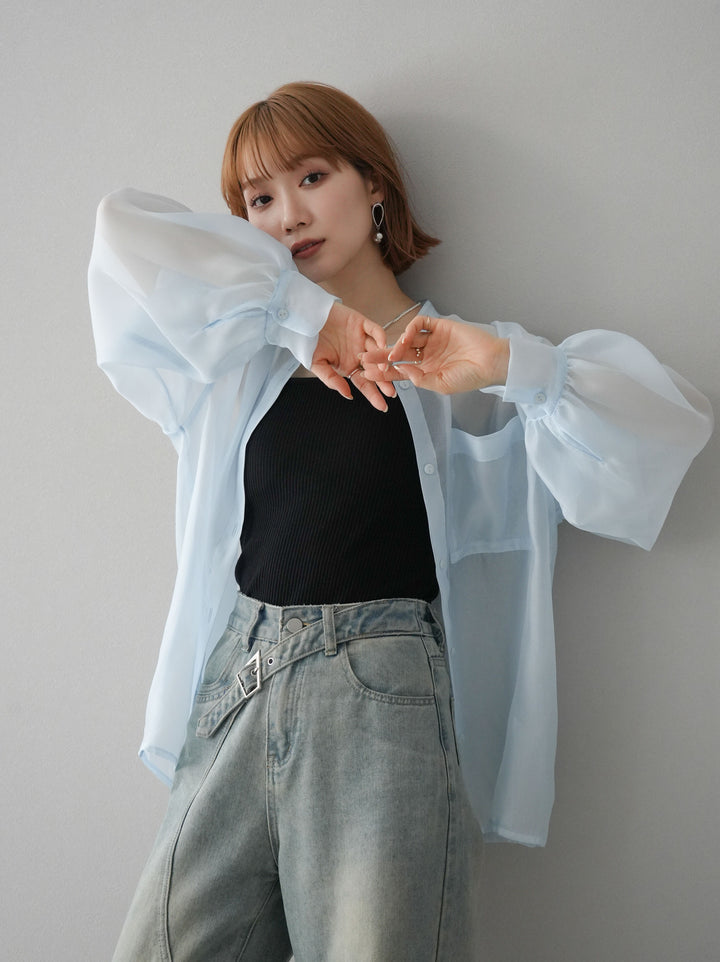 ◆ [予約]シアーシャイニーボリュームスリーブシャツ