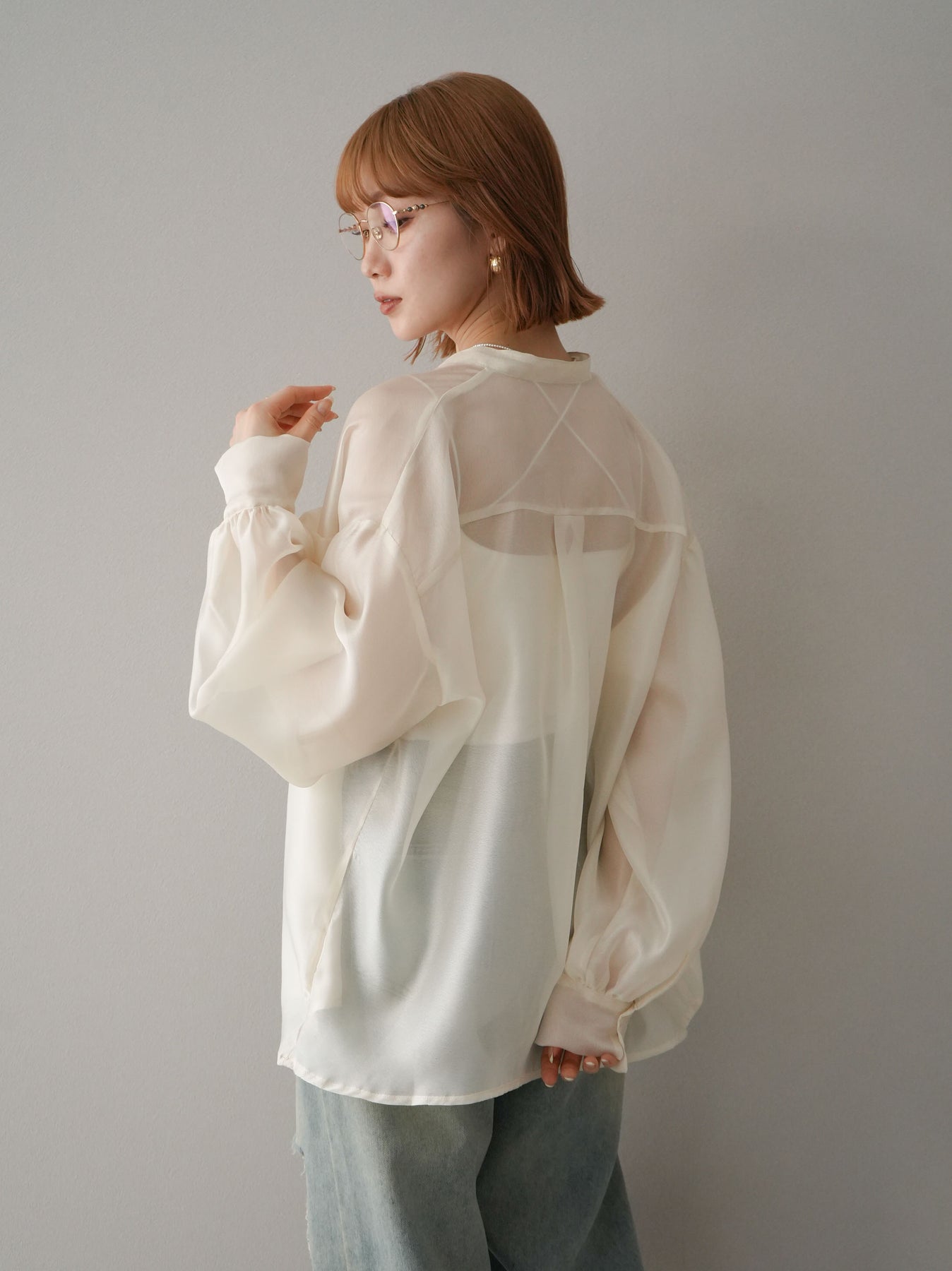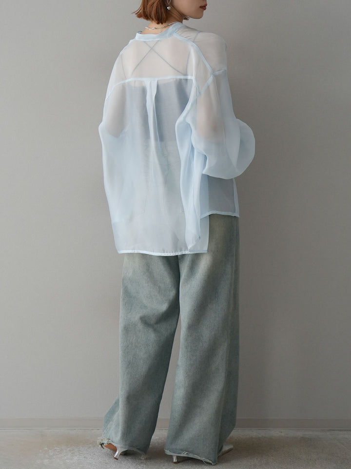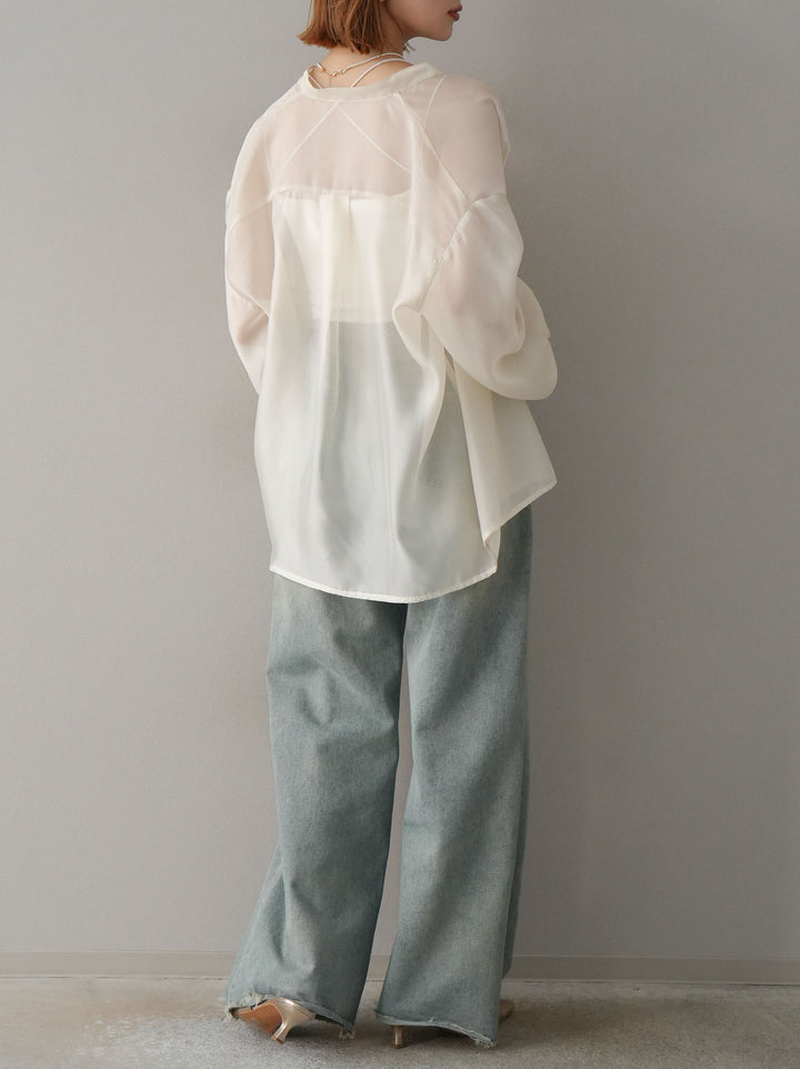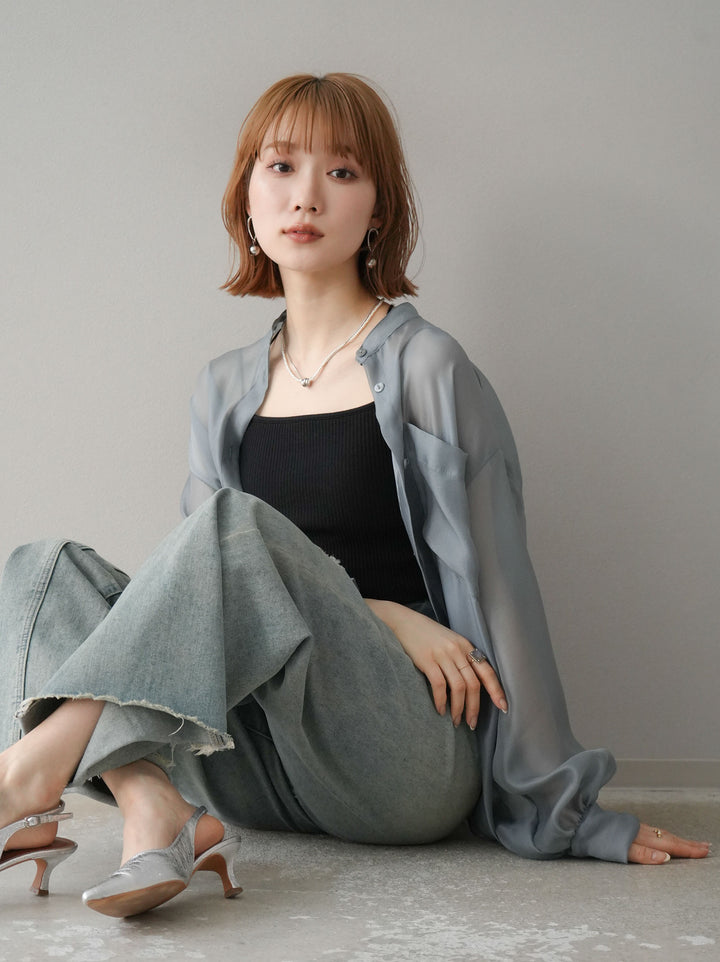 ◆ [予約]シアーシャイニーボリュームスリーブシャツ