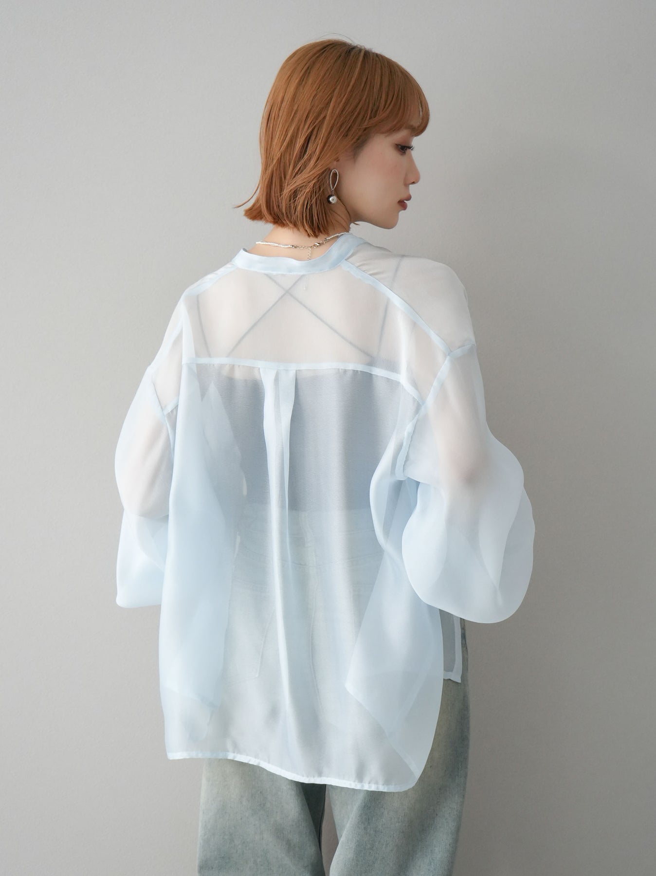 [予約]シアーシャイニーボリュームスリーブシャツ