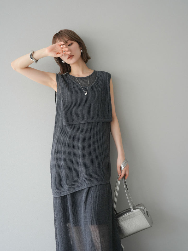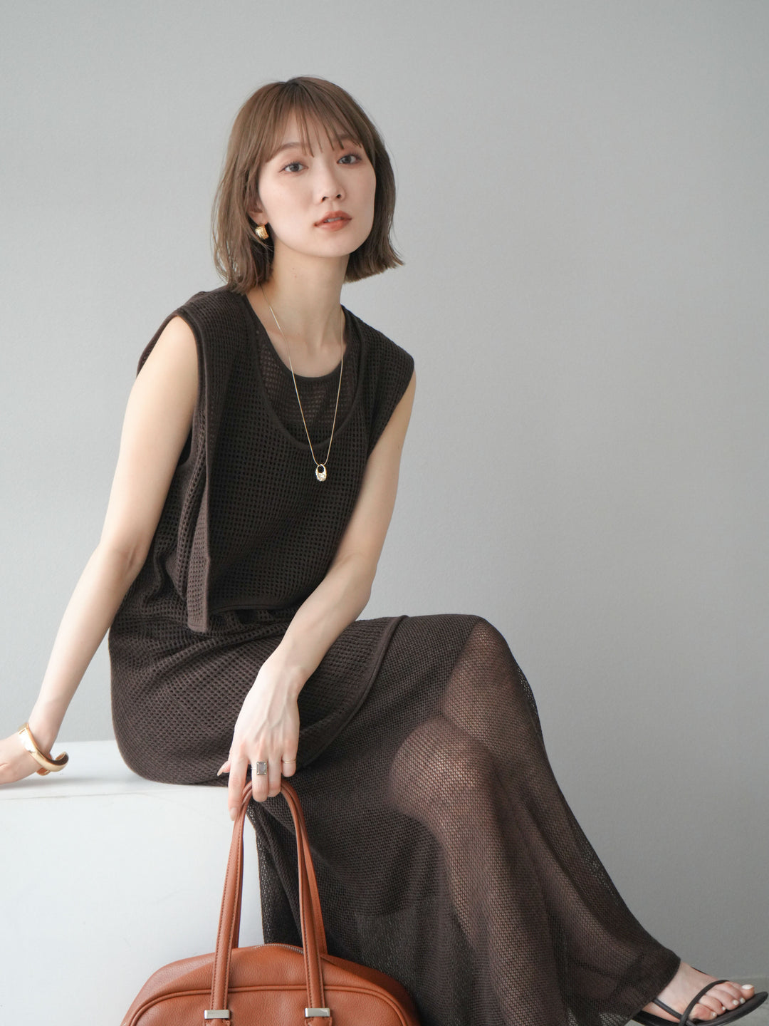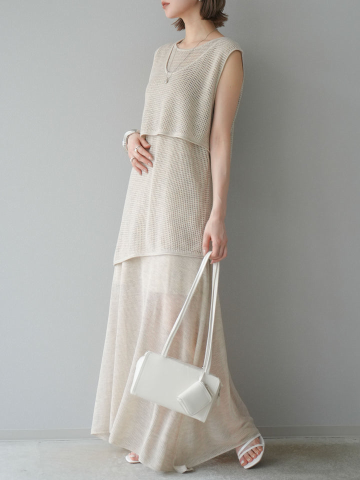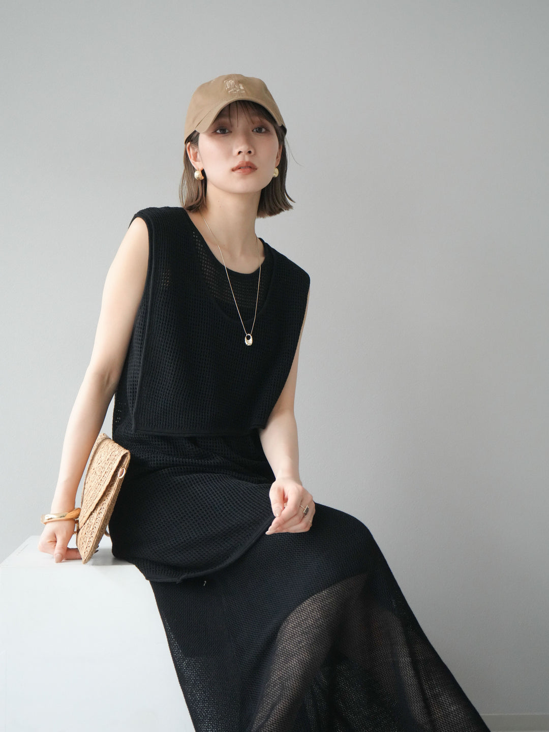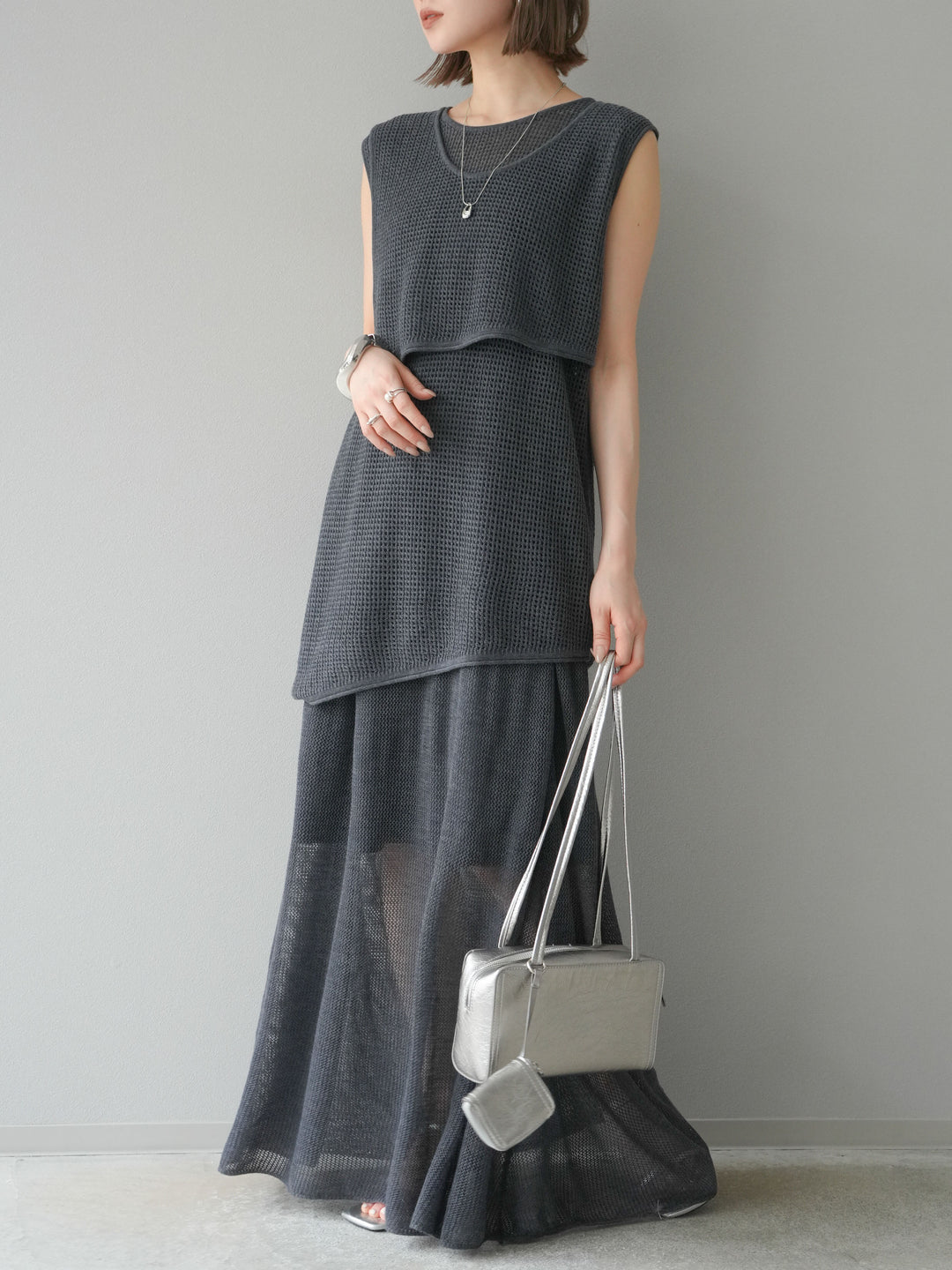 [SET]メッシュレイヤードニットトップス&スカートSET UP +選べるアクセセット(2set)
