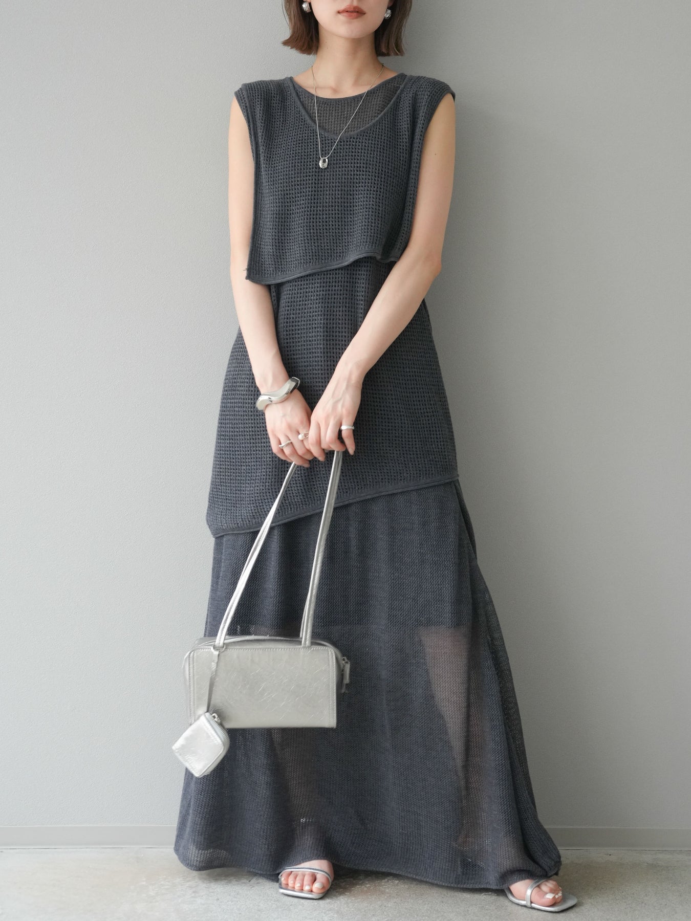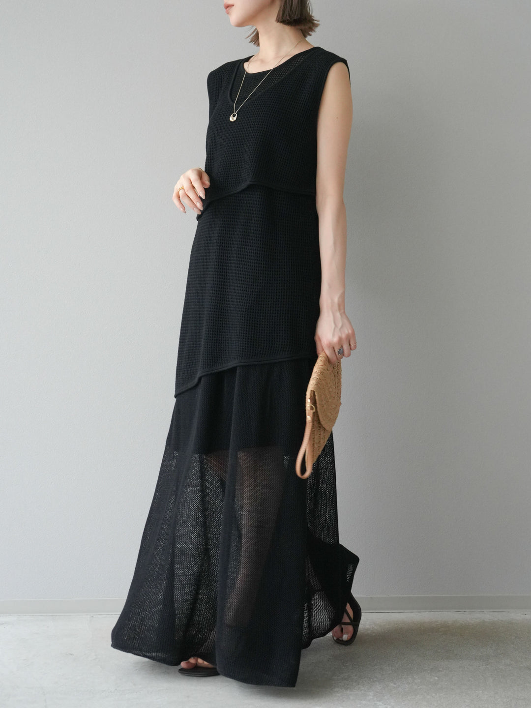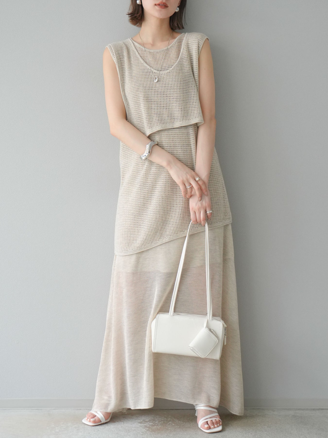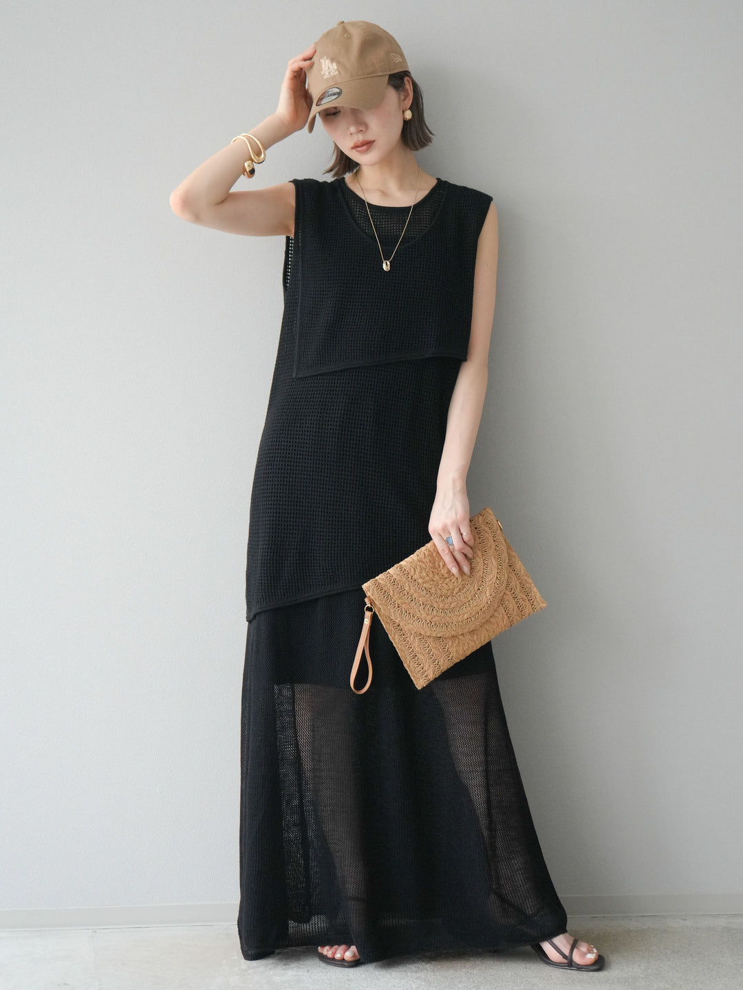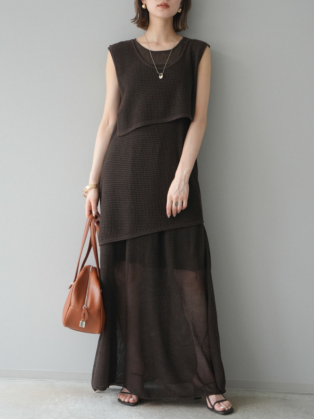 [SET]メッシュレイヤードニットトップス&スカートSET UP +選べるアクセセット(2set)