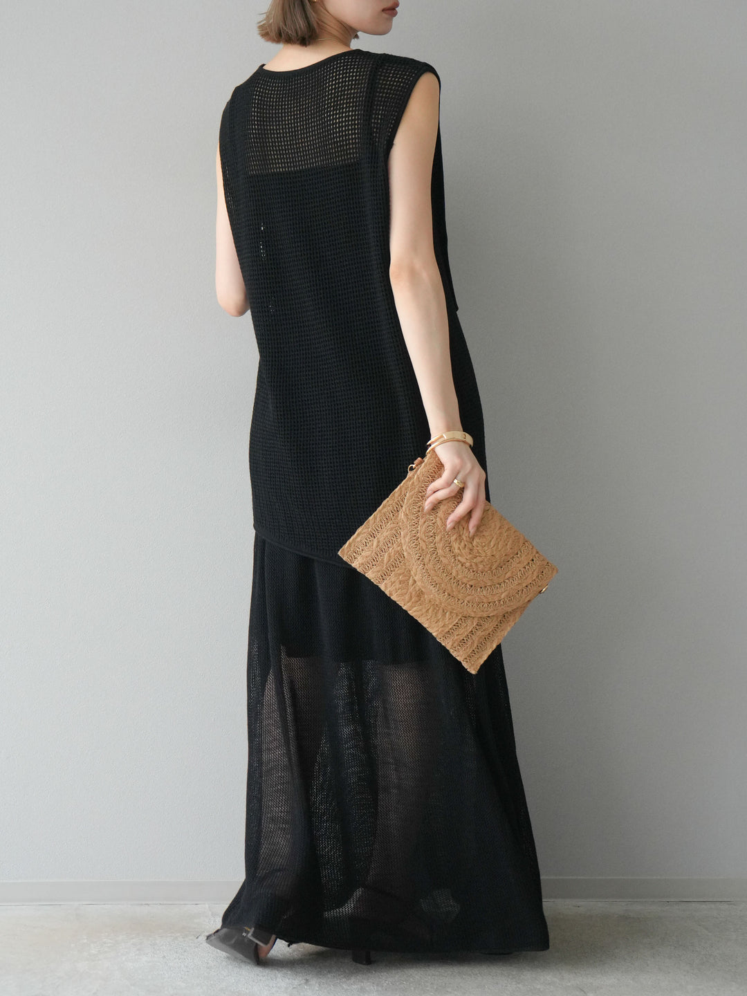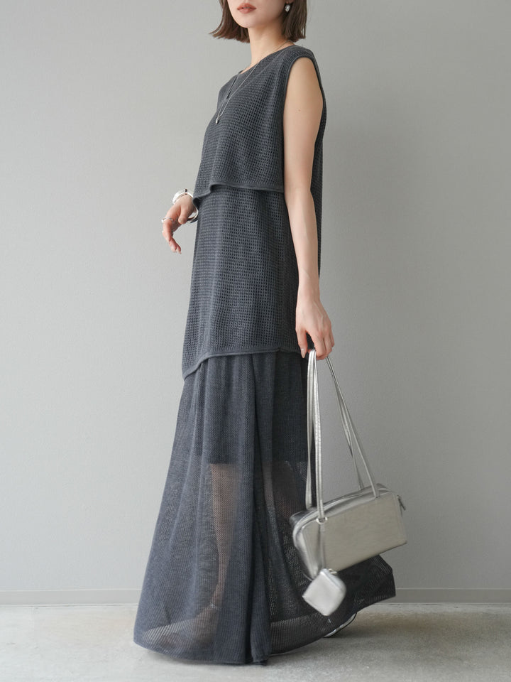 ◆ [予約]メッシュレイヤードニットトップス&スカートSET UP