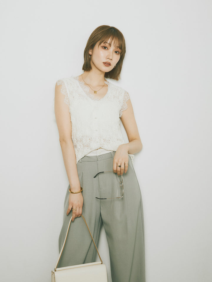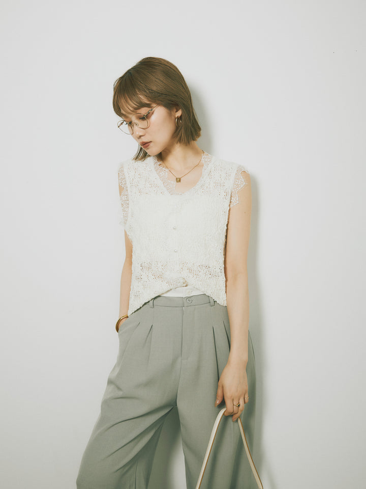 ◆ [予約]レース切替テープヤーンノースリーブトップス