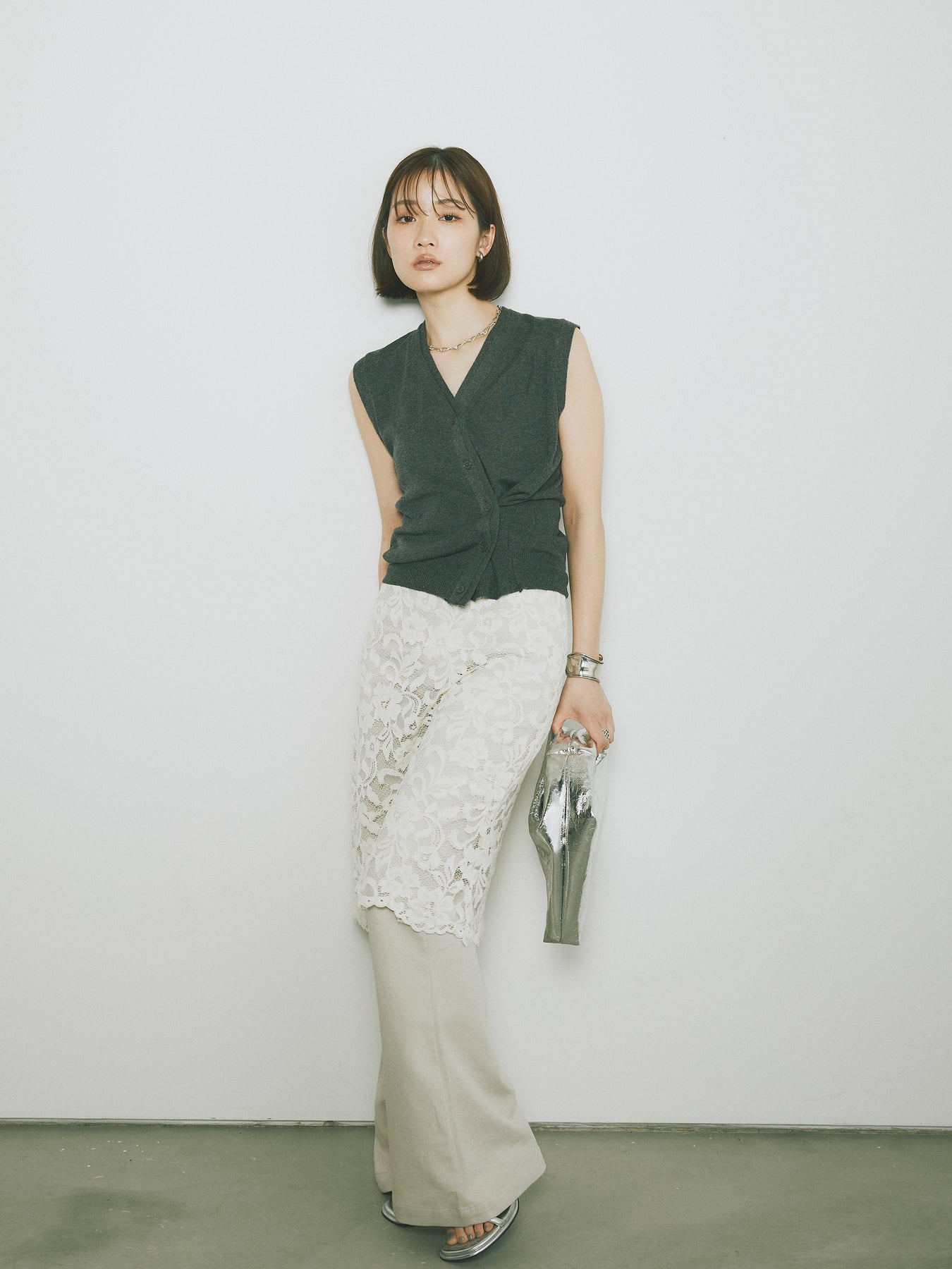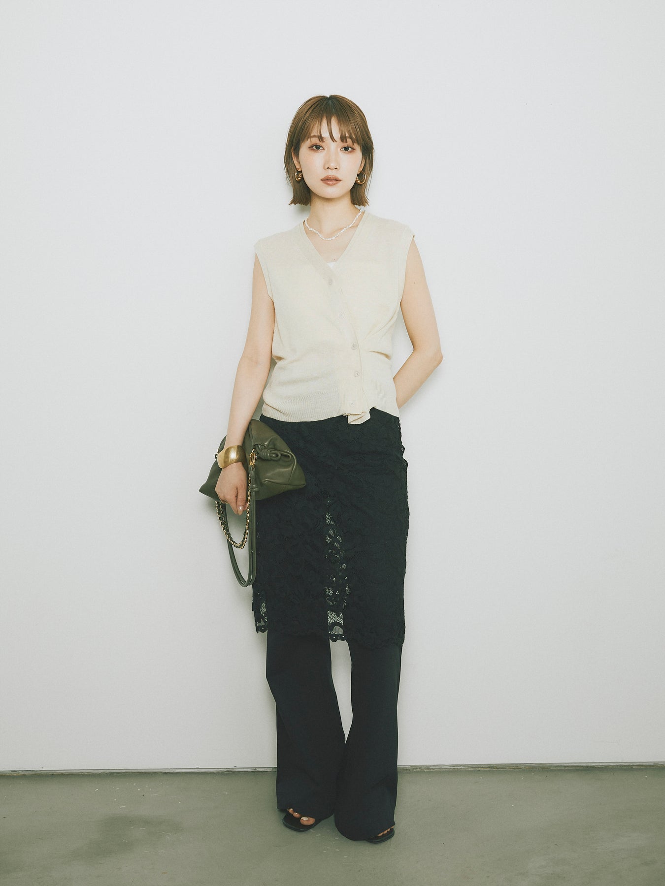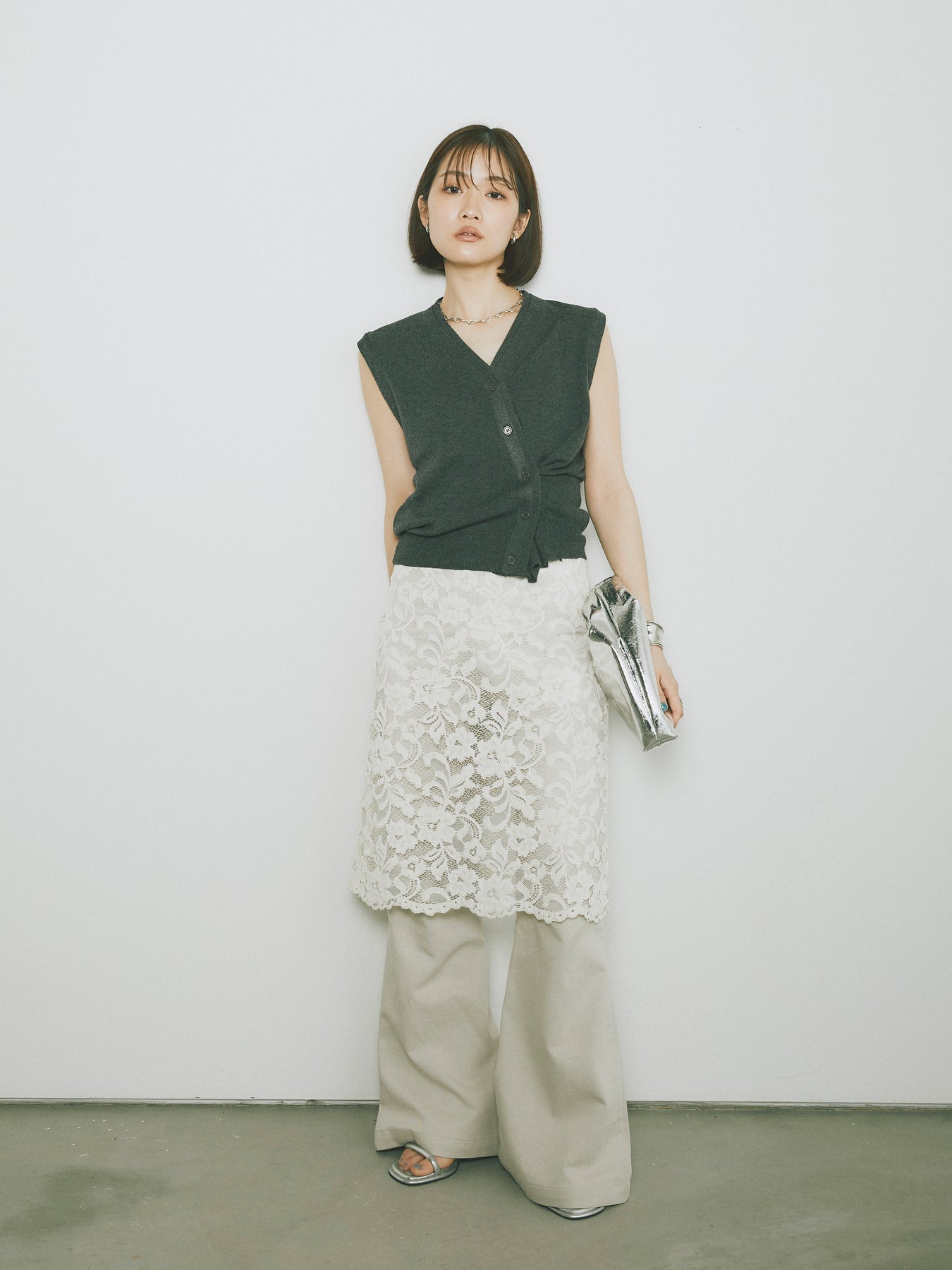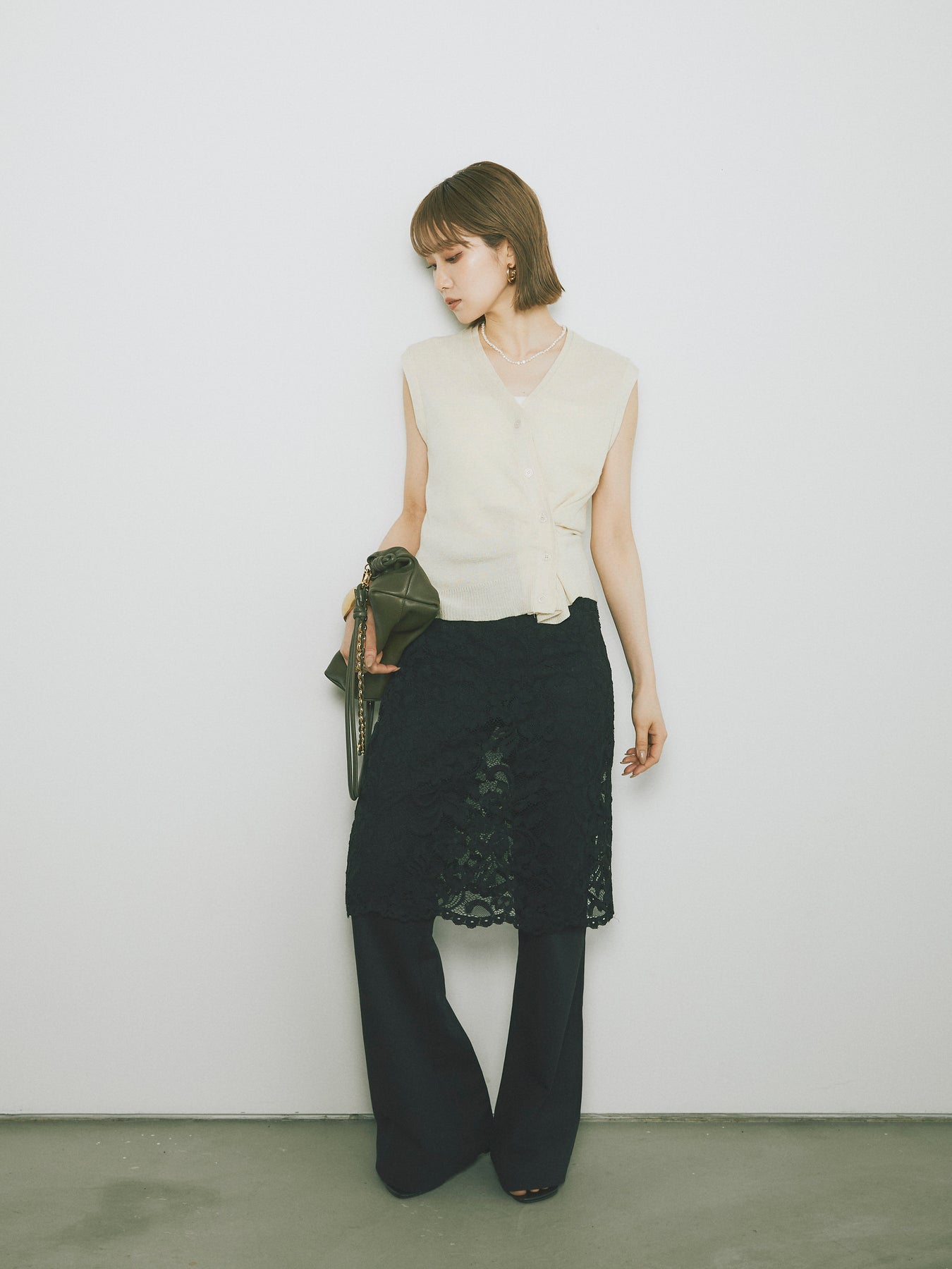 繊細なレーススカートをレイヤードした、トレンド感満載のフレアパンツ。異素材の組み合わせがスタイリングに奥行きを与え、こなれた雰囲気を演出します。スカート部分は取り外し可能で、シンプルなパンツスタイルとしても着用可能。コーデの幅を広げる、モードなムード漂う主役級アイテムです。 ※ボトムス、キャミソール(インナー)以外の商品は一律でインナーは付属していません