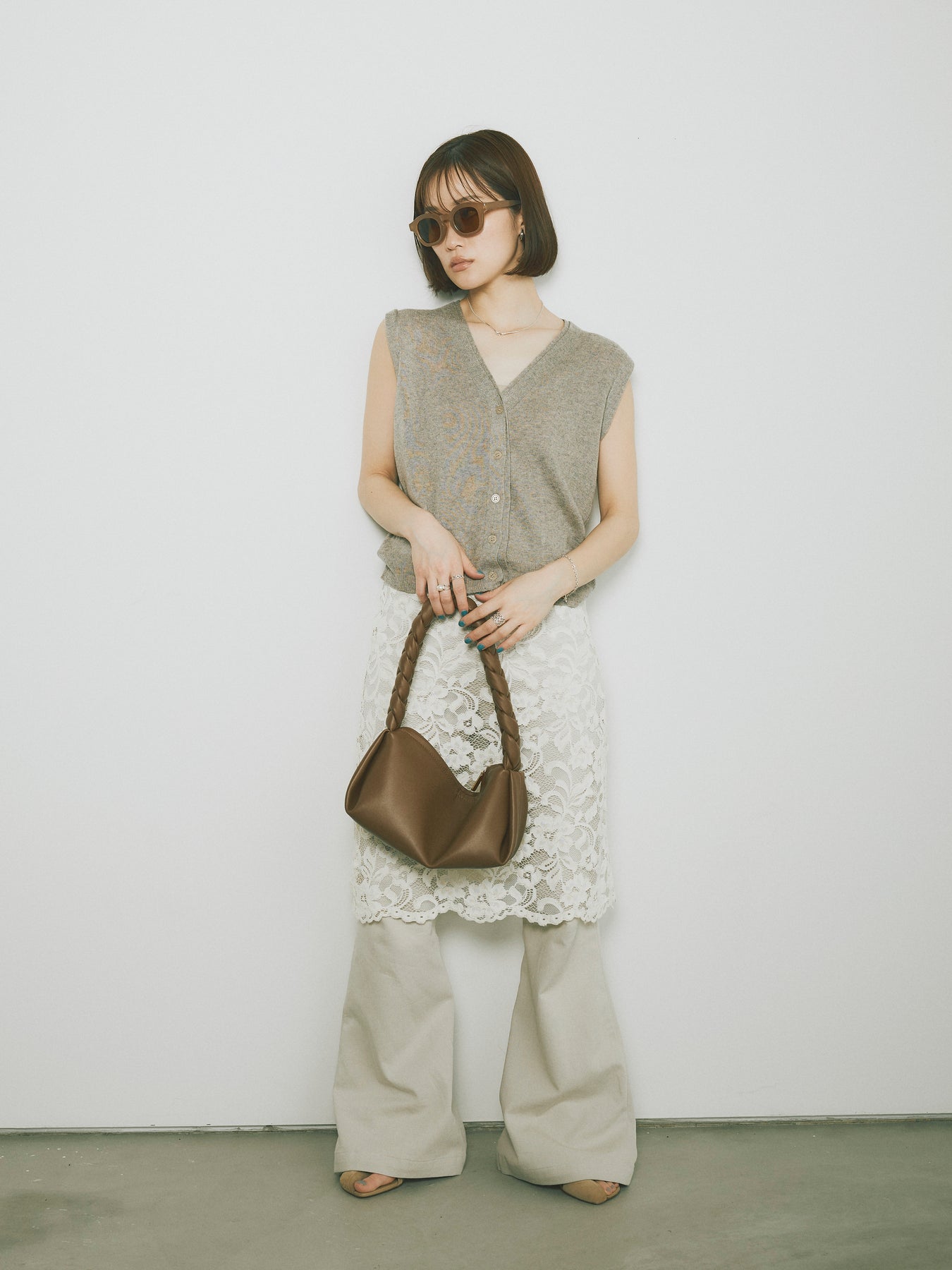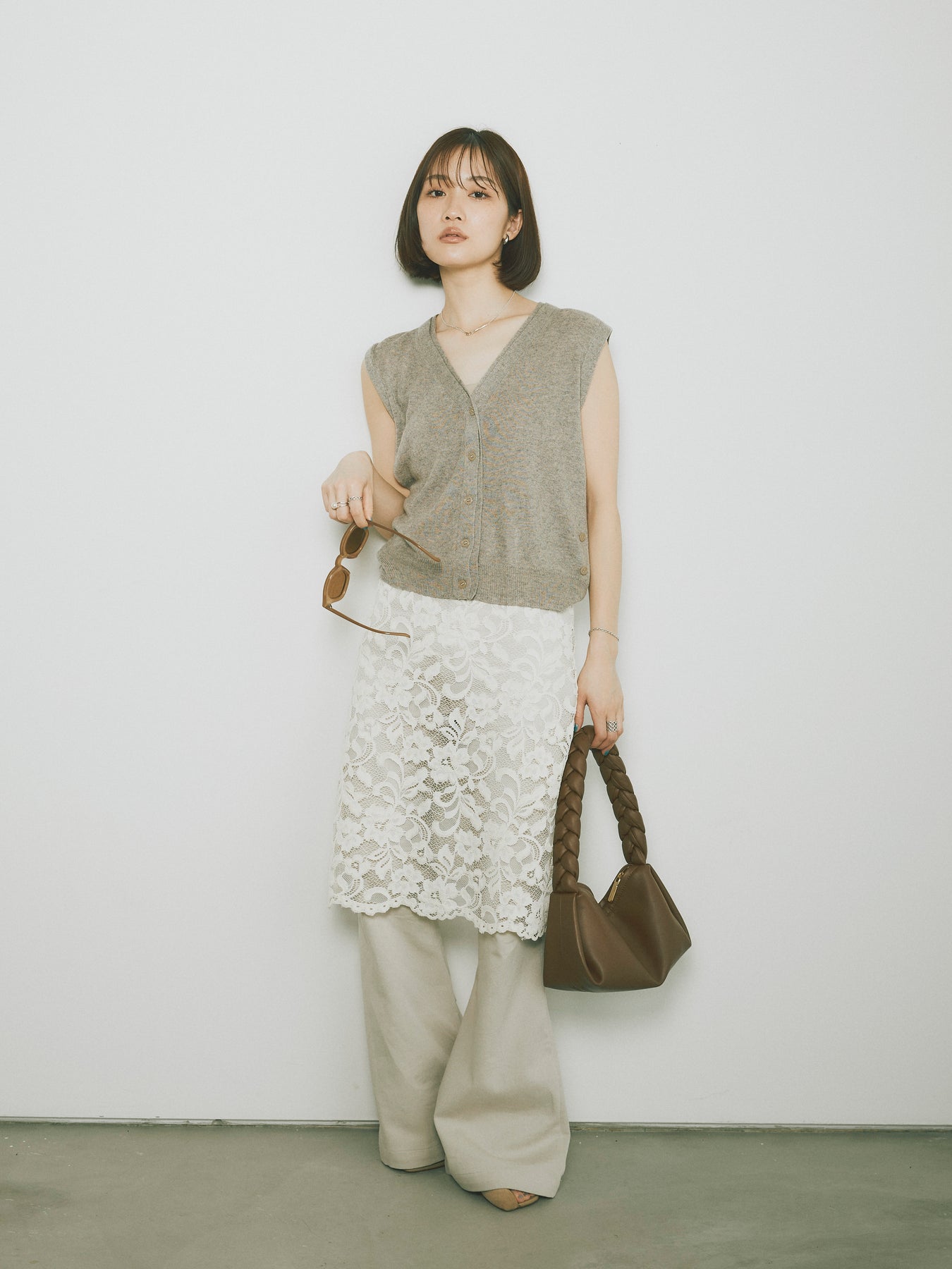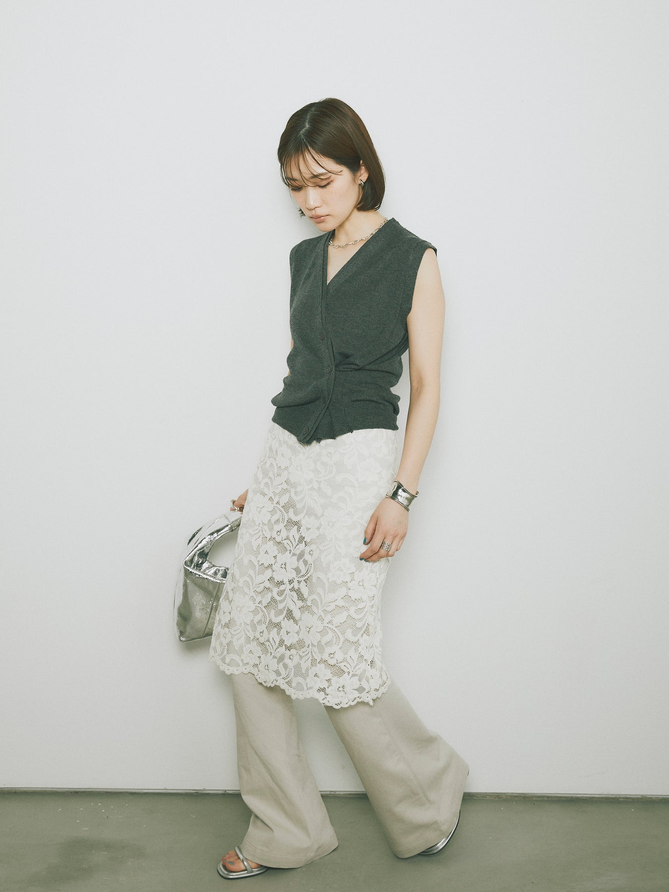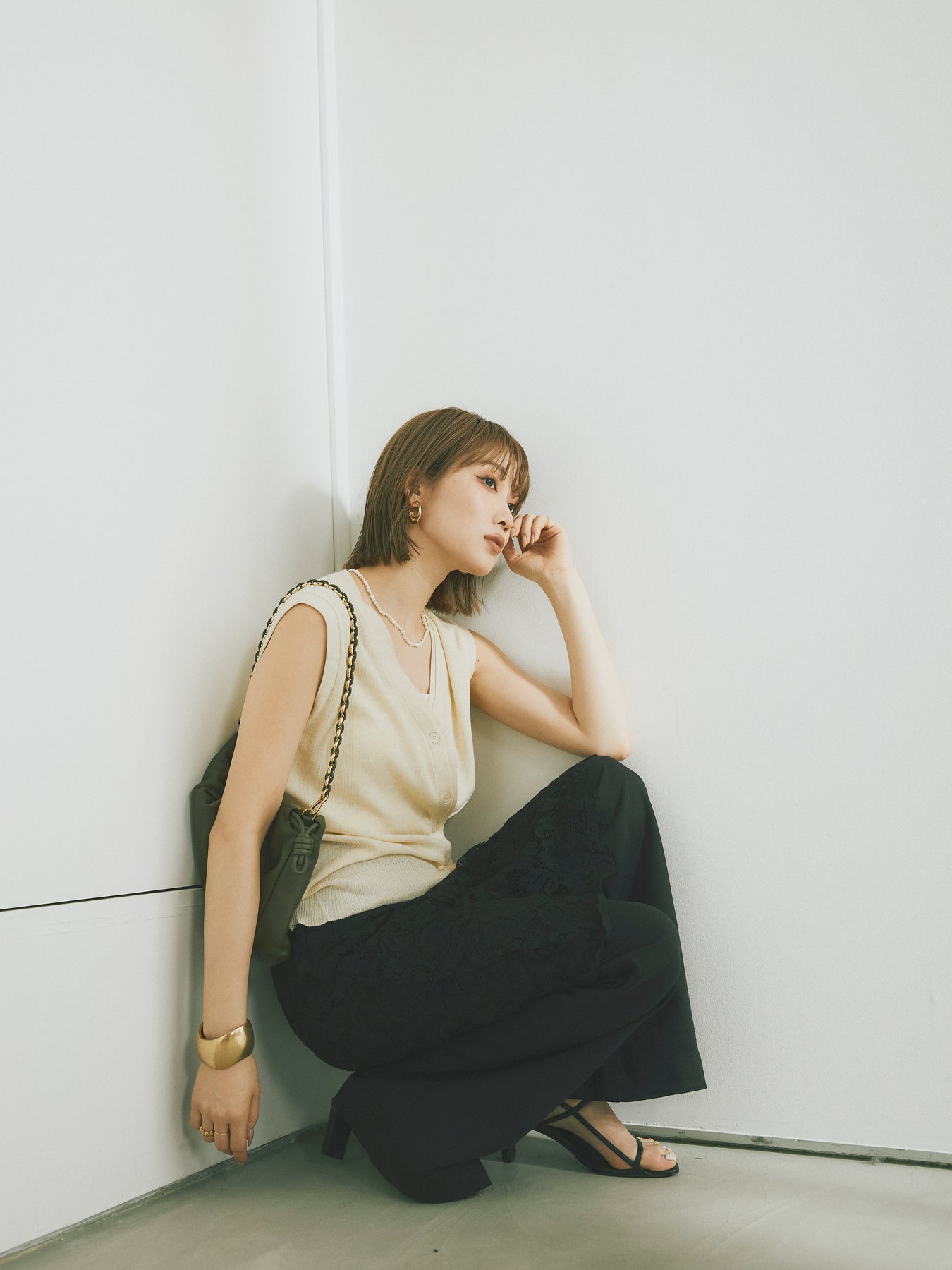 繊細なレーススカートをレイヤードした、トレンド感満載のフレアパンツ。異素材の組み合わせがスタイリングに奥行きを与え、こなれた雰囲気を演出します。スカート部分は取り外し可能で、シンプルなパンツスタイルとしても着用可能。コーデの幅を広げる、モードなムード漂う主役級アイテムです。 ※ボトムス、キャミソール(インナー)以外の商品は一律でインナーは付属していません