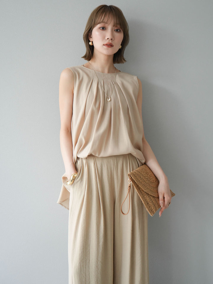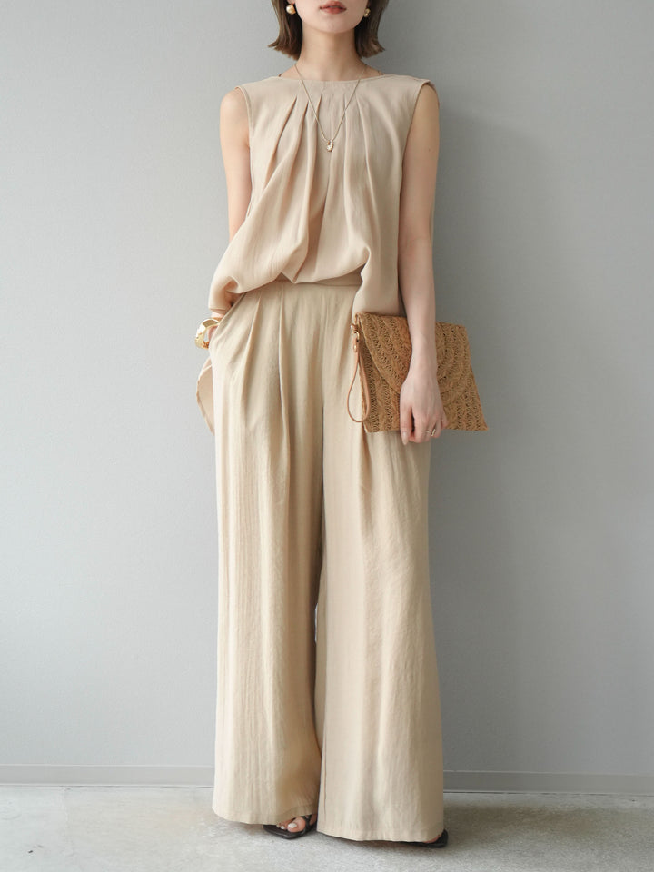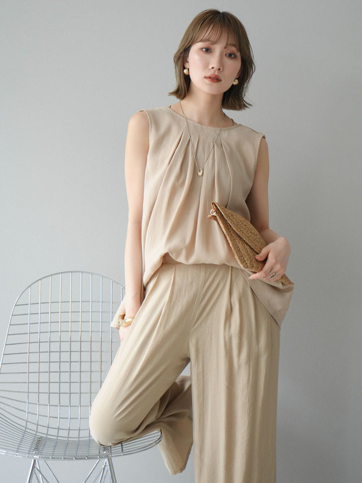 [予約]シボ加工バックツイストブラウス+[予約]シボ加工イージーワイドパンツ