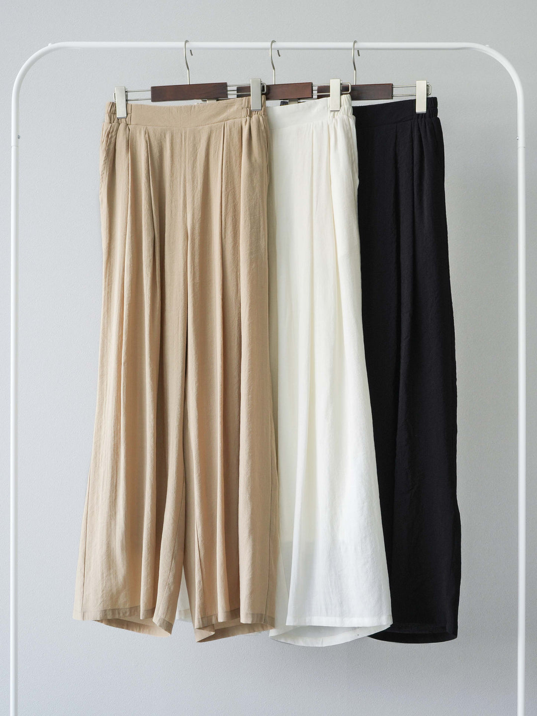 ナチュラルな表情をプラスするシボ加工素材のワイドパンツ。落ち感のあるシルエットとウエストゴムのイージー仕様で、快適な着心地を実現。シンプルながらも素材感で差をつけられる一着は、トレンドスタイルに欠かせないアイテム。カジュアルにもきれいめにもマッチし、デイリーに活躍します。 ※ボトムス、キャミソール(インナー)以外の商品は一律でインナーは付属していません