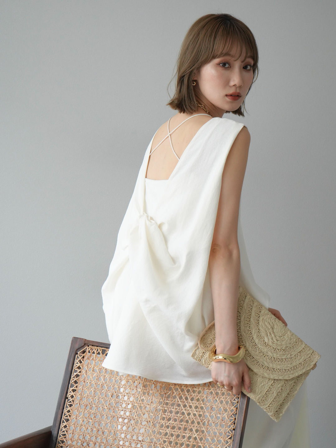 華奢なダブルストラップが女性らしいカップ付きキャミソール。さらっと肌触りの良い、カットリブ素材を使用した着心地の良い1着です。バックはクロスになったコンシャスなデザインで、シアートップスや透け感のあるニットとのレイヤードにもピッタリ。長すぎないレングスで使いやすい、春からのおしゃれに欠かせないアイテムです。