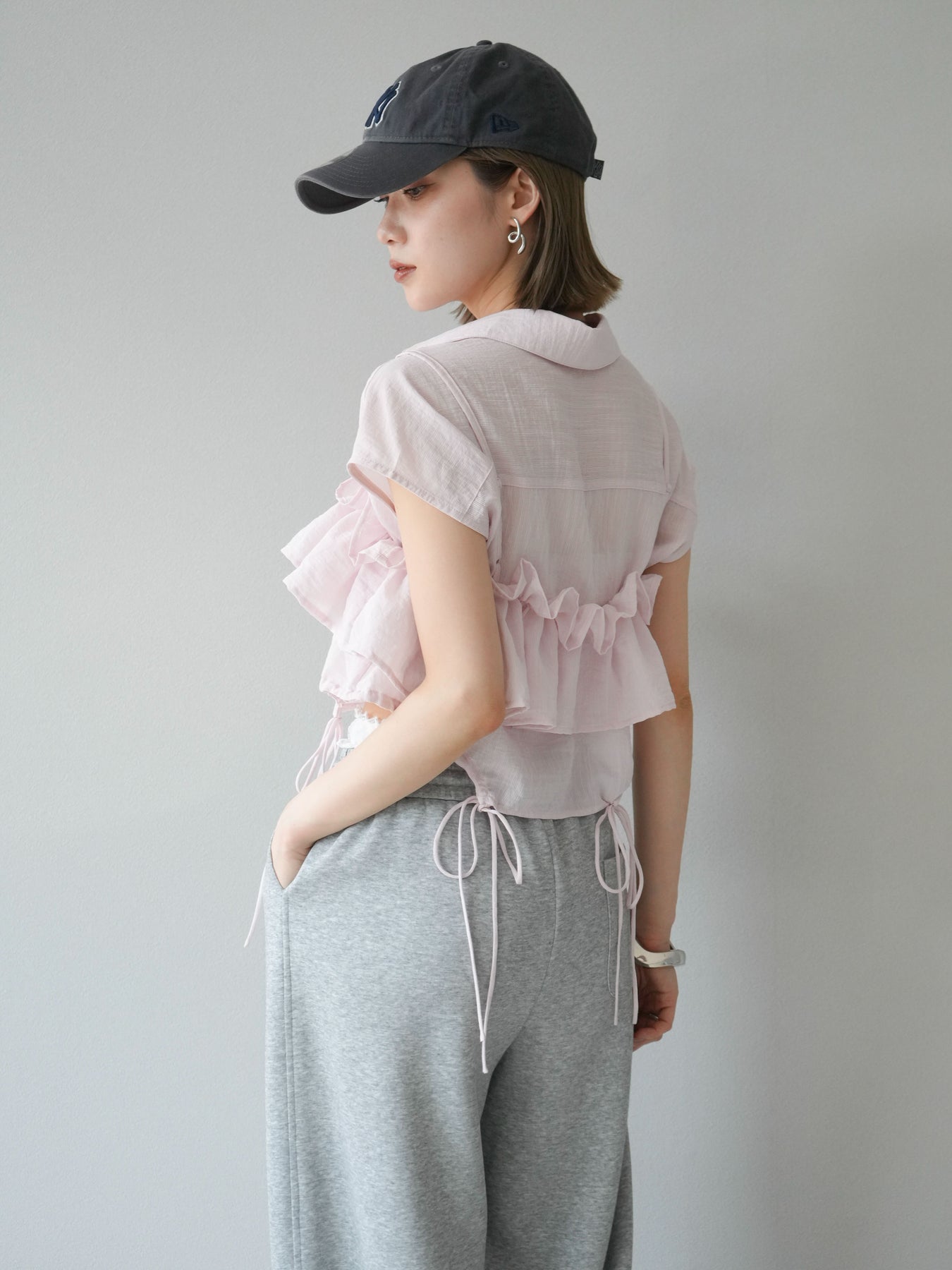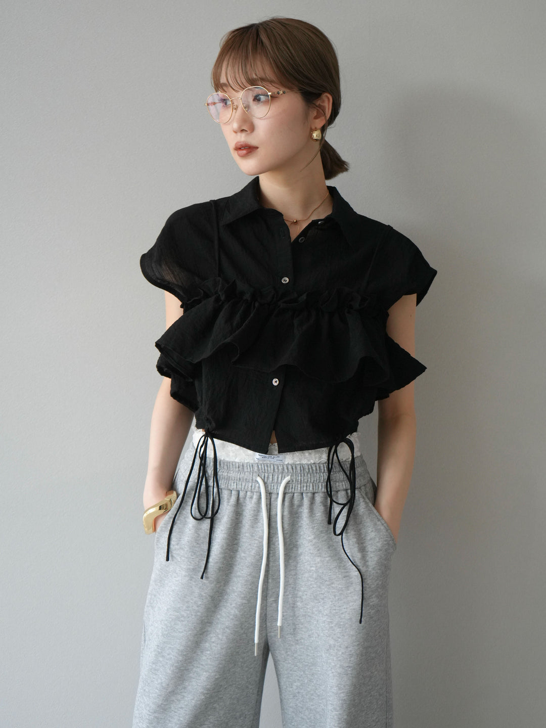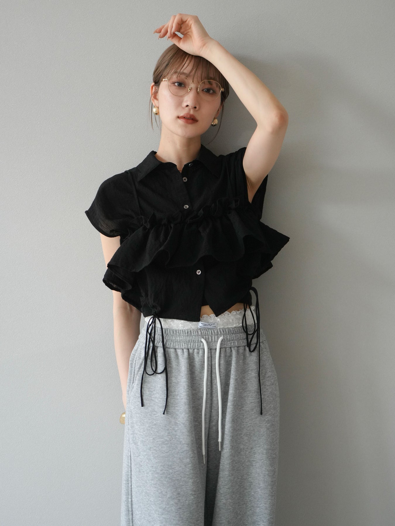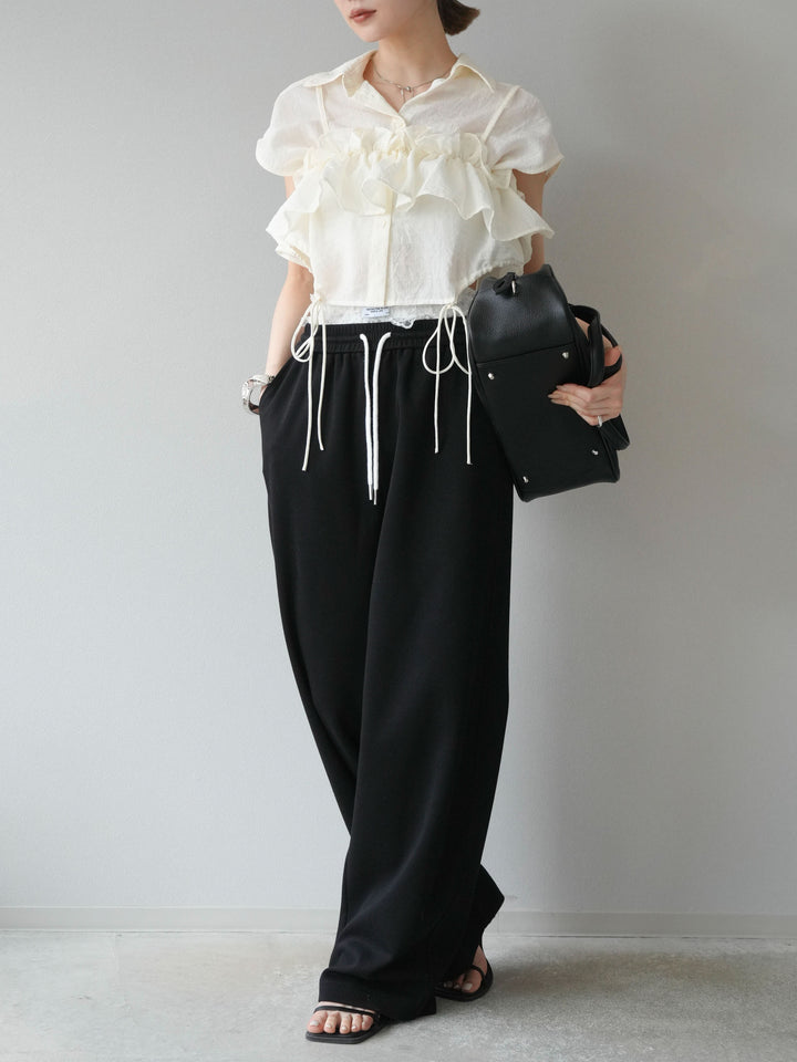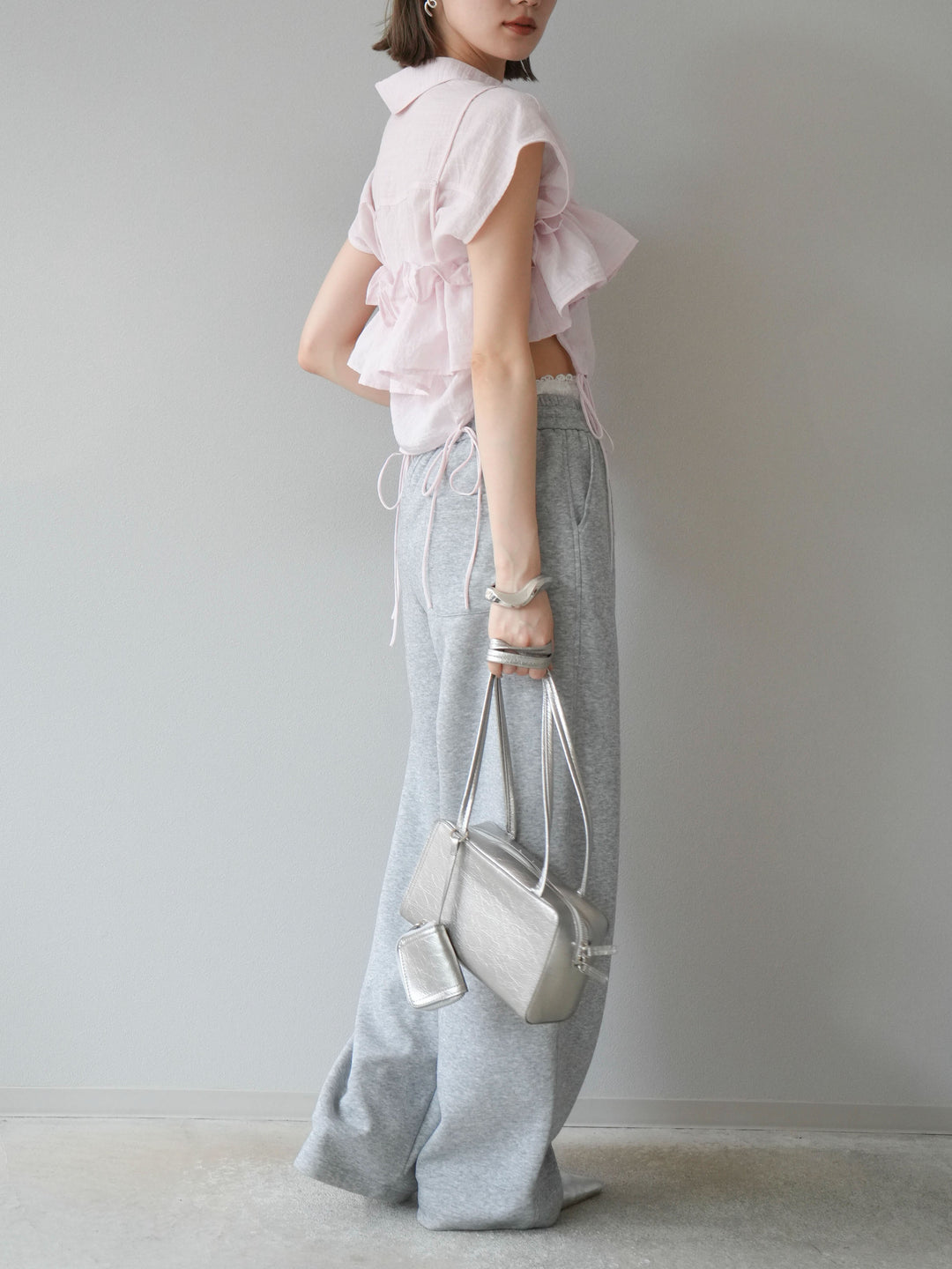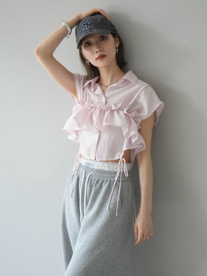 [SET]レーヨンデザインシャツビスチェアンサンブル+レースレイヤードスウェットパンツ(2set)