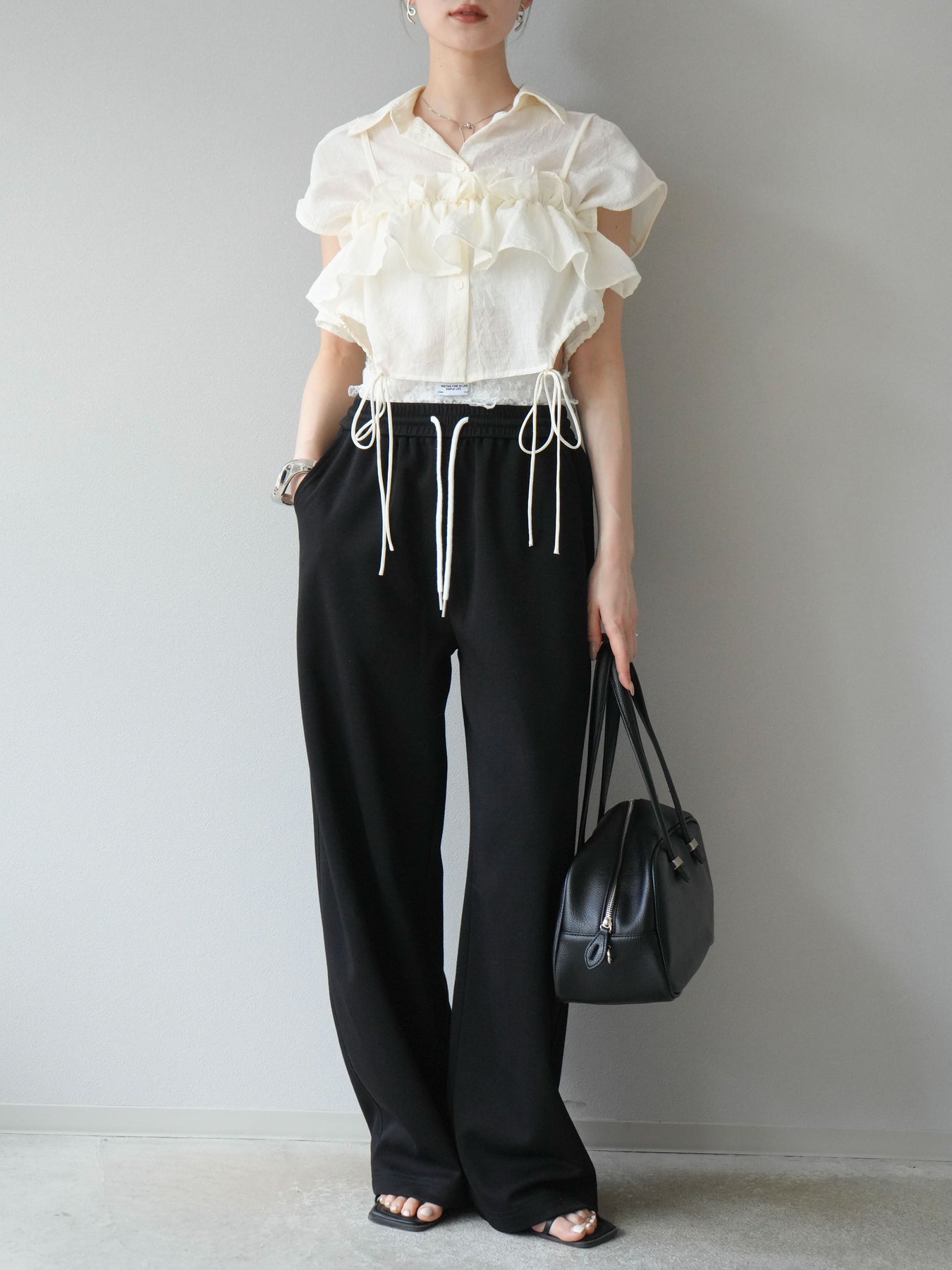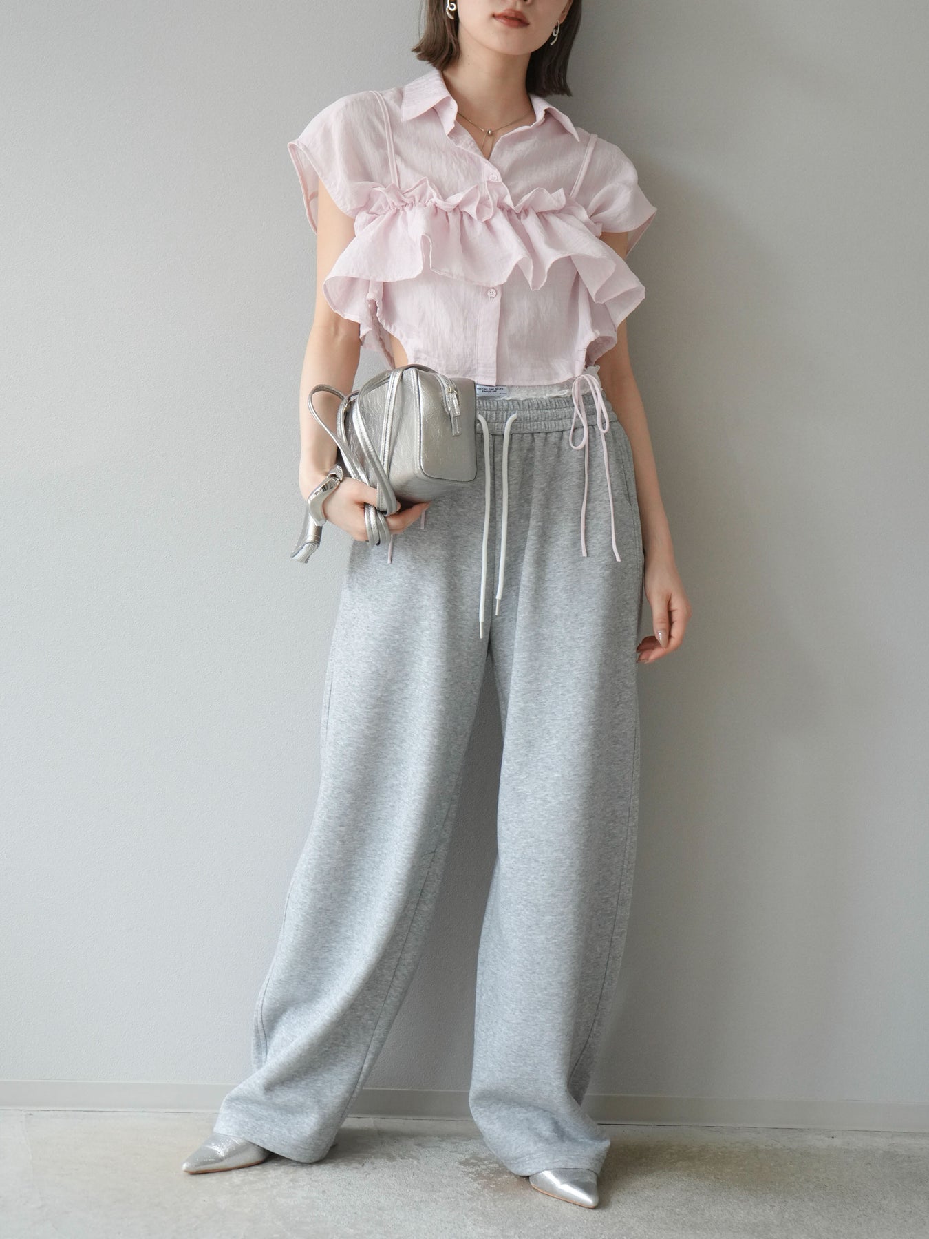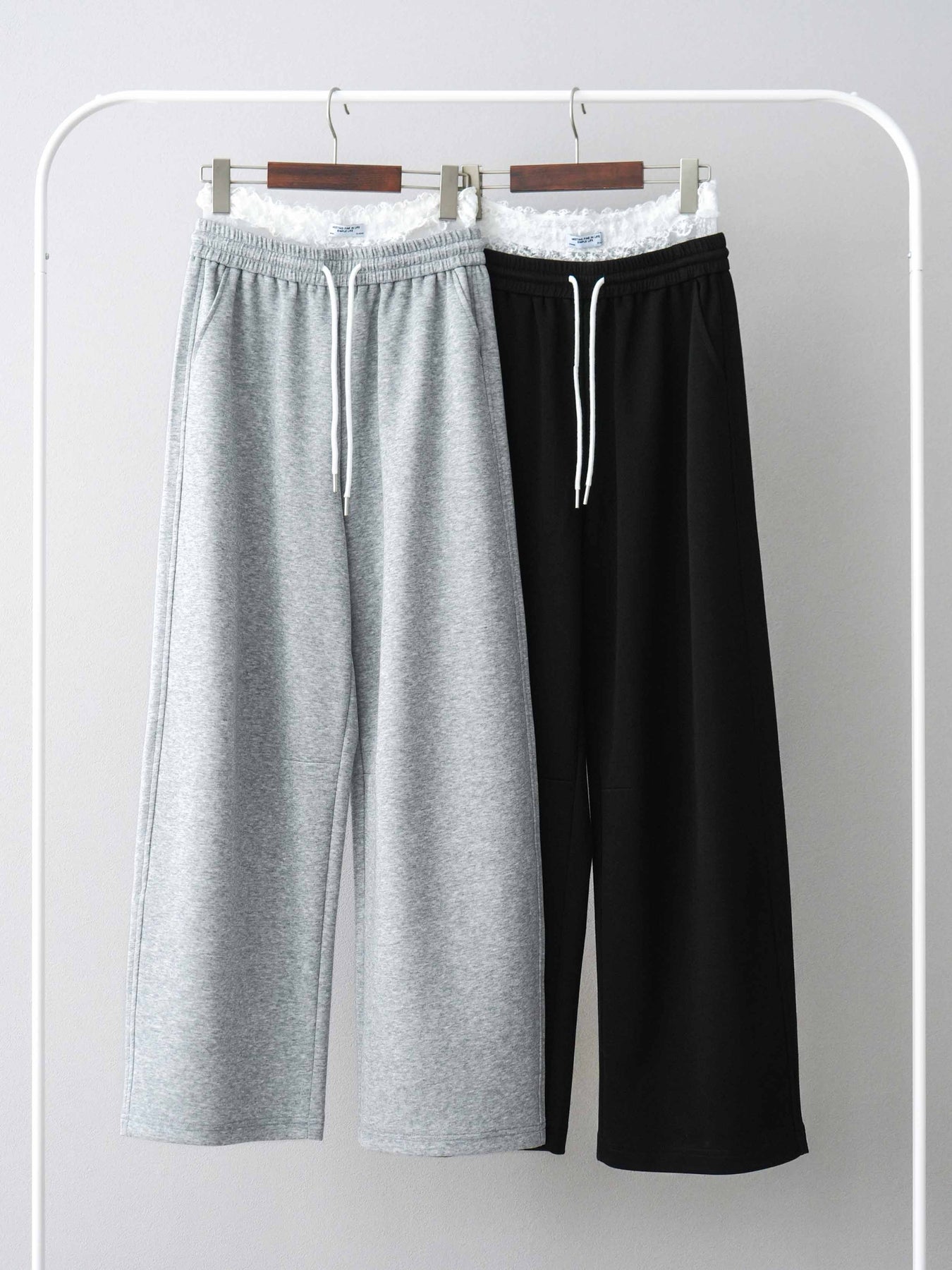 トレンド感のあるレースレイヤードデザインが魅力のスウェットパンツ。ウエスト部分に施された繊細なレースが、カジュアルなスウェットに女性らしさをプラス。リラックス感のあるシルエットながら、ウエストのドローストリングで調整可能。ラフに着こなしても、トップス次第で上品なスタイルにも仕上がる万能アイテムです。 ※ボトムス、キャミソール(インナー)以外の商品は一律でインナーは付属していません