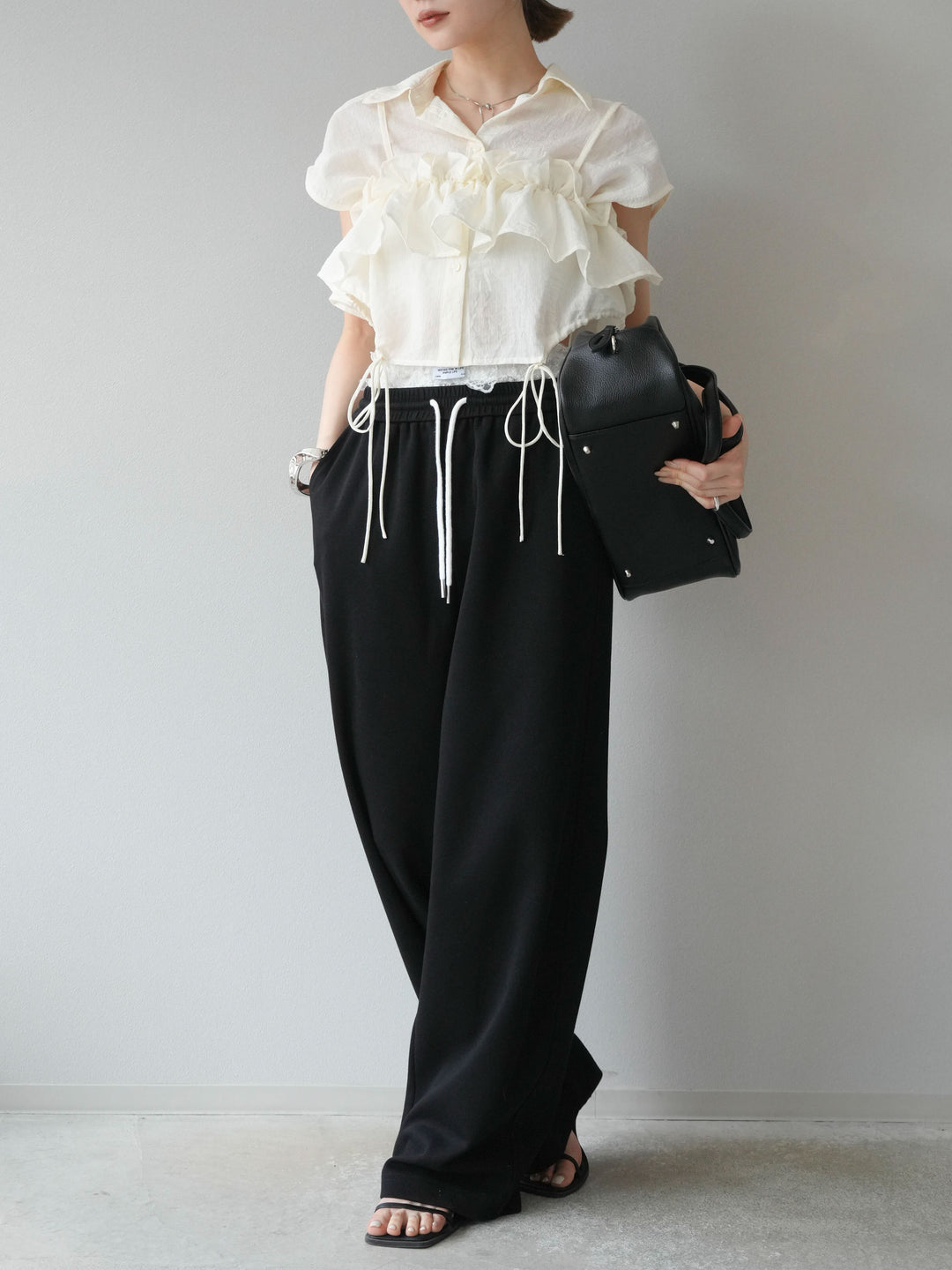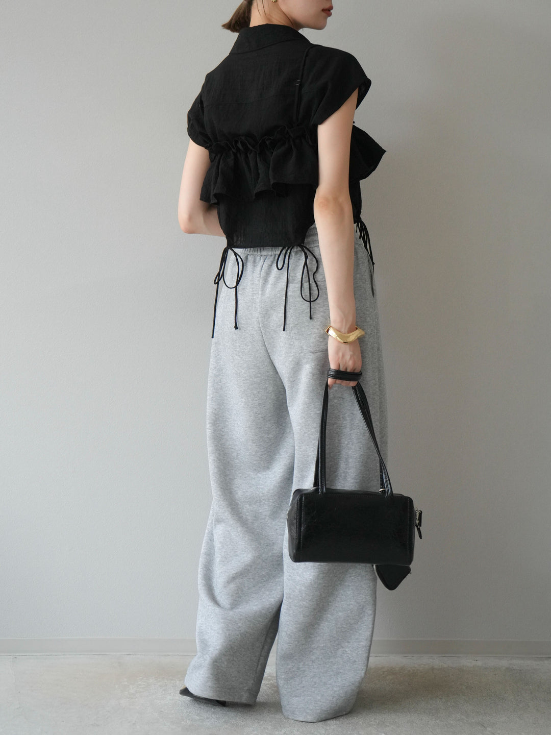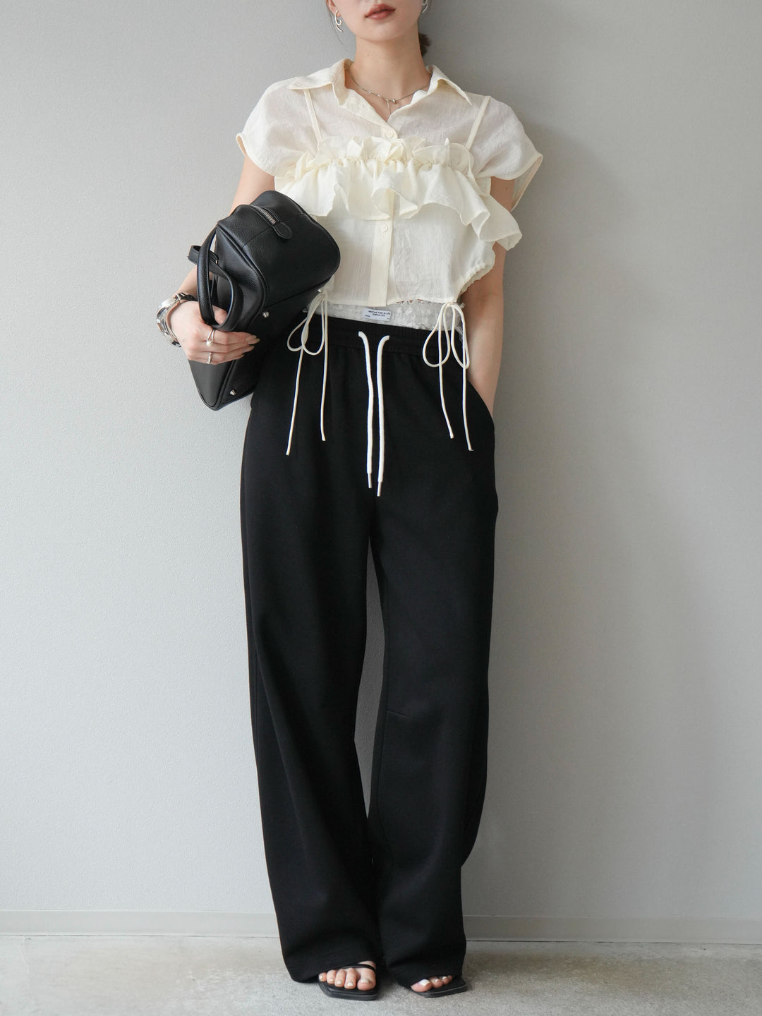 トレンド感のあるレースレイヤードデザインが魅力のスウェットパンツ。ウエスト部分に施された繊細なレースが、カジュアルなスウェットに女性らしさをプラス。リラックス感のあるシルエットながら、ウエストのドローストリングで調整可能。ラフに着こなしても、トップス次第で上品なスタイルにも仕上がる万能アイテムです。 ※ボトムス、キャミソール(インナー)以外の商品は一律でインナーは付属していません