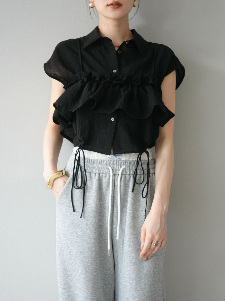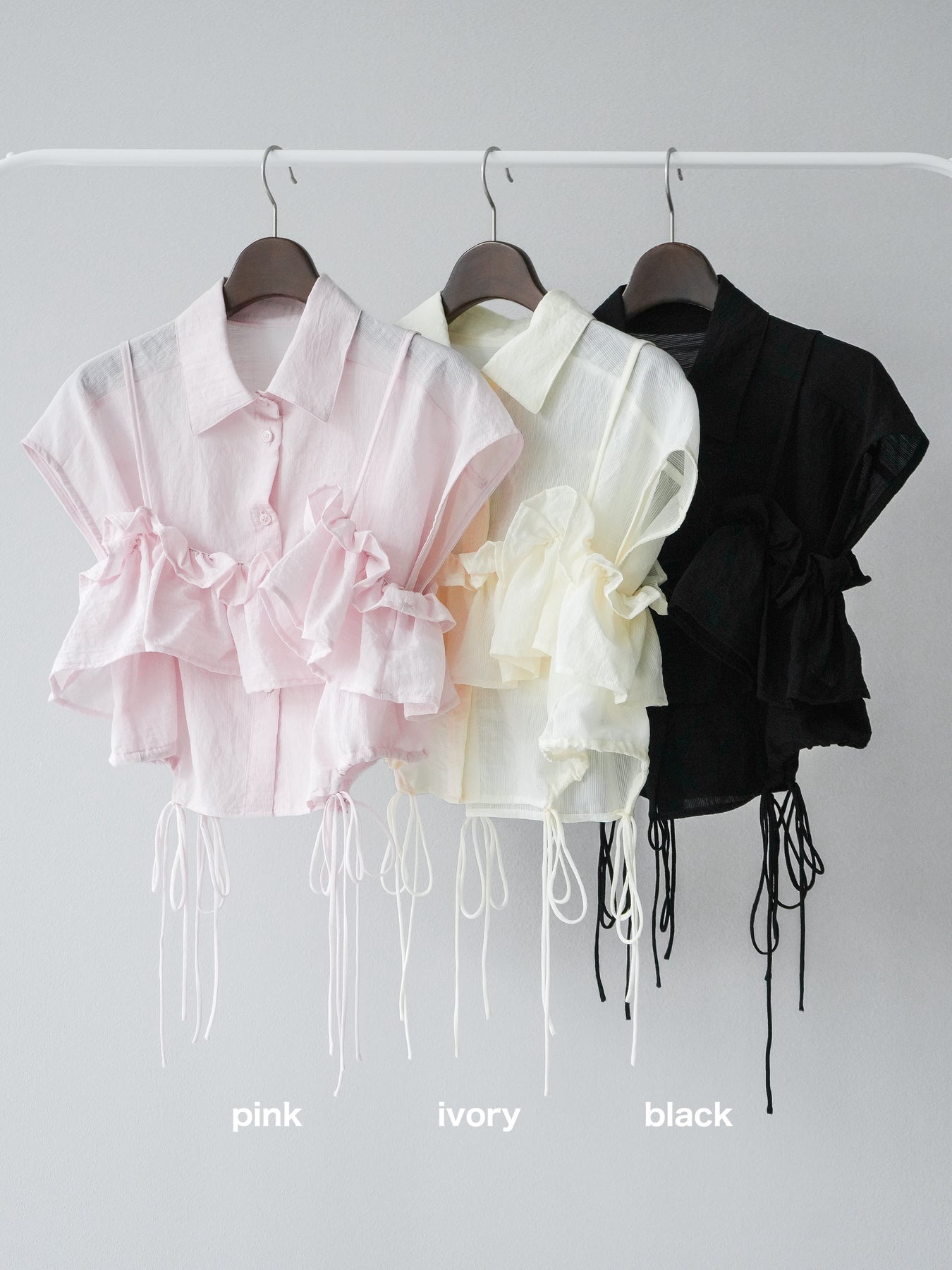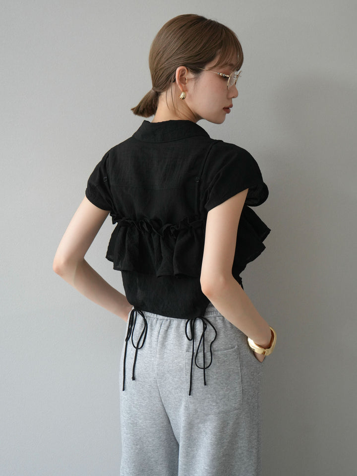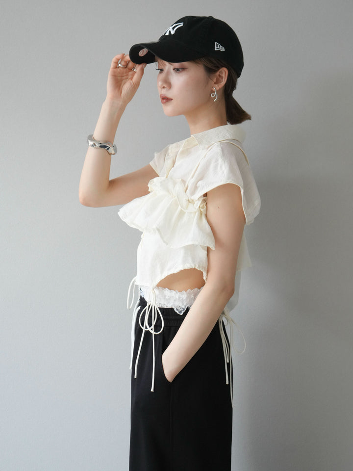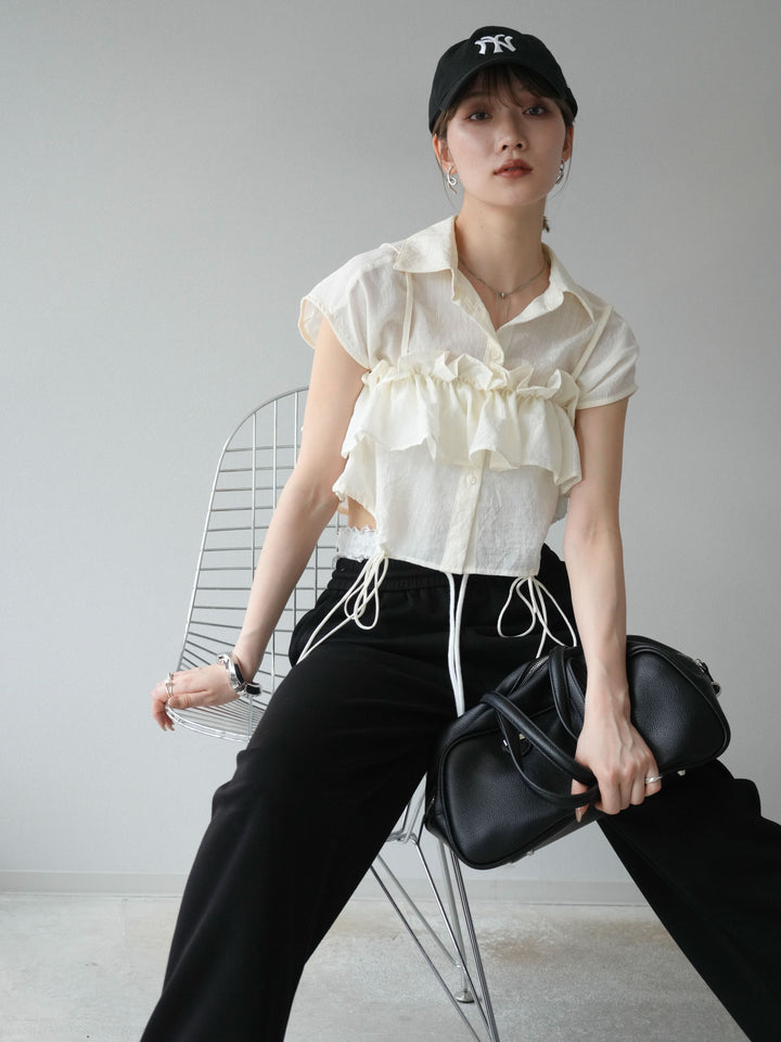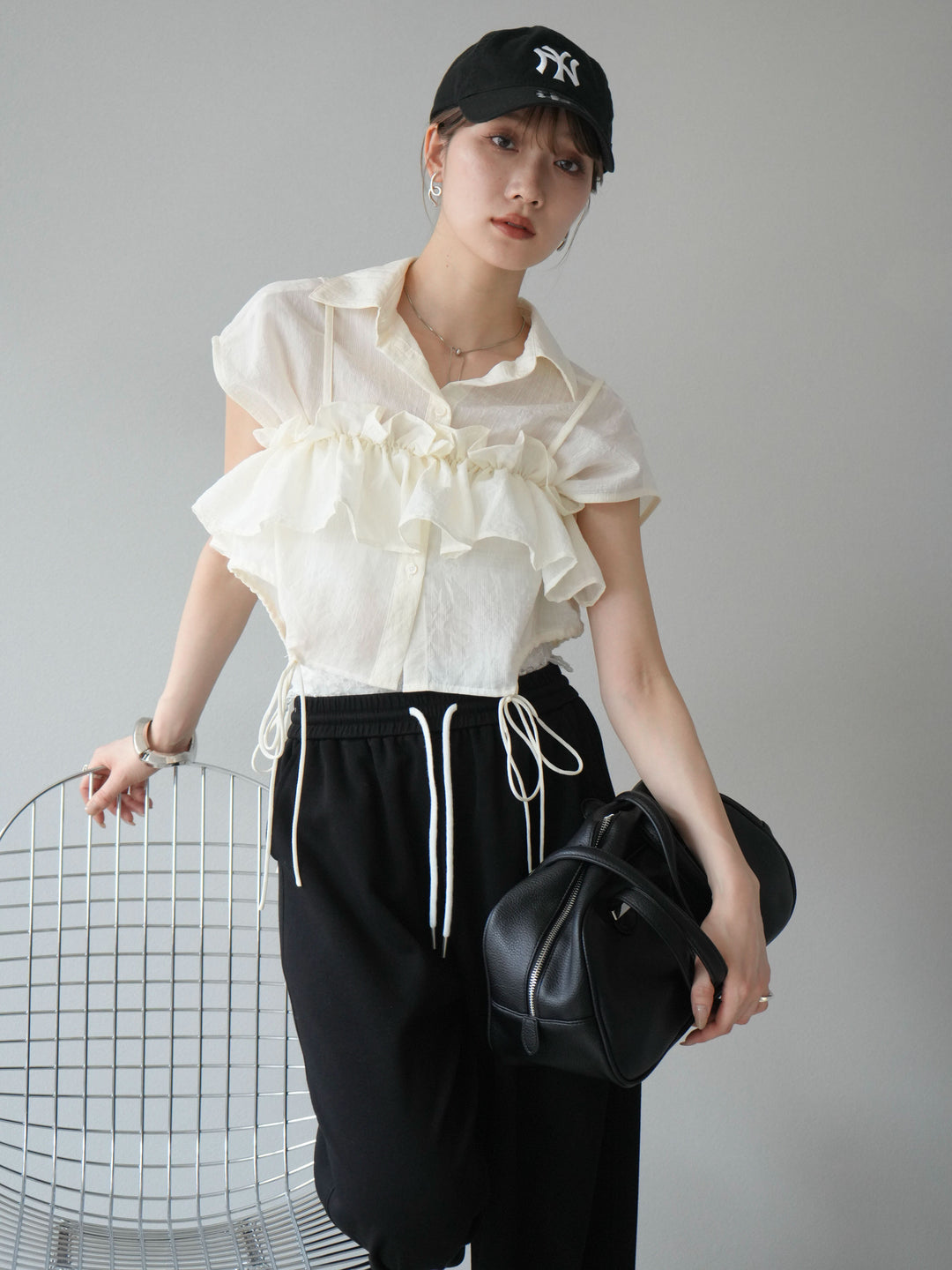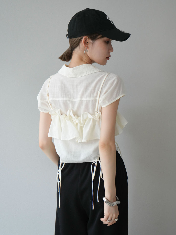 軽やかなレーヨン素材のシャツと、ドロストでメリハリを効かせたビスチェがセットになったアンサンブル。フリルのように広がるビスチェデザインが、コーディネートに動きを与え、旬のレイヤードスタイルを簡単に楽しめます。単品使いもできるため着回し力も抜群。デニム合わせでカジュアルダウンするのもおすすめです。 ※ボトムス、キャミソール(インナー)以外の商品は一律でインナーは付属していません