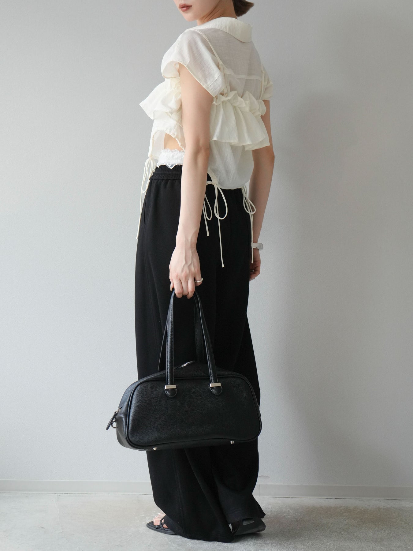・お手入れ方法:手洗い水温30℃以下、おしゃれ着用液体洗剤または中性洗剤のご使用をお薦めします。素材の特性上、洗濯の際に色落ち・縮みが生じる恐れがありますので単独で・短時間でのお洗濯をお薦めします。洗濯後は形を整えてから陰干ししてください。アイロンはご使用いただけません。※タンブラー乾燥は控え、色物とは分けてください。 濡れたままの状態で擦れると、色落ち色移りすることがあります。つけ置き洗いや雨や汗で濡れたまま放置は避け、速やかに処理してください。着用中の摩擦や汗、水濡れ、濃淡差があるものとの重ね着にご注意ください。
