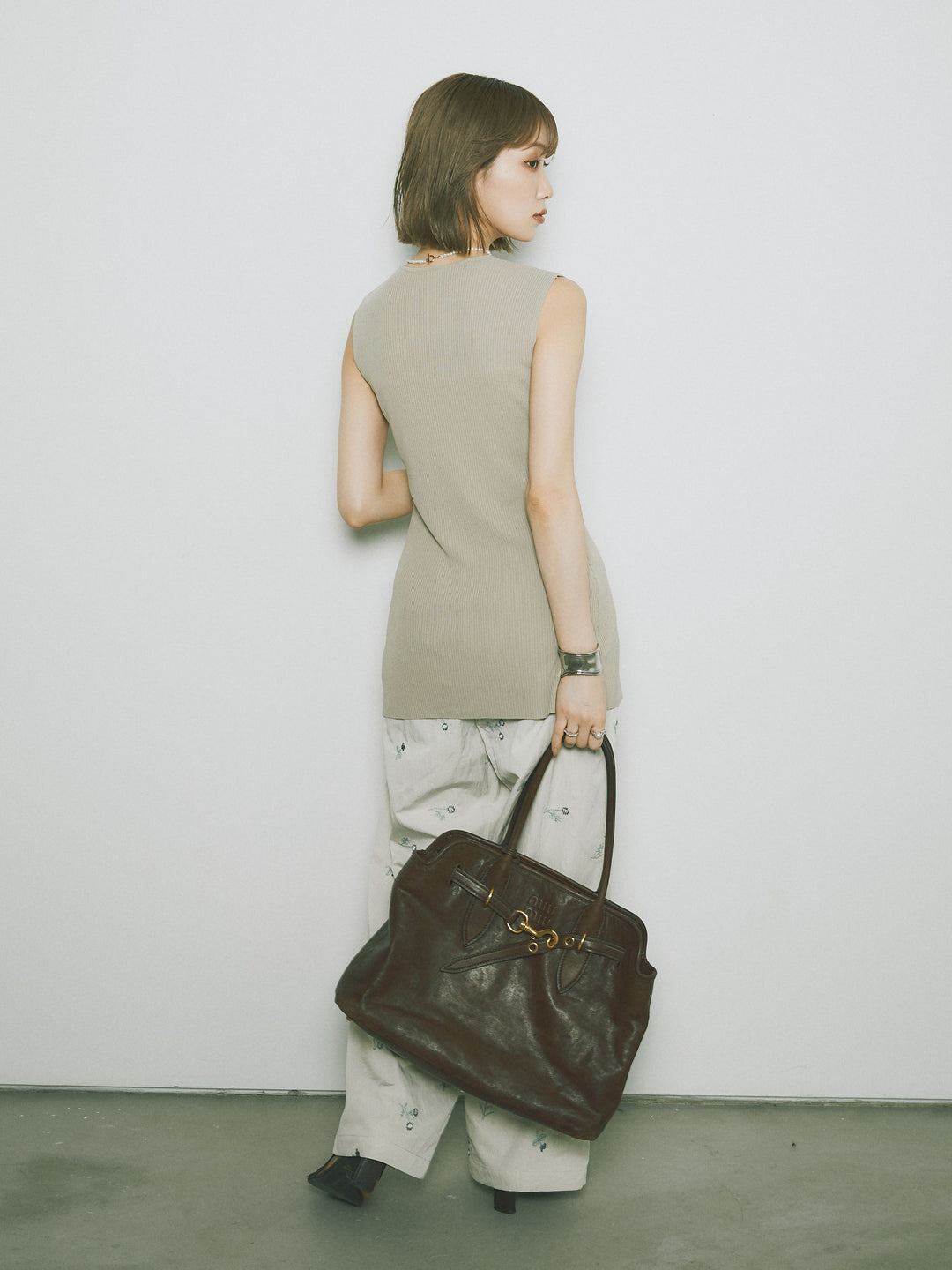 ◆ [予約]フロントスリットリブシェイプニットトップス