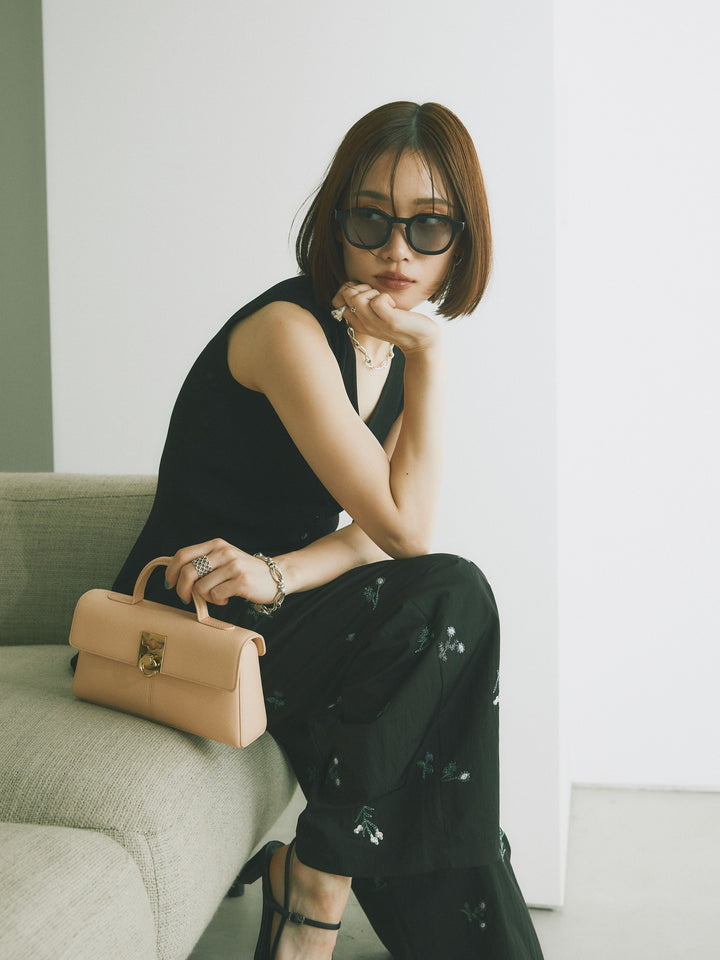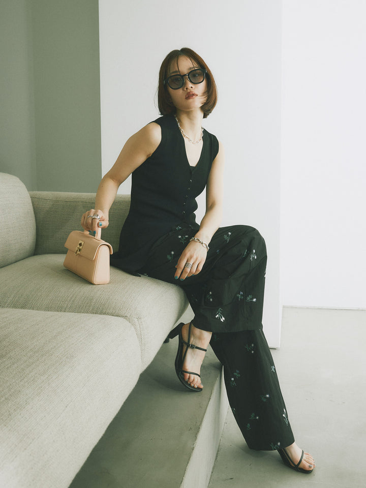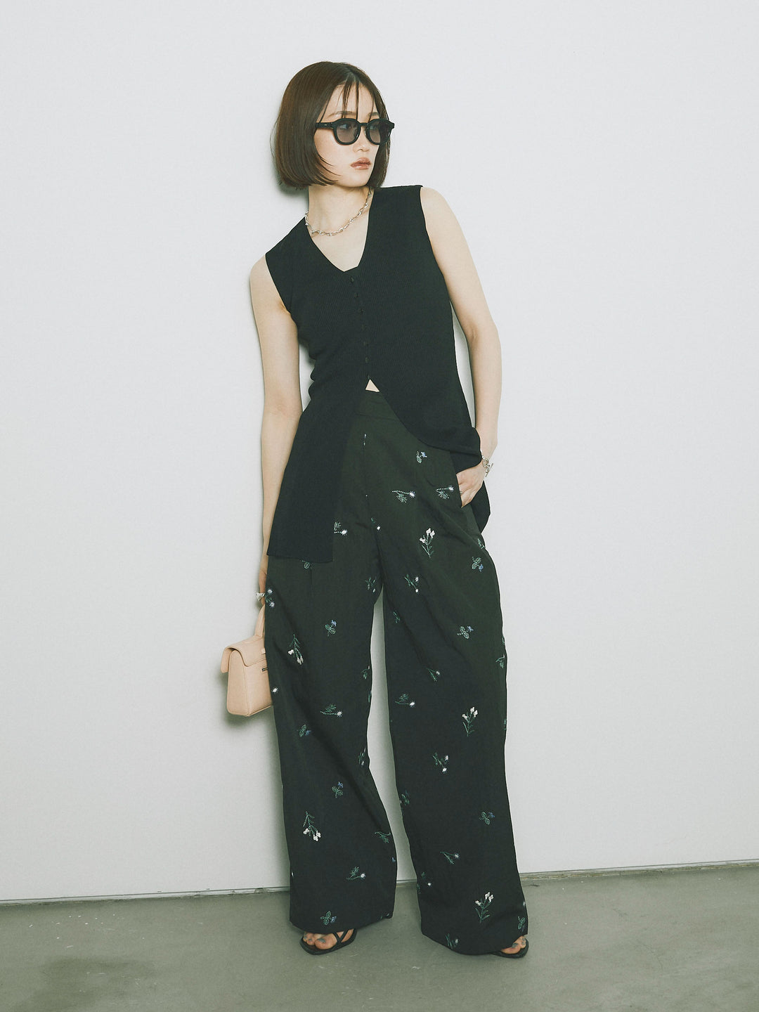 ◆ [予約]フラワー刺繍タフタタックパンツ