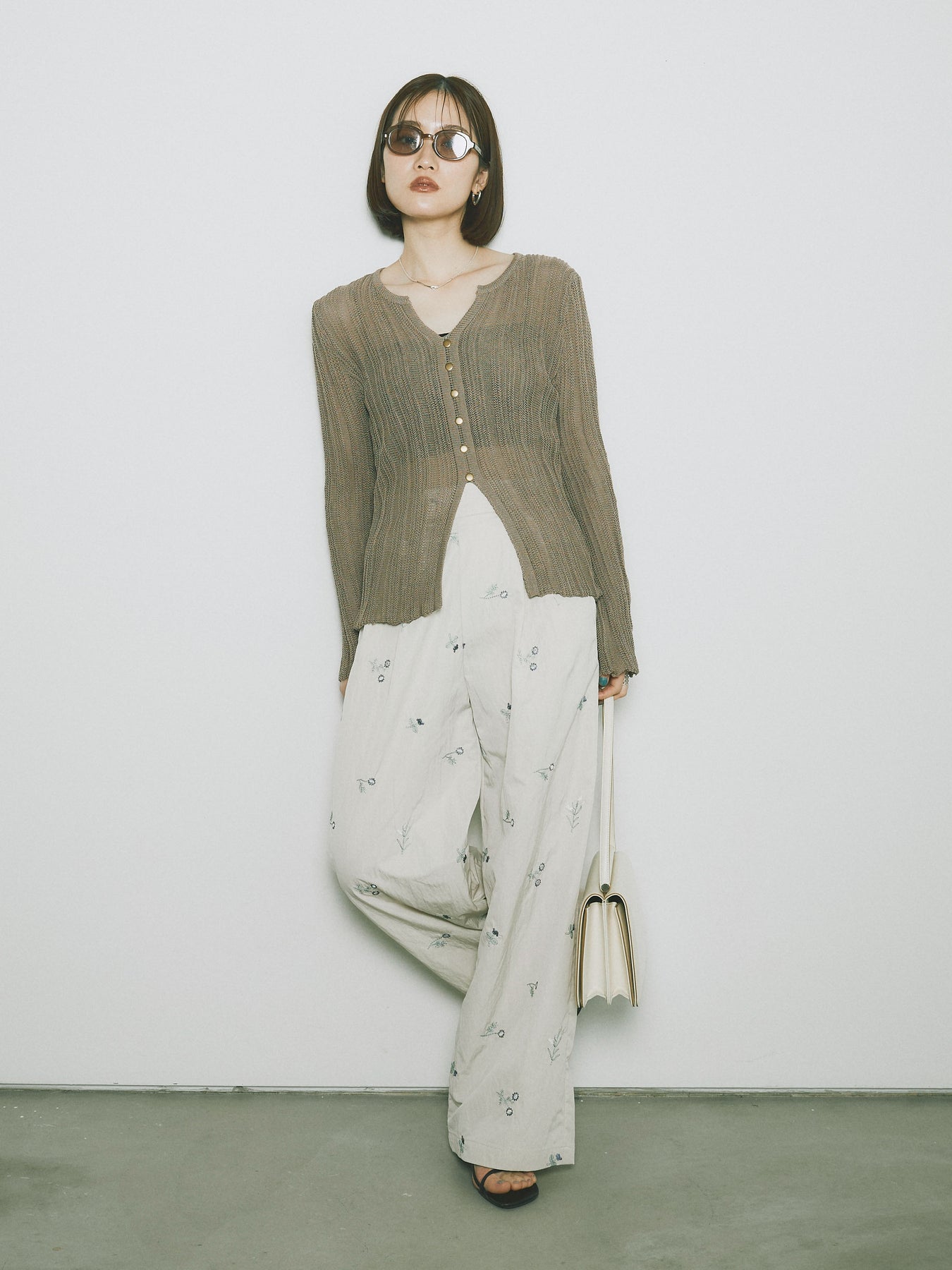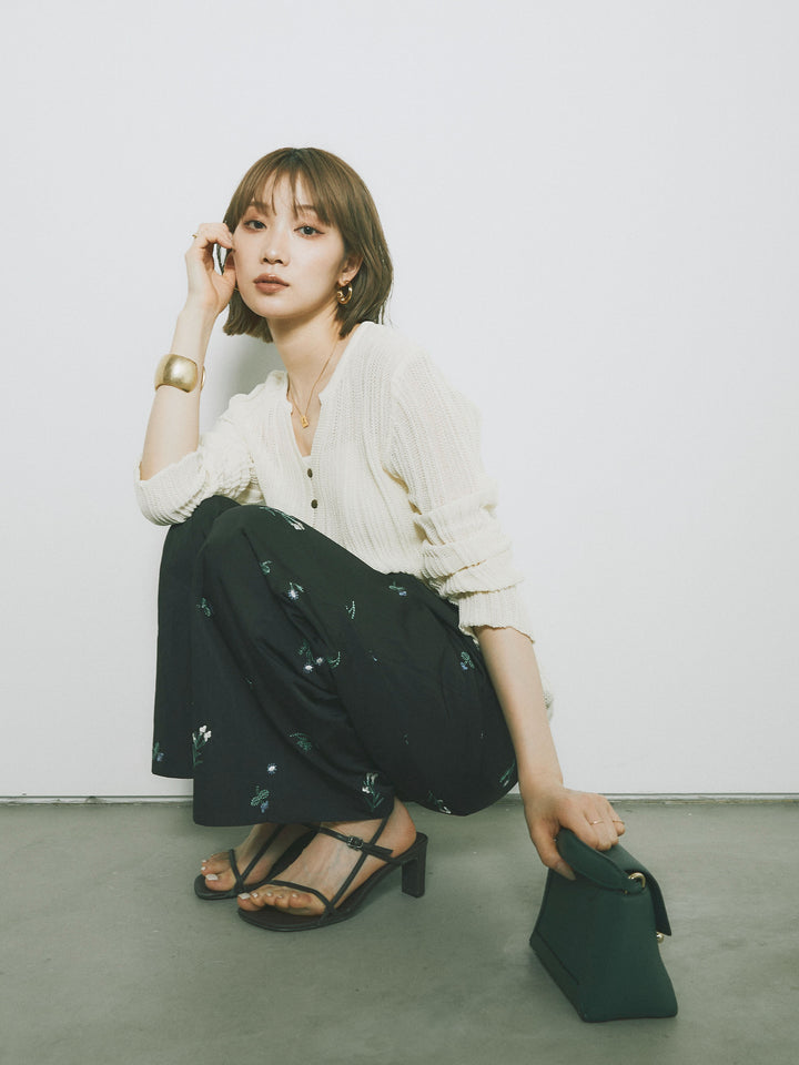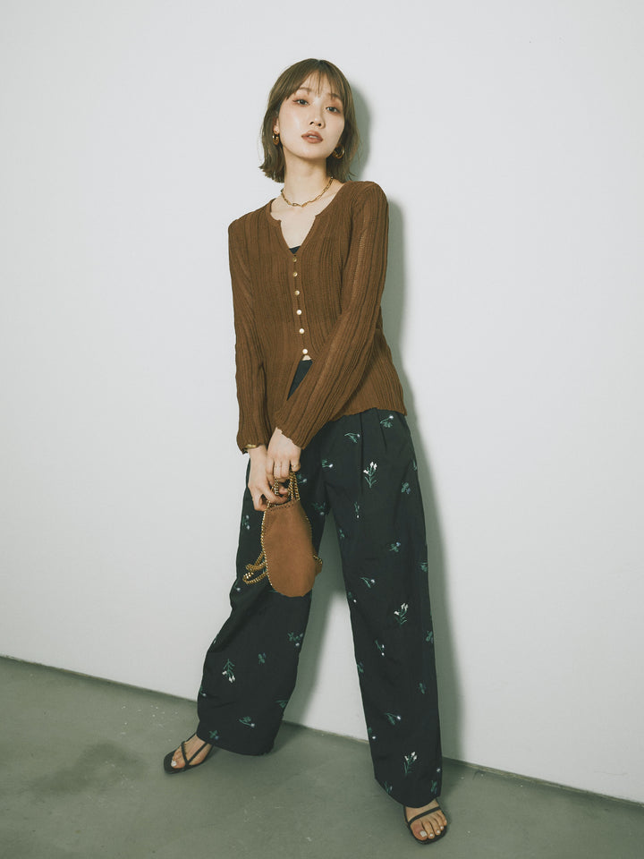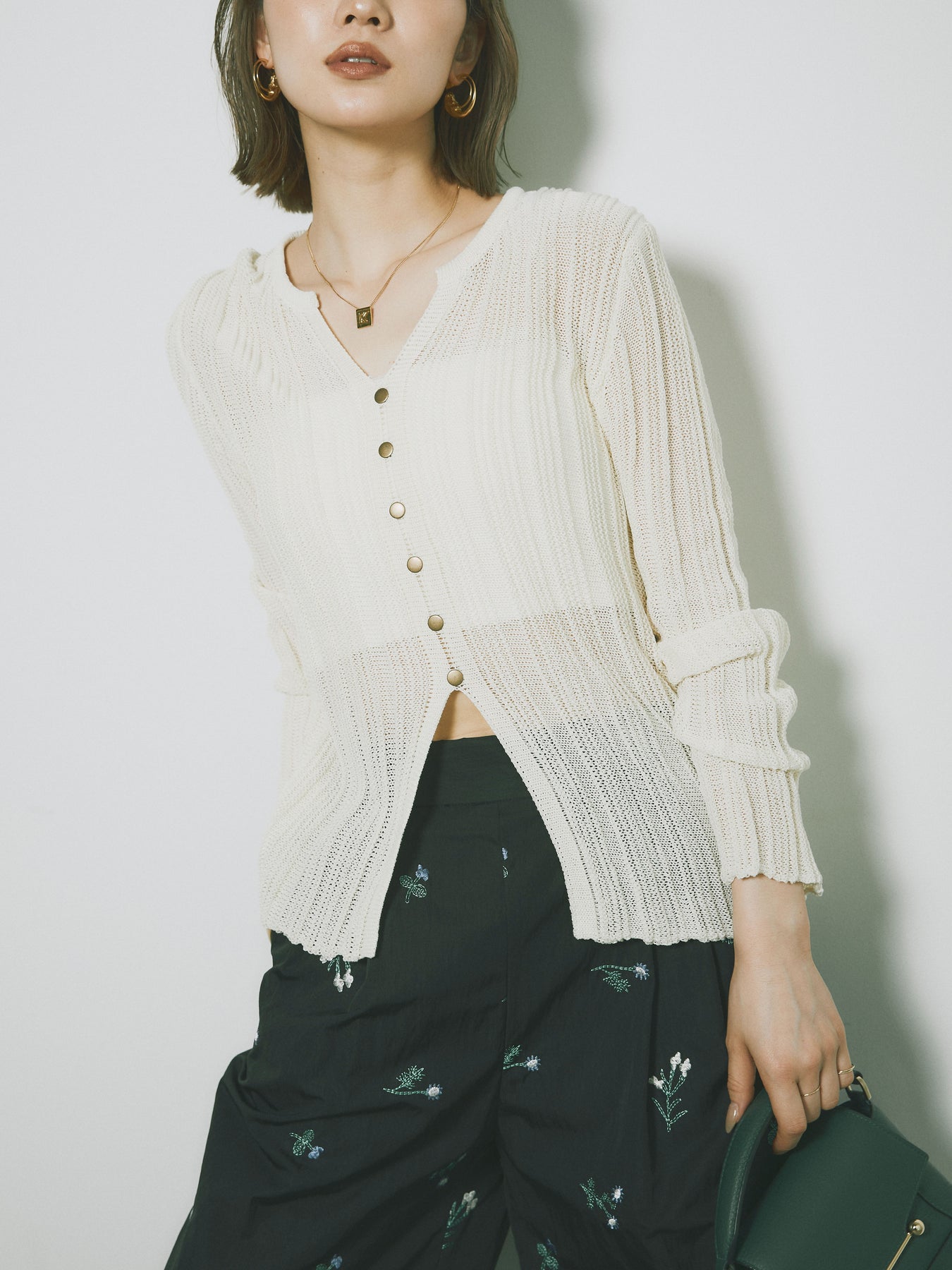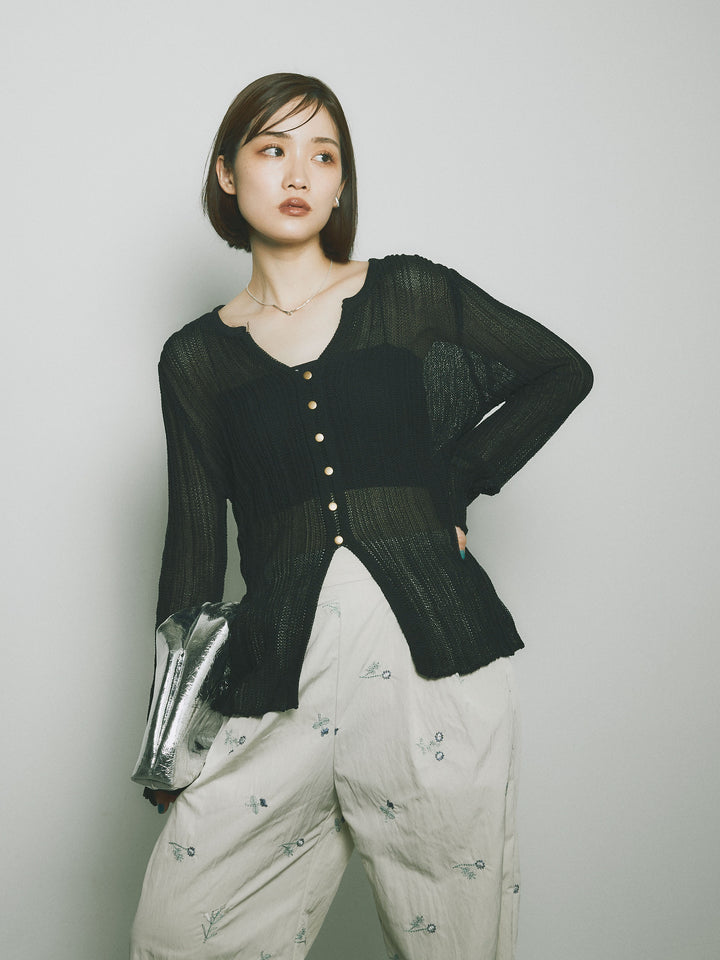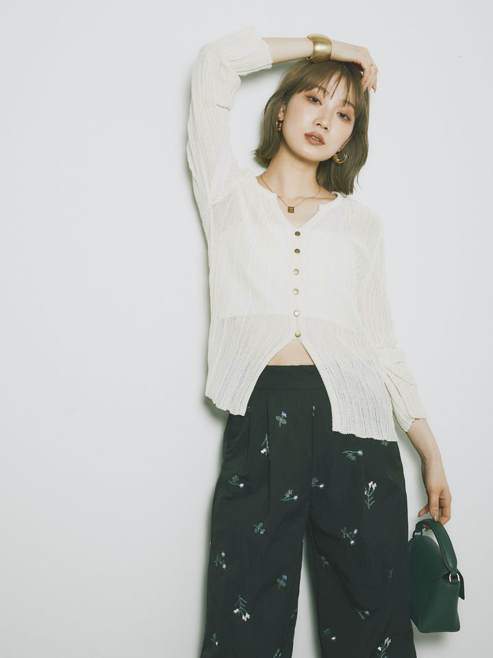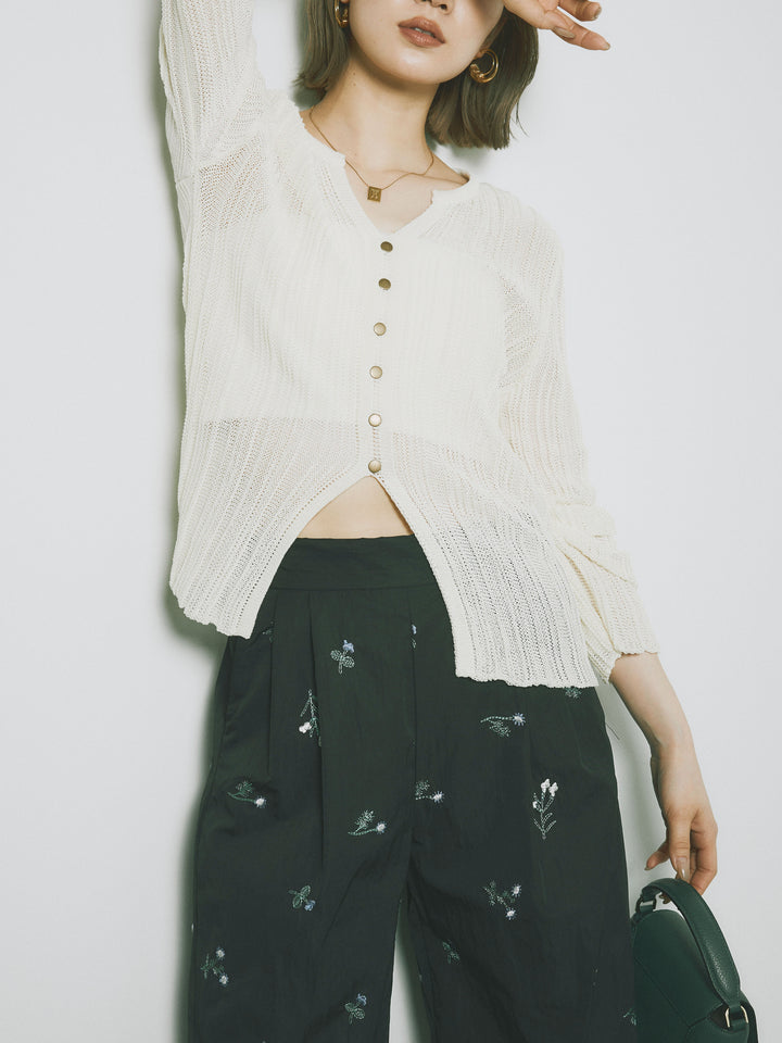 ◆ [予約]フロントスリットフロントボタンニットトップス