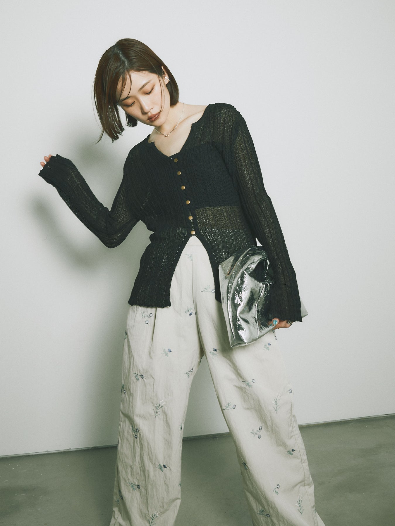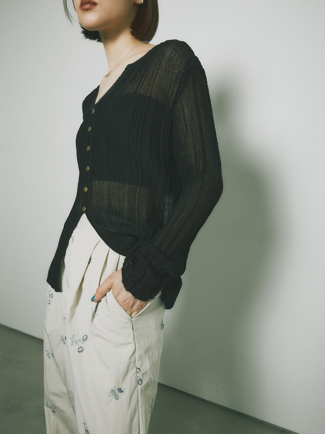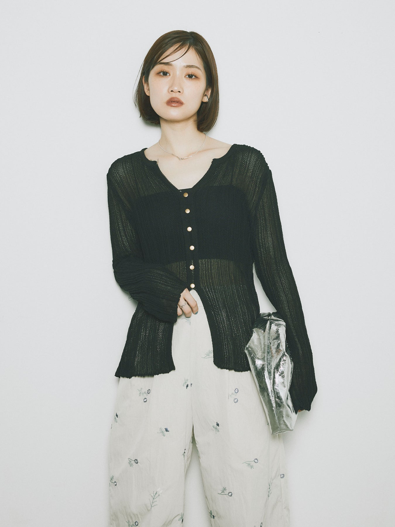 [予約]フロントスリットフロントボタンニットトップス + [予約]フロントスリットフロントボタンニットトップス