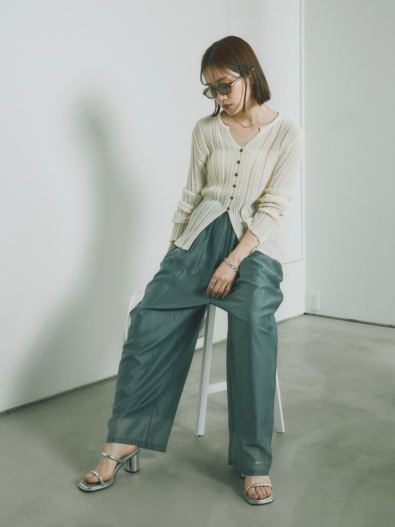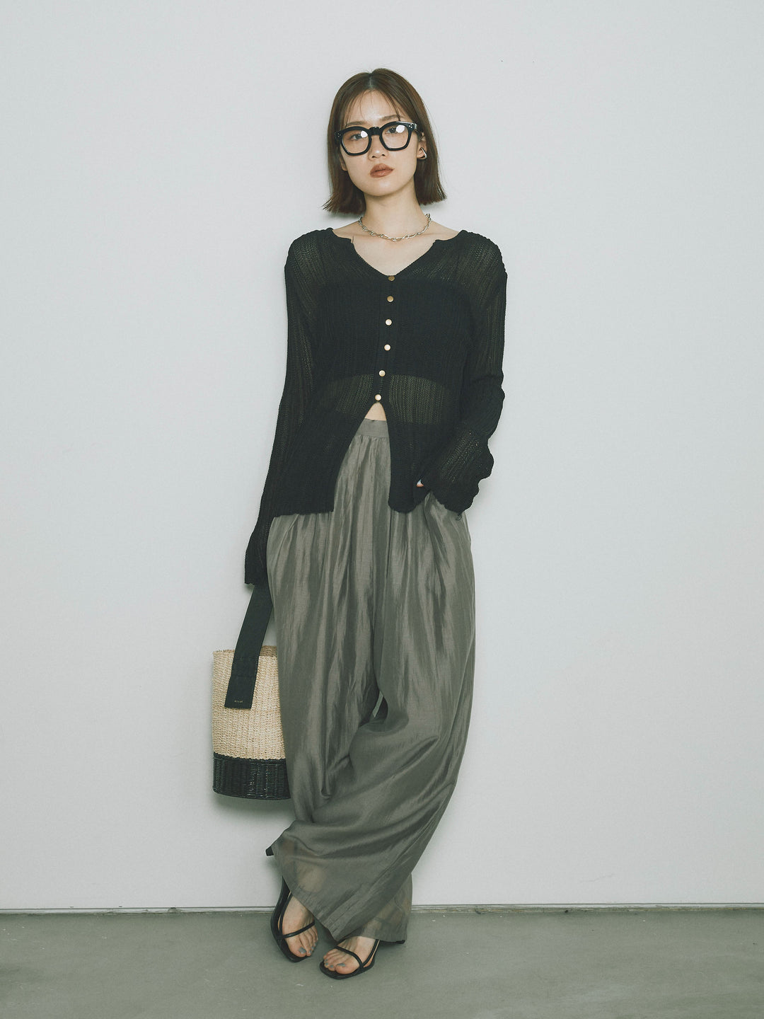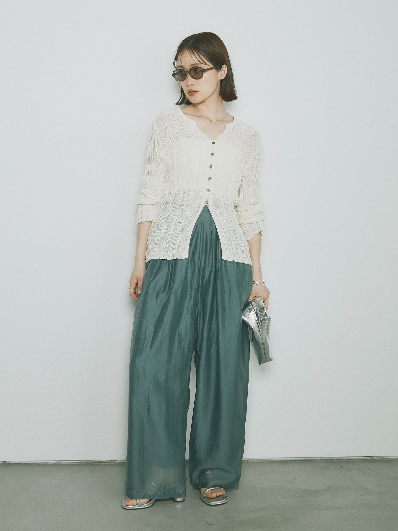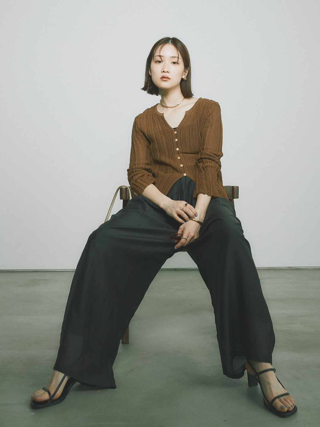 [SET]フロントスリットフロントボタンニットトップス+シアーリヨセル3タックワイドパンツ(2set)