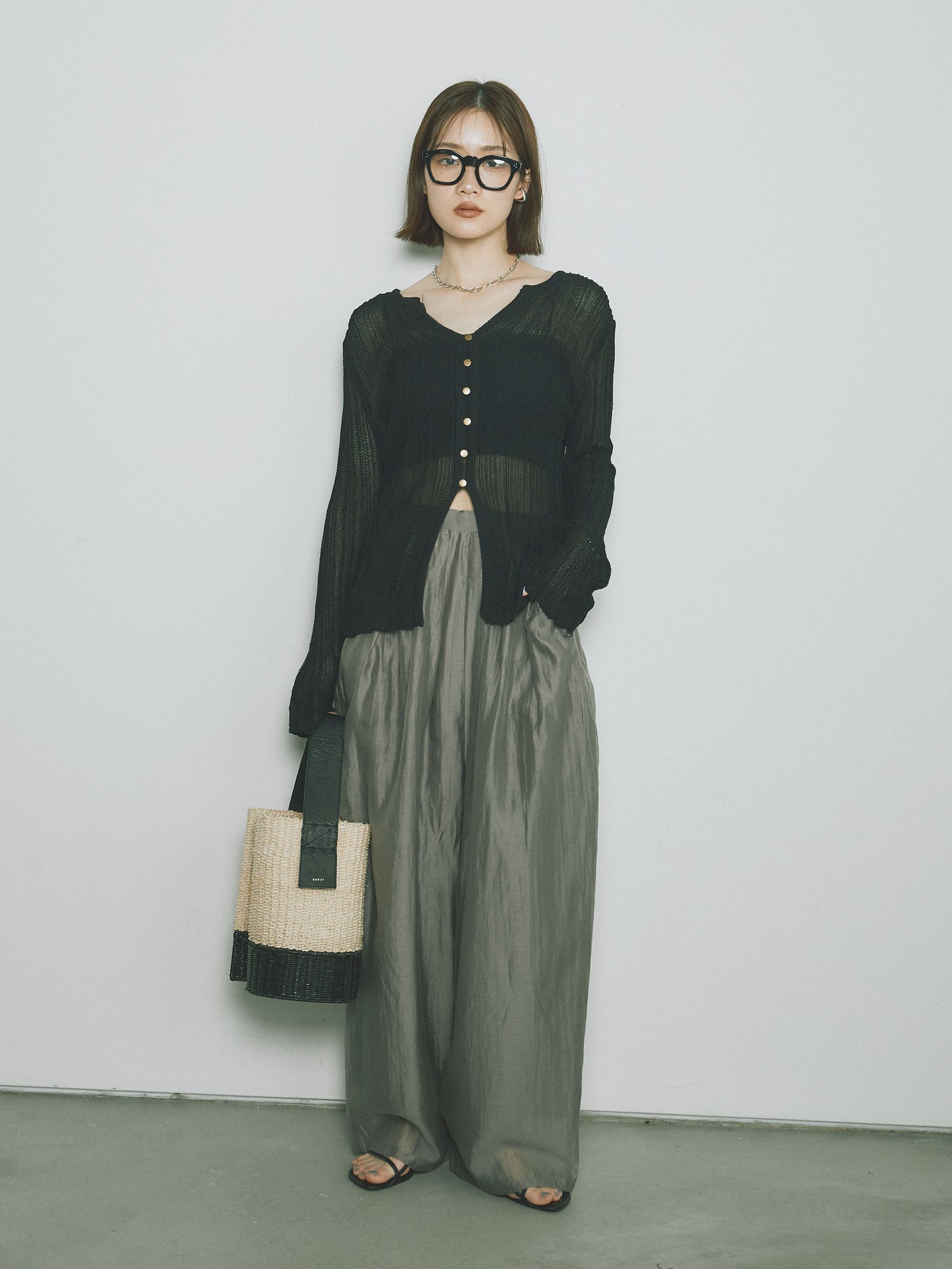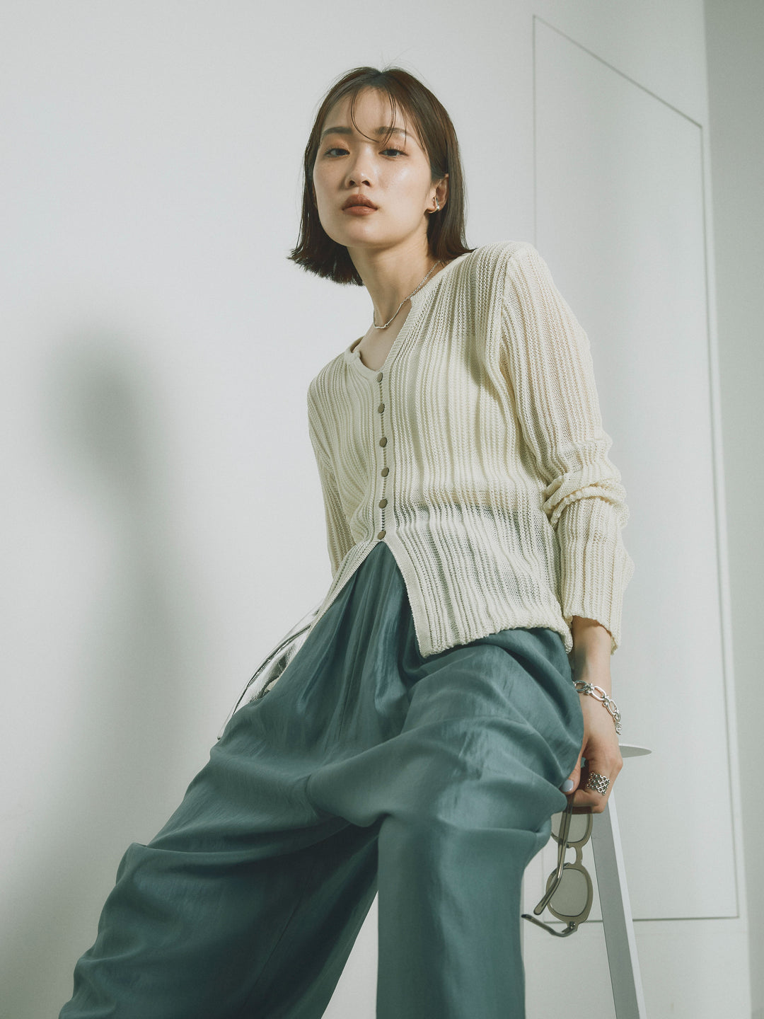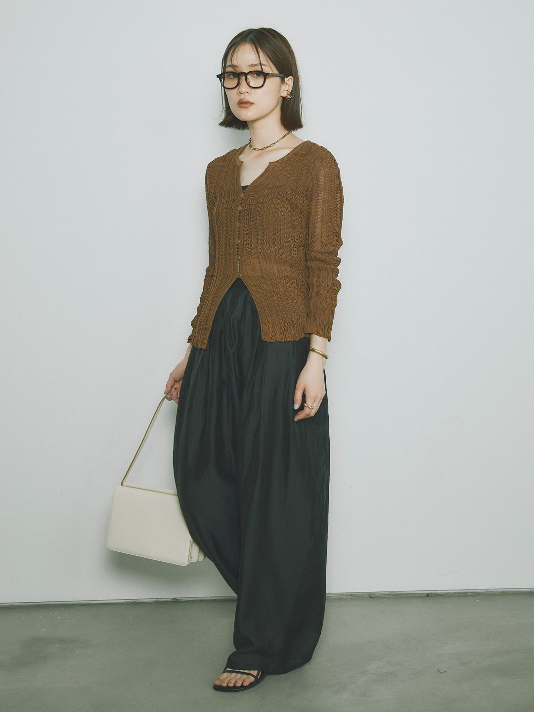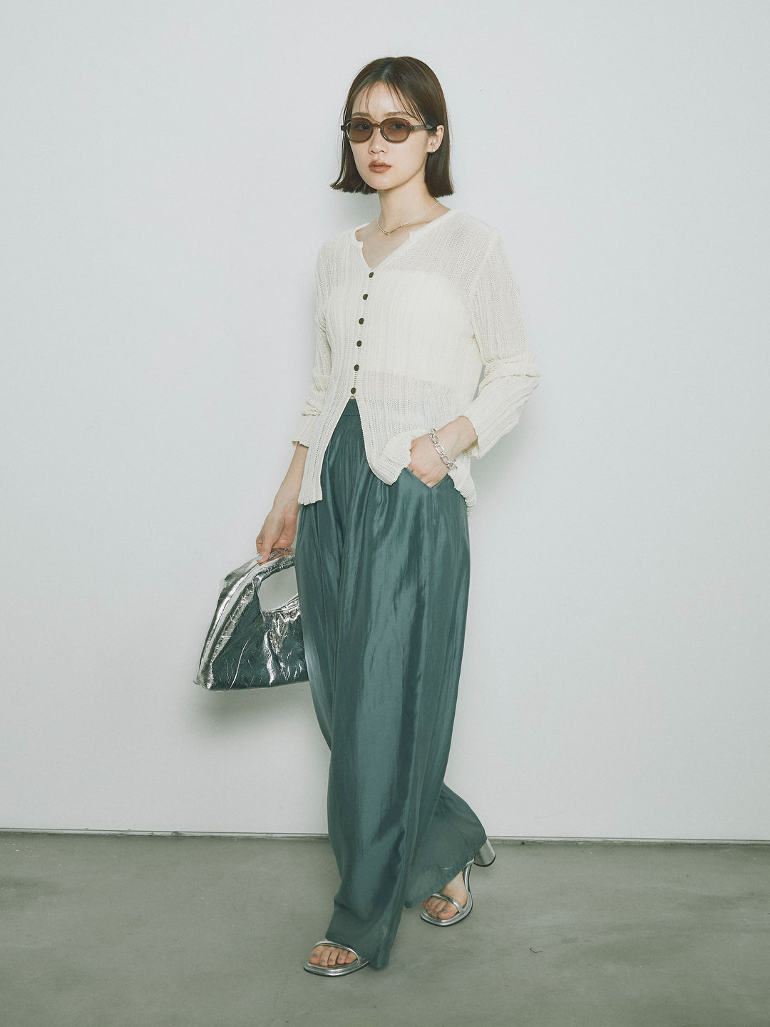 [SET]フロントスリットフロントボタンニットトップス+シアーリヨセル3タックワイドパンツ(2set)