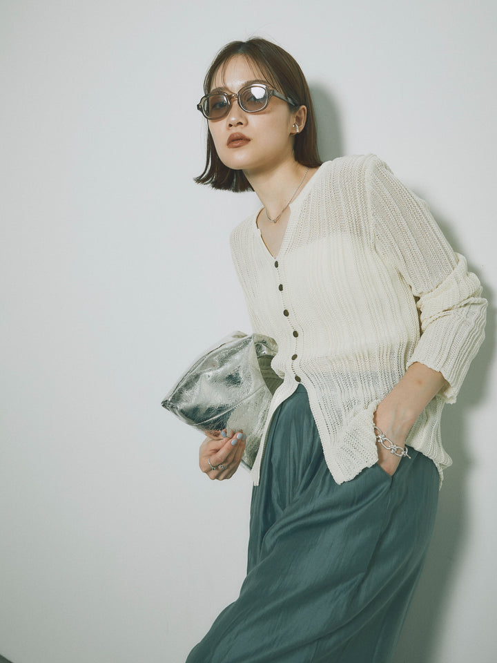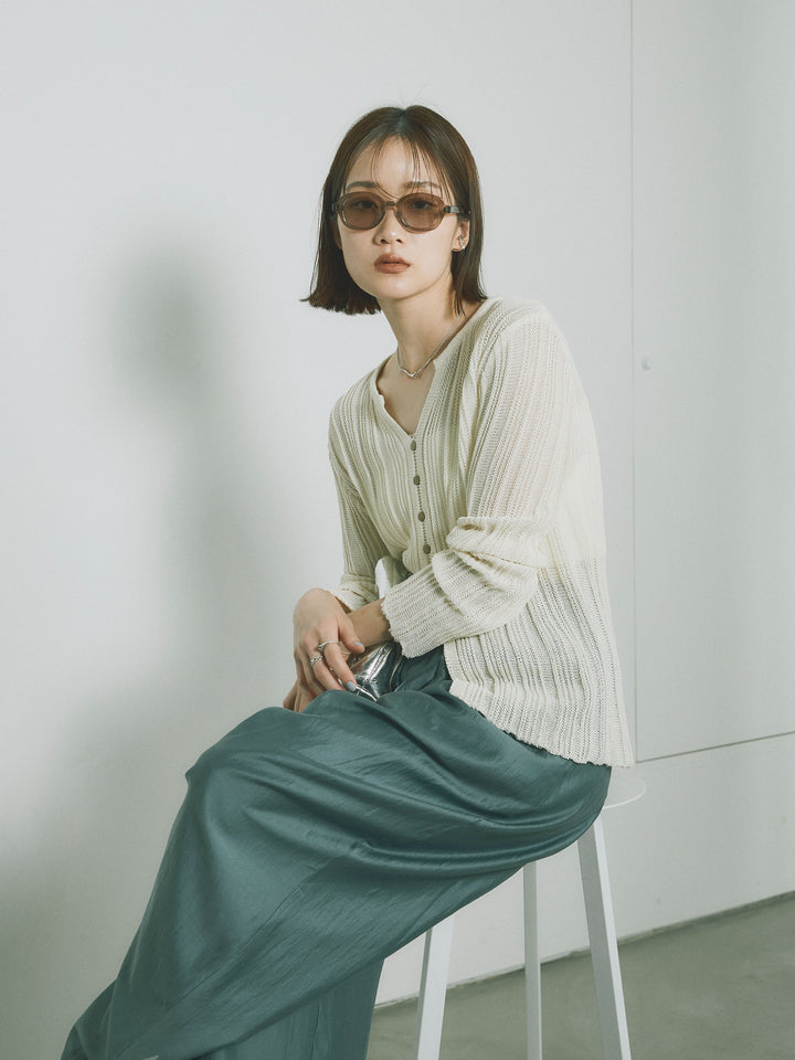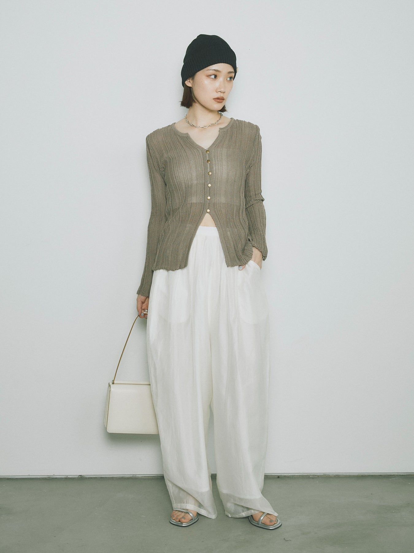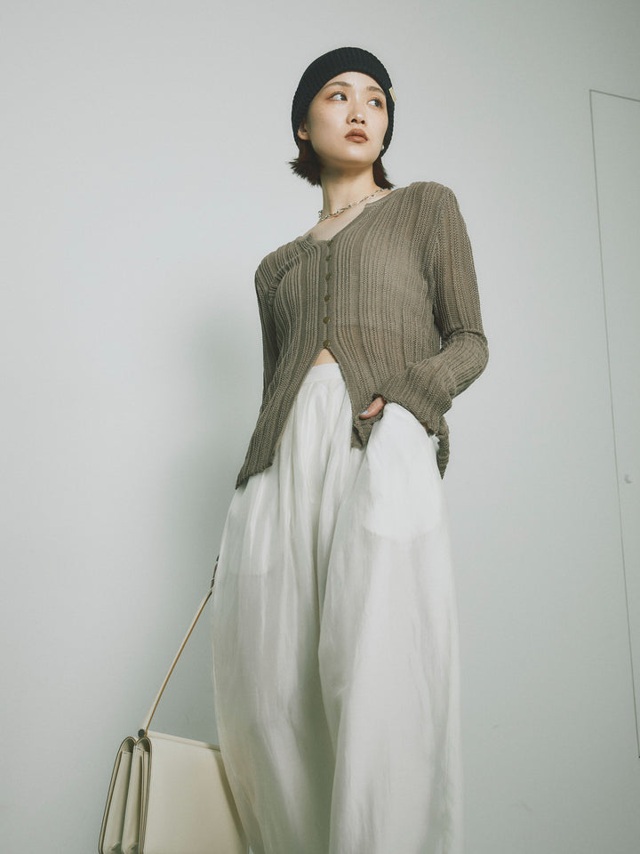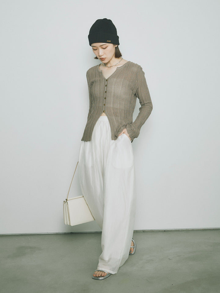 [SET]フロントスリットフロントボタンニットトップス+シアーリヨセル3タックワイドパンツ(2set)