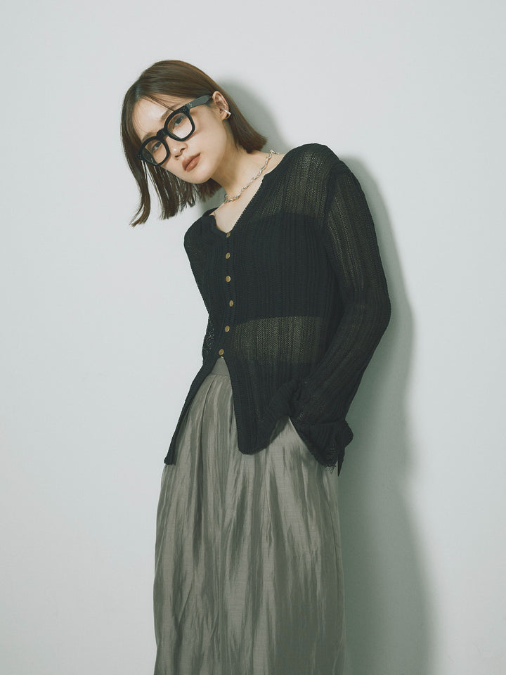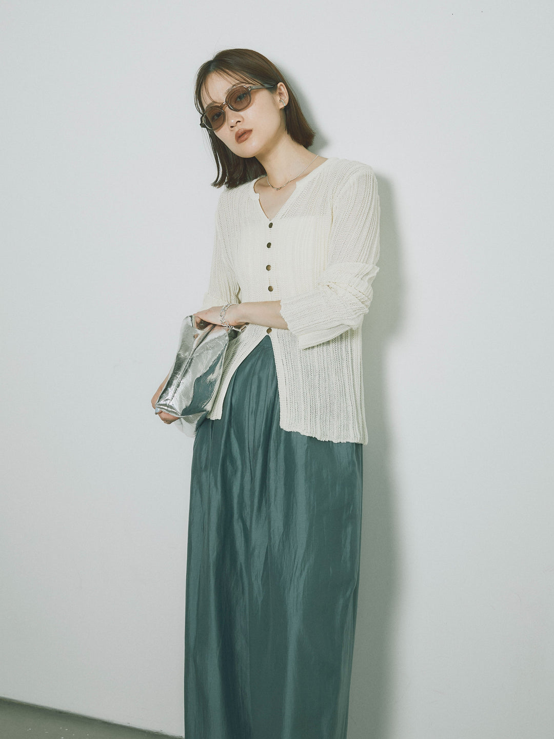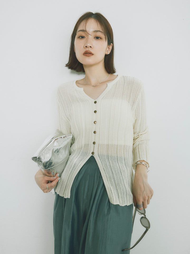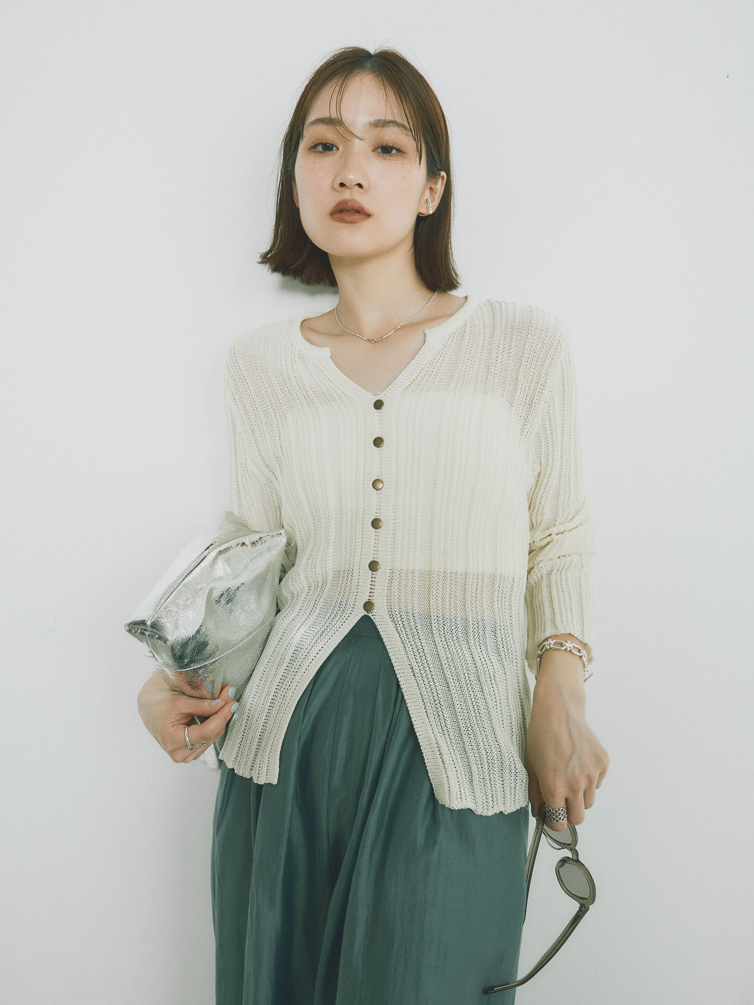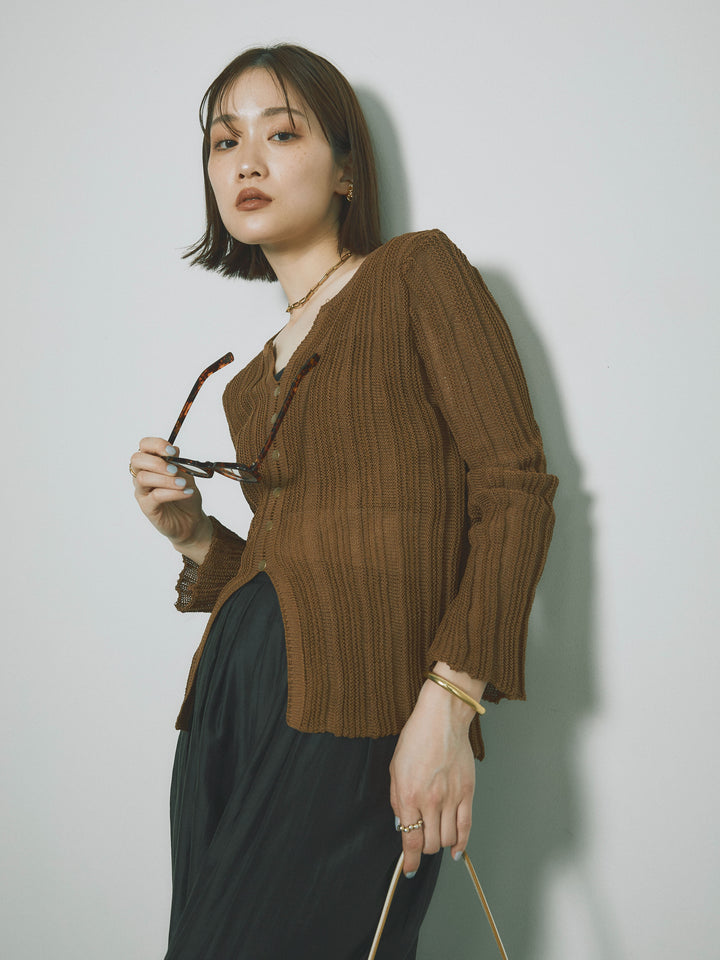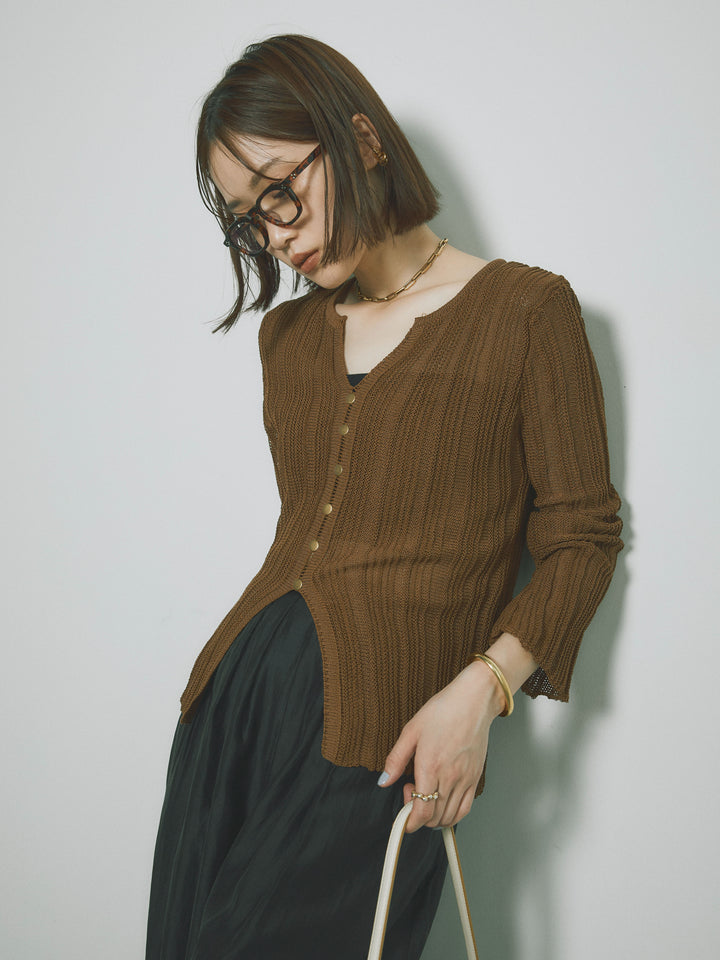 ◆ [予約]フロントスリットフロントボタンニットトップス