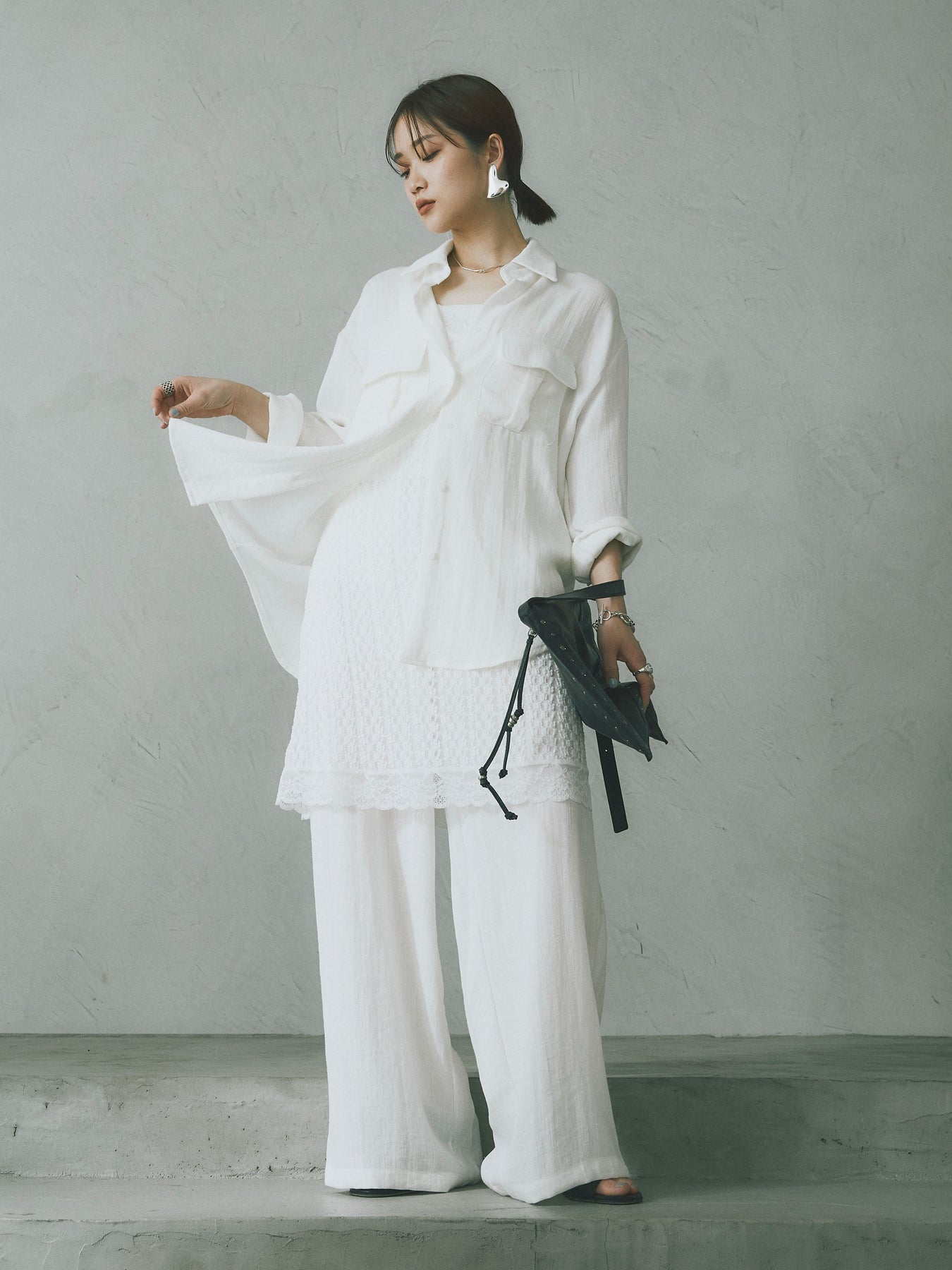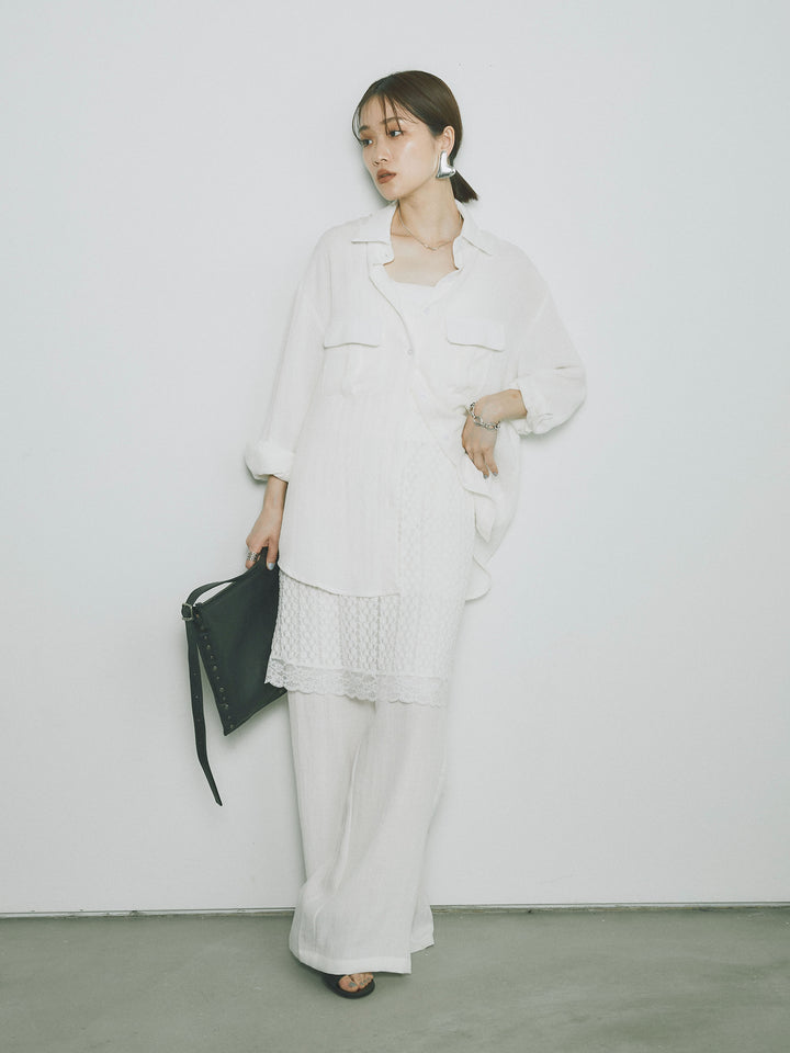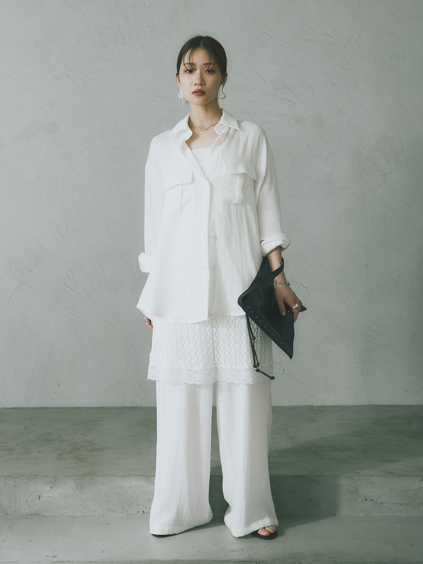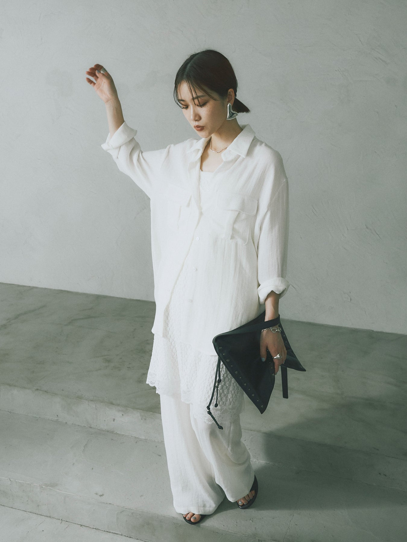 リネン風の素材感が魅力的なシャツセットアップ。涼しげで軽やかな生地は、春夏にぴったり。ゆったりとしたシルエットで、リラックス感のある着心地を提供します。シャツとパンツのセットアップで、コーディネートに迷うことなく、シンプルでスタイリッシュな印象を与えます。 ※ボトムス、キャミソール(インナー)以外の商品は一律でインナーは付属していません。