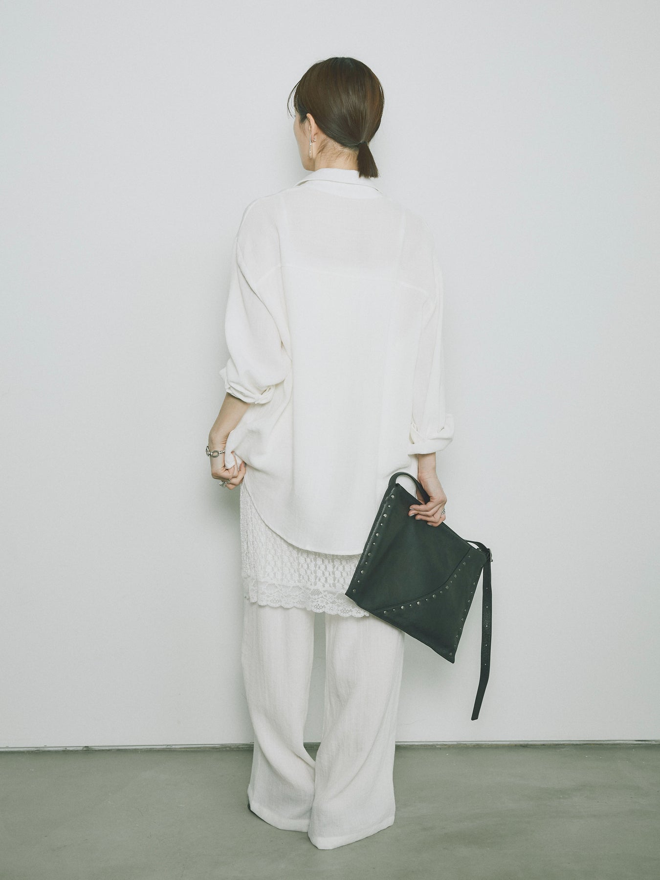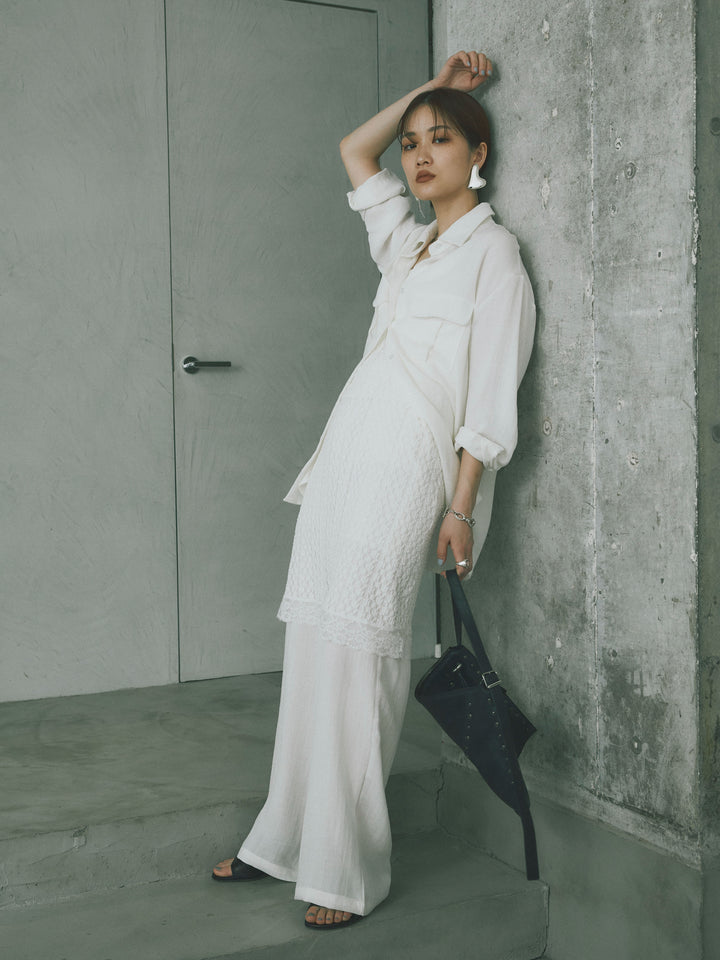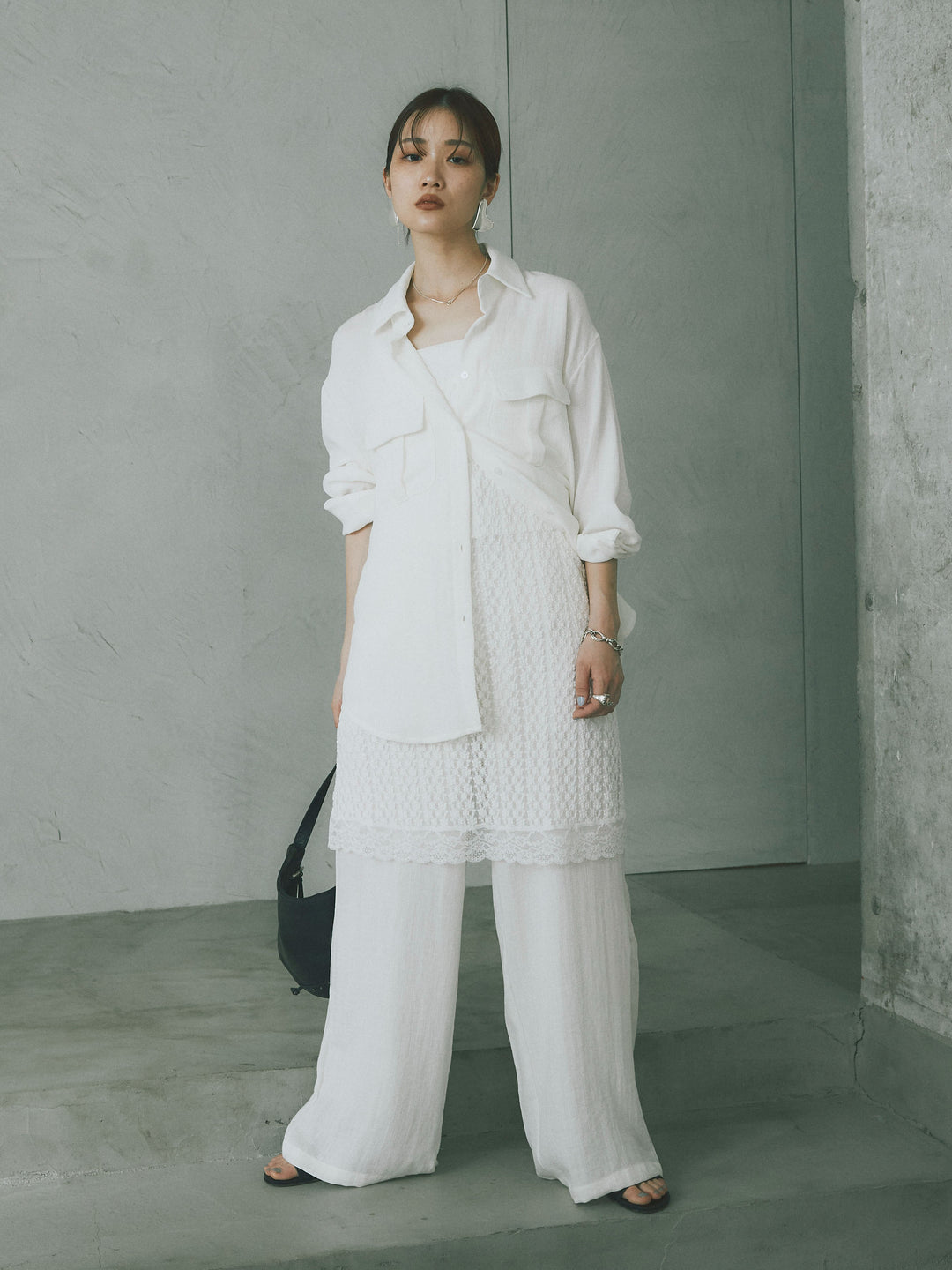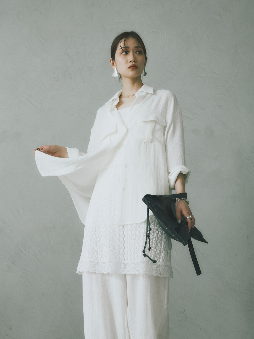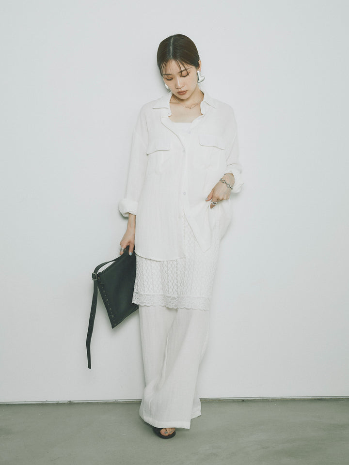 リネン風の素材感が魅力的なシャツセットアップ。涼しげで軽やかな生地は、春夏にぴったり。ゆったりとしたシルエットで、リラックス感のある着心地を提供します。シャツとパンツのセットアップで、コーディネートに迷うことなく、シンプルでスタイリッシュな印象を与えます。 ※ボトムス、キャミソール(インナー)以外の商品は一律でインナーは付属していません。