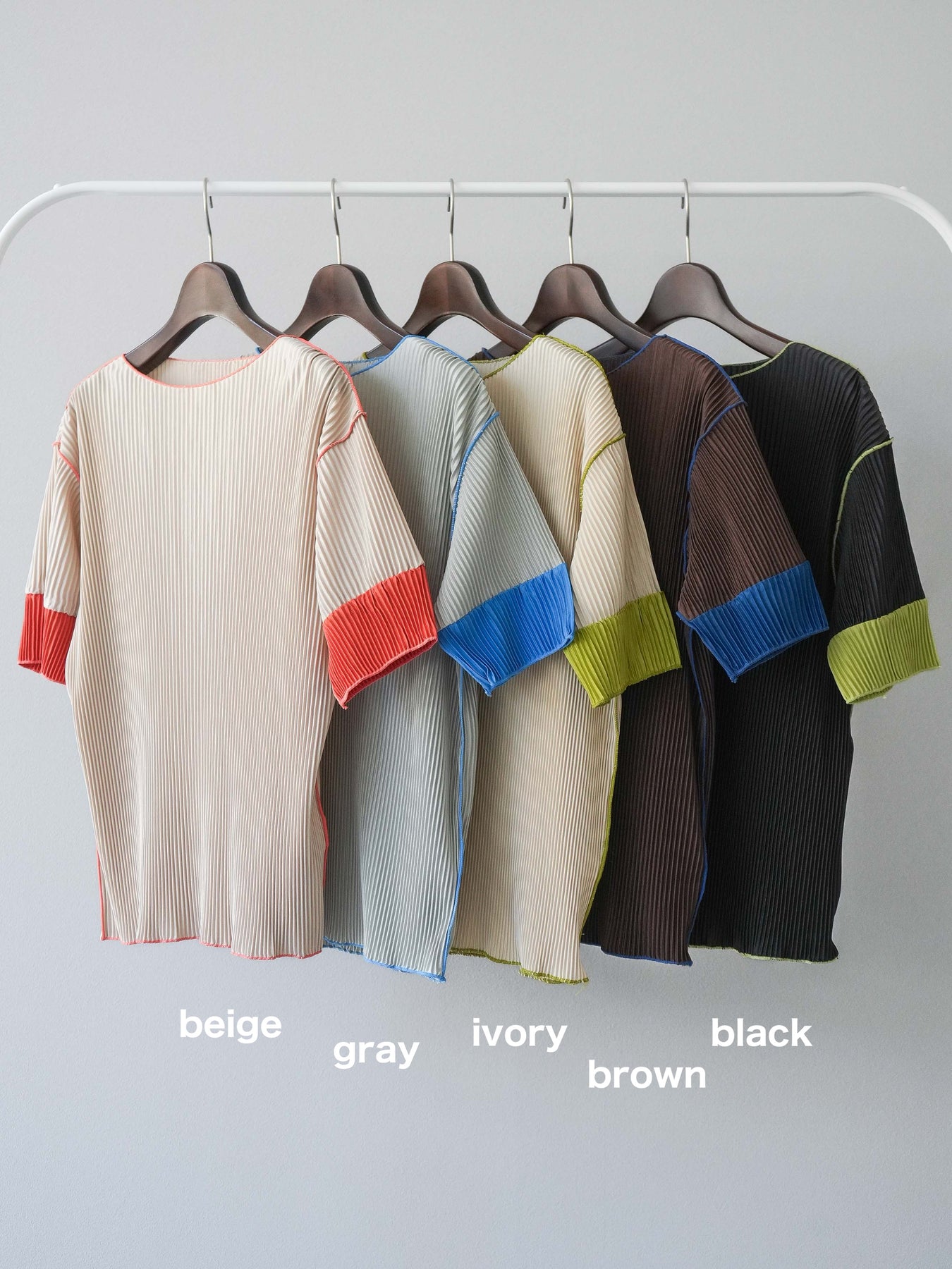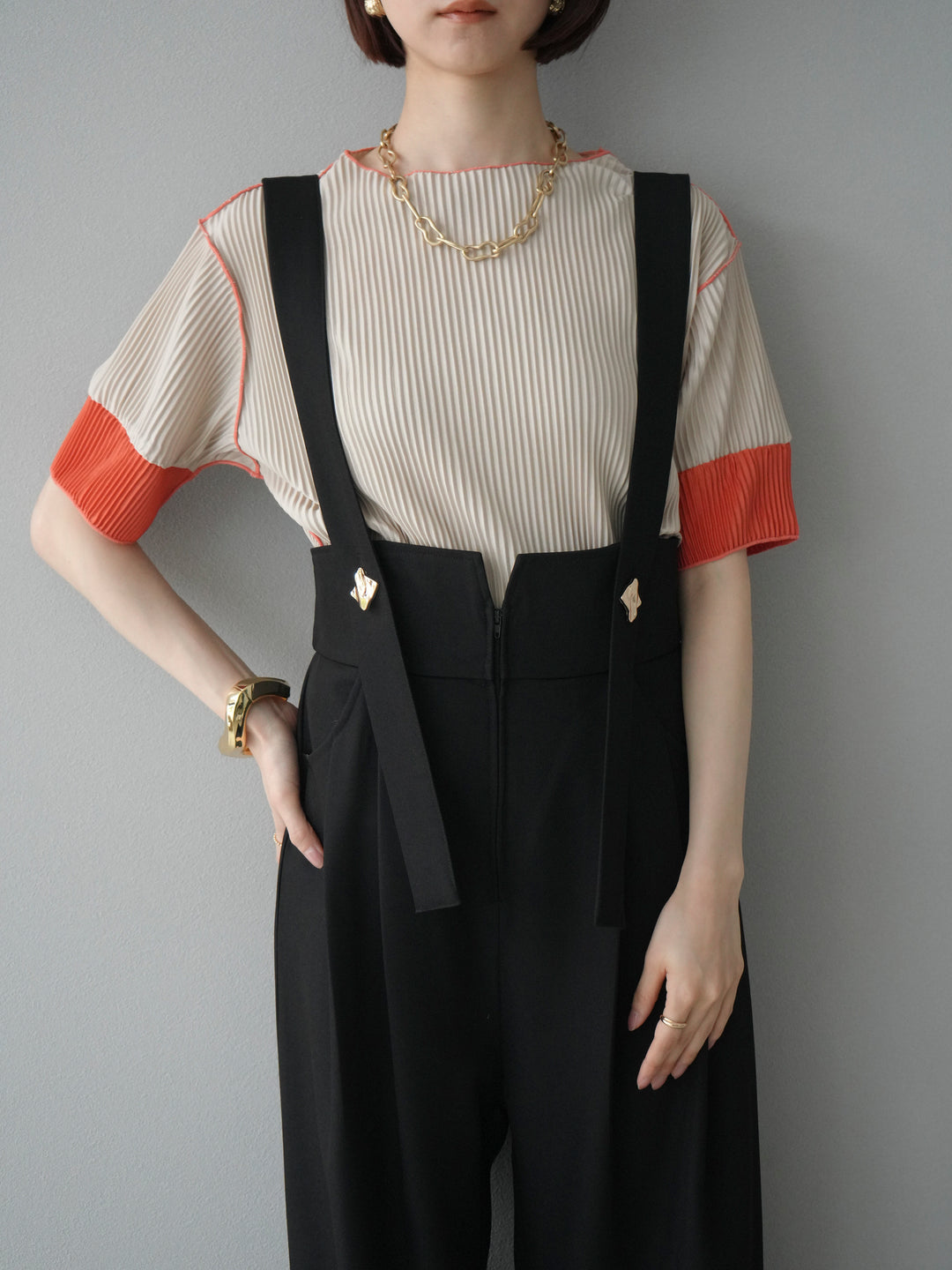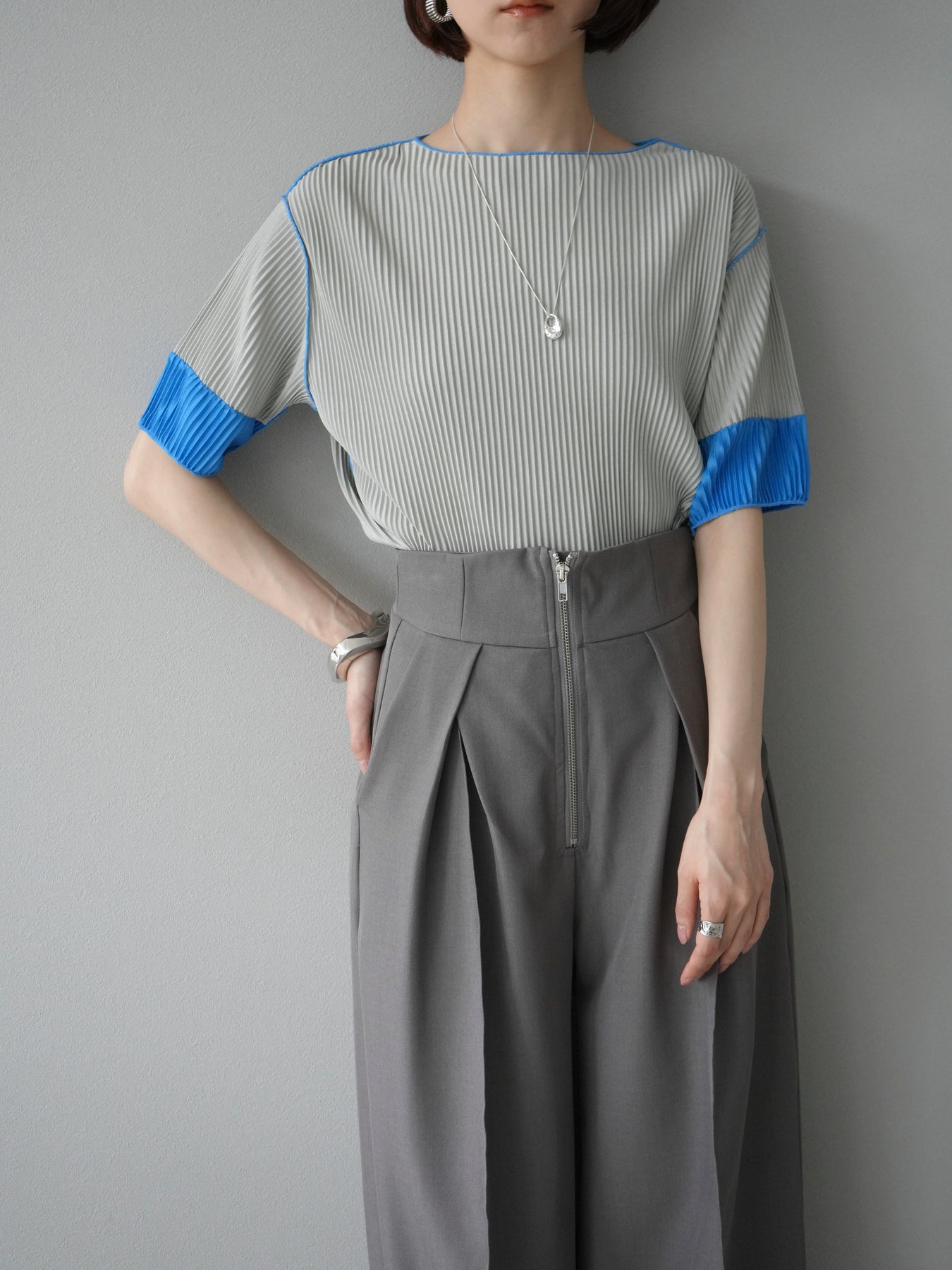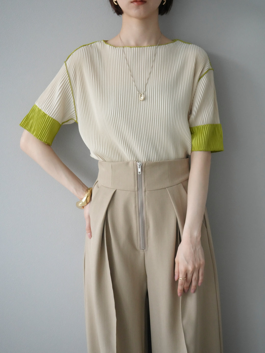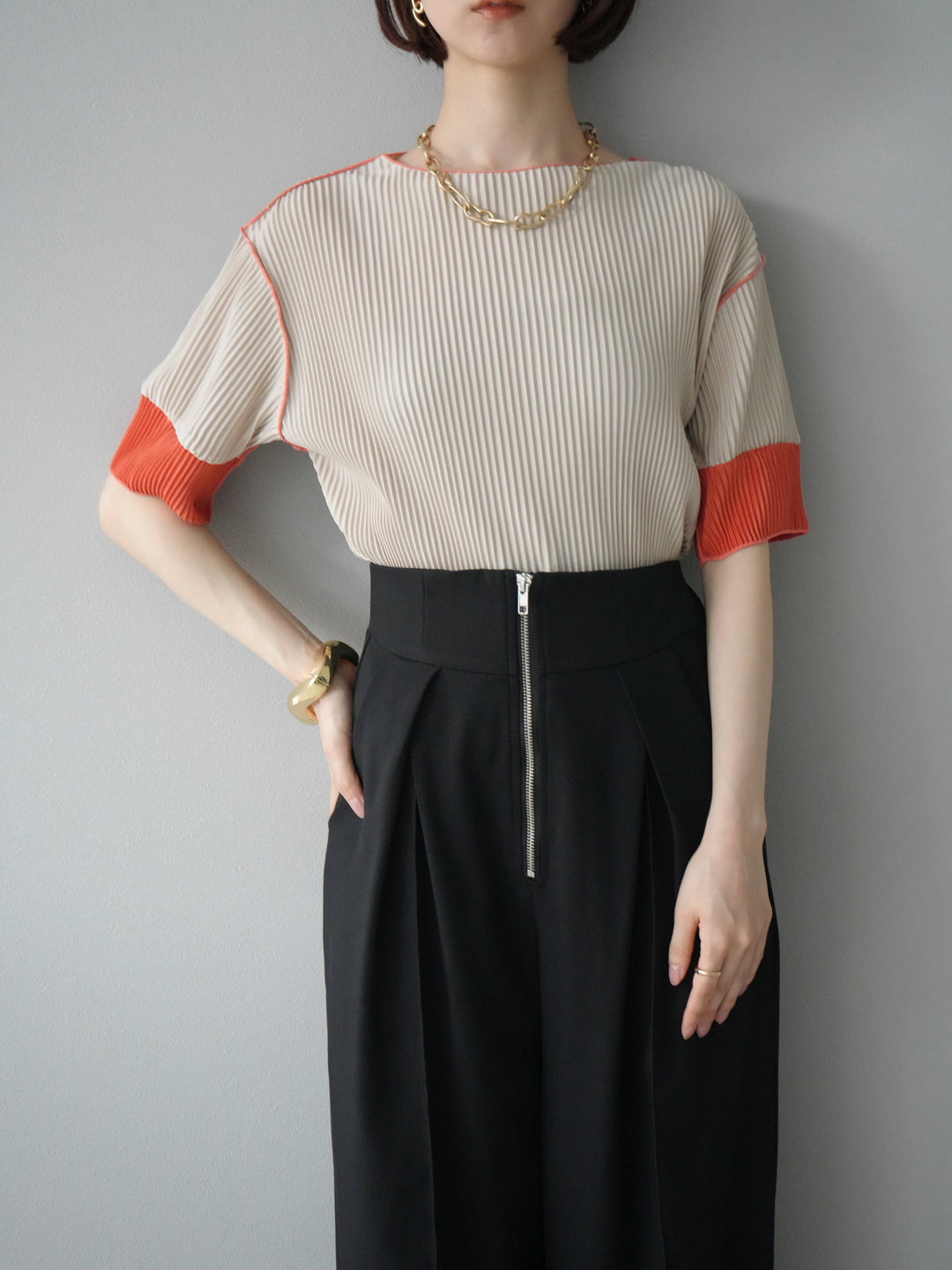 [予約]配色プリーツハーフスリーブトップス + [予約]配色プリーツハーフスリーブトップス